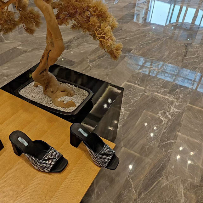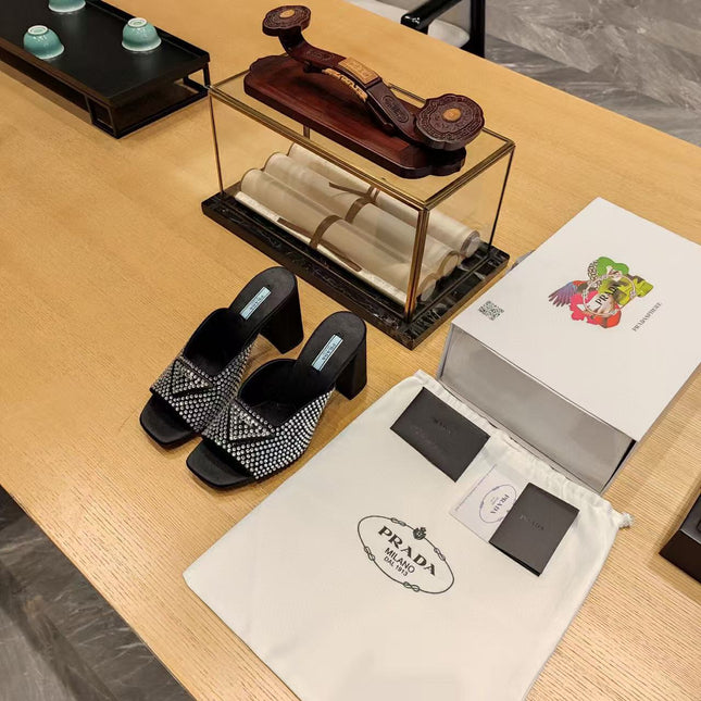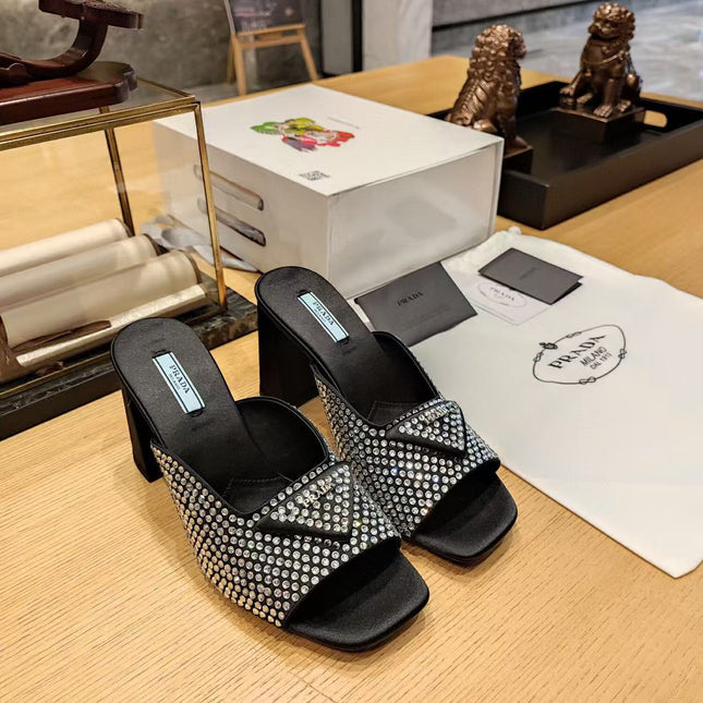 PRA EMBELLISHED SATIN SANLDALS IN BLACK