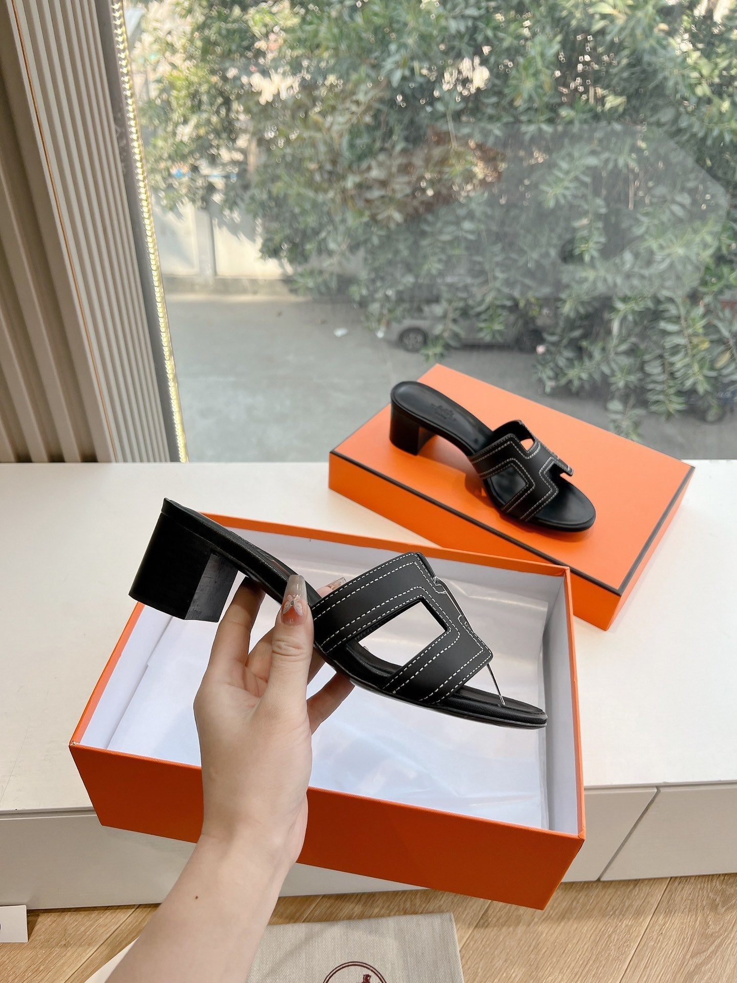 0ASIS SANDAL IN BLACK MIX WHITE CALFSKIN