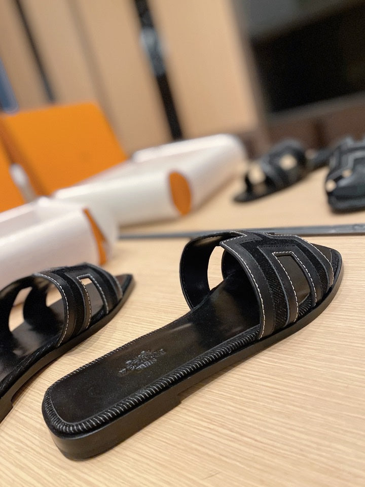 0RAN SANDALS IN BLACK CALFSKIN AND CANVAS