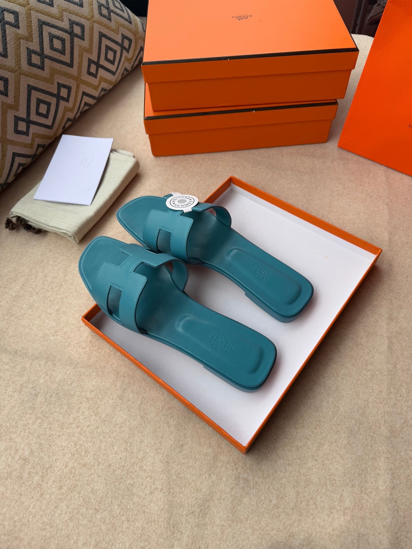 0RAN SANDALS IN SAPPHIRE BLUE CALFSKIN