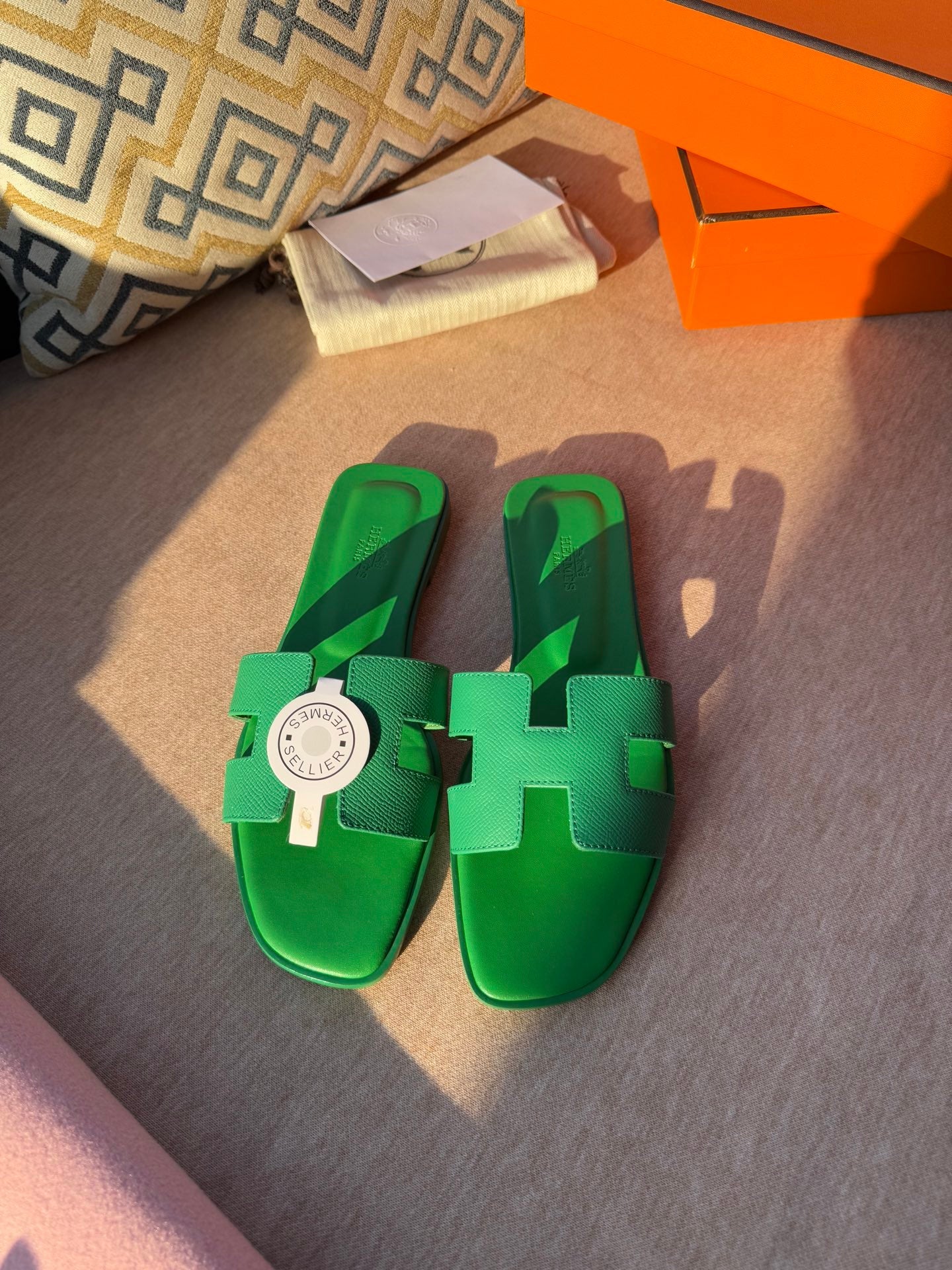 0RAN SANDALS IN SHAMROCK GREEN CALFSKIN