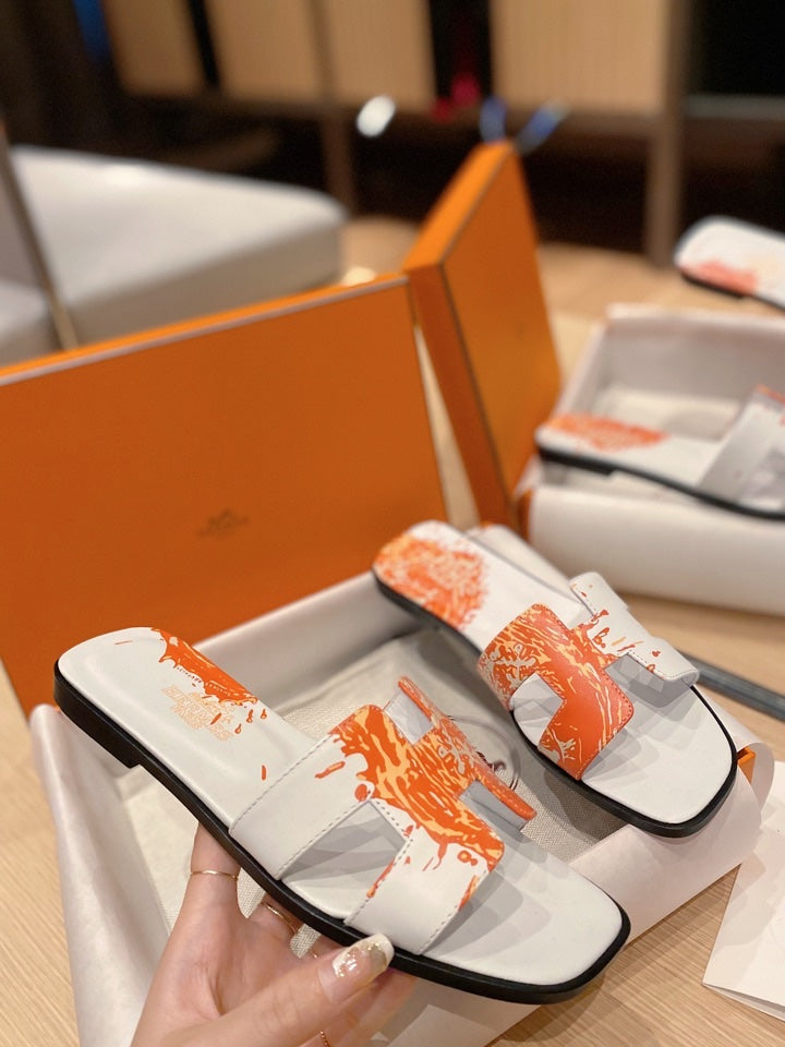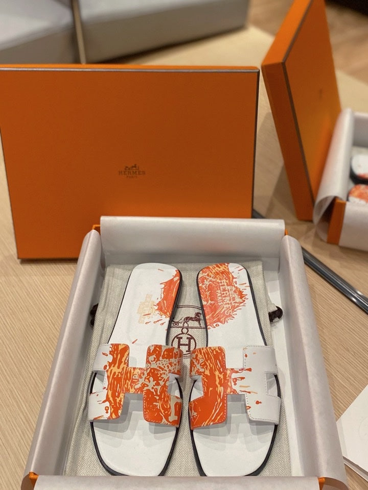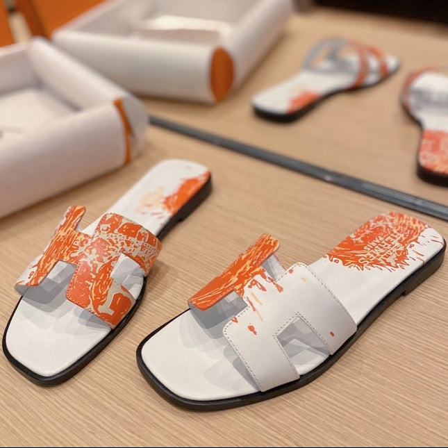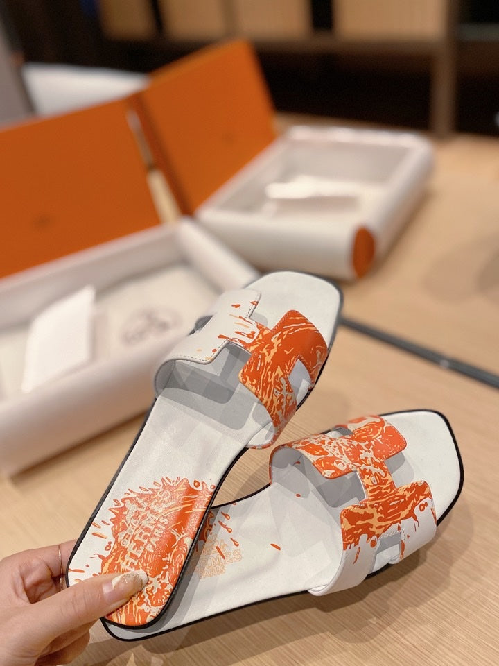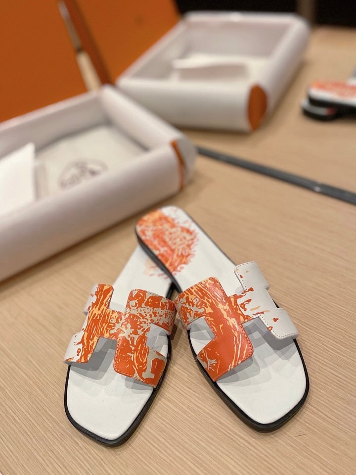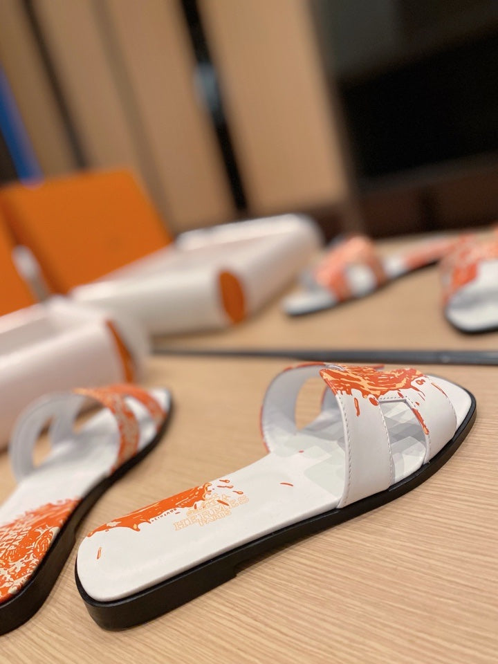 0RAN SANDALS IN WHITE MIX ORANGE CALFSKIN