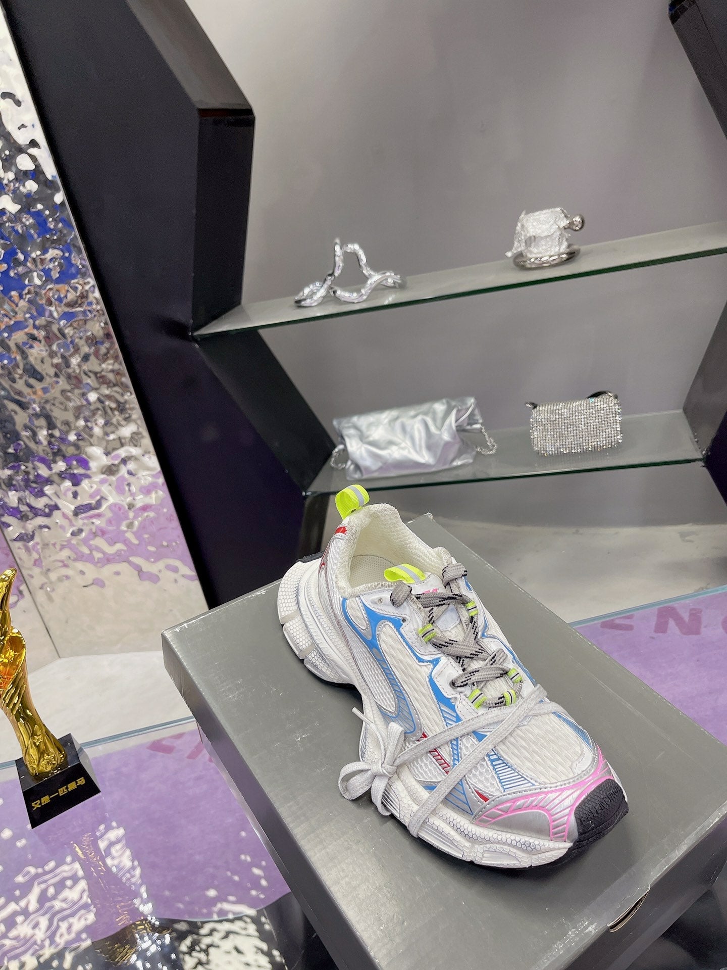 3XL SNEAKER IN WHITE PINK GRAY BLUE MESH AND POLYURETHANE