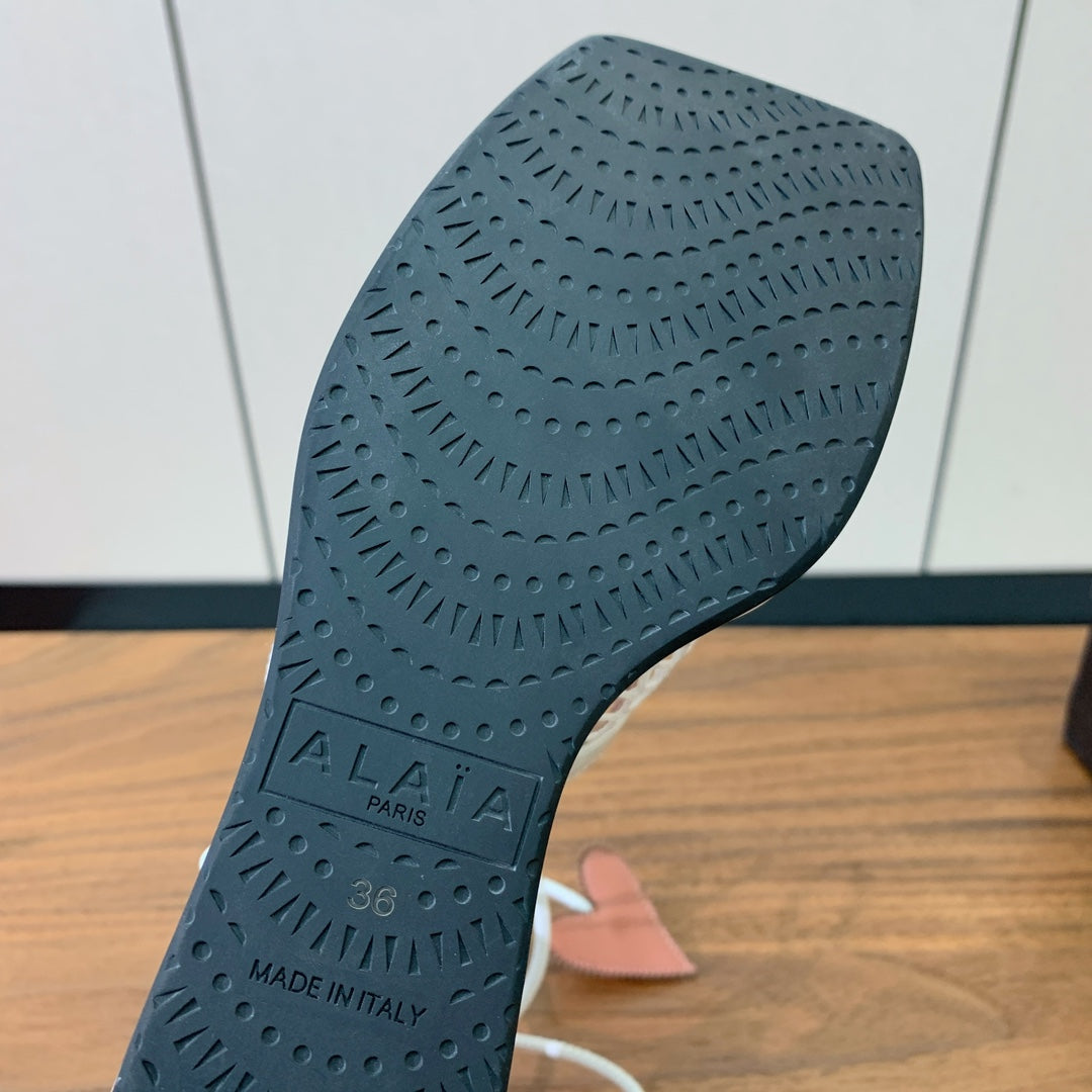 ALAIA BANQUET WEDGE SANDALS IN WHITE LAMBSKIN WITH RED HEART
