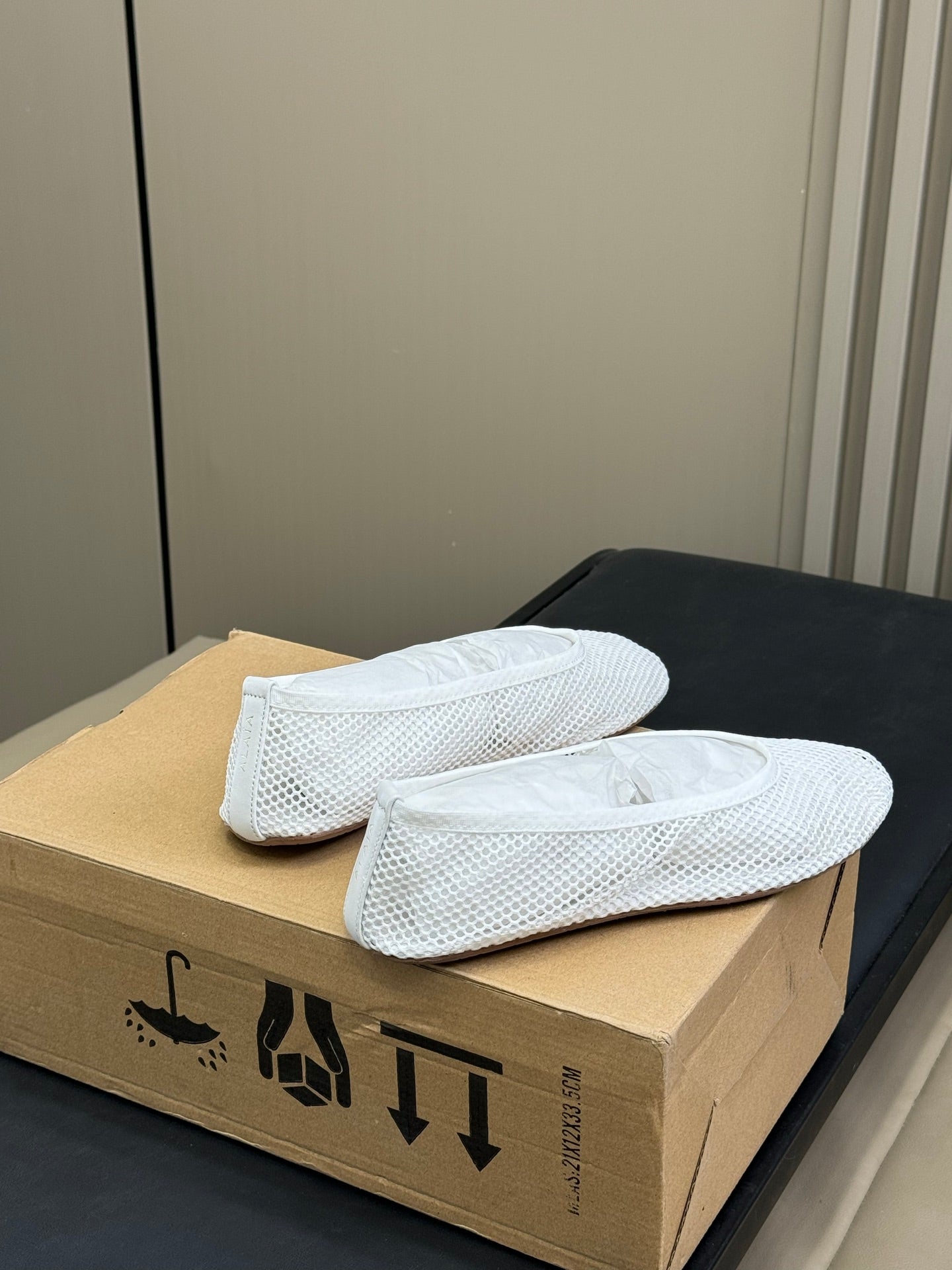 ALAIA FISHNET MESH BALLET FLATS 25S IN WHITE FABRIC