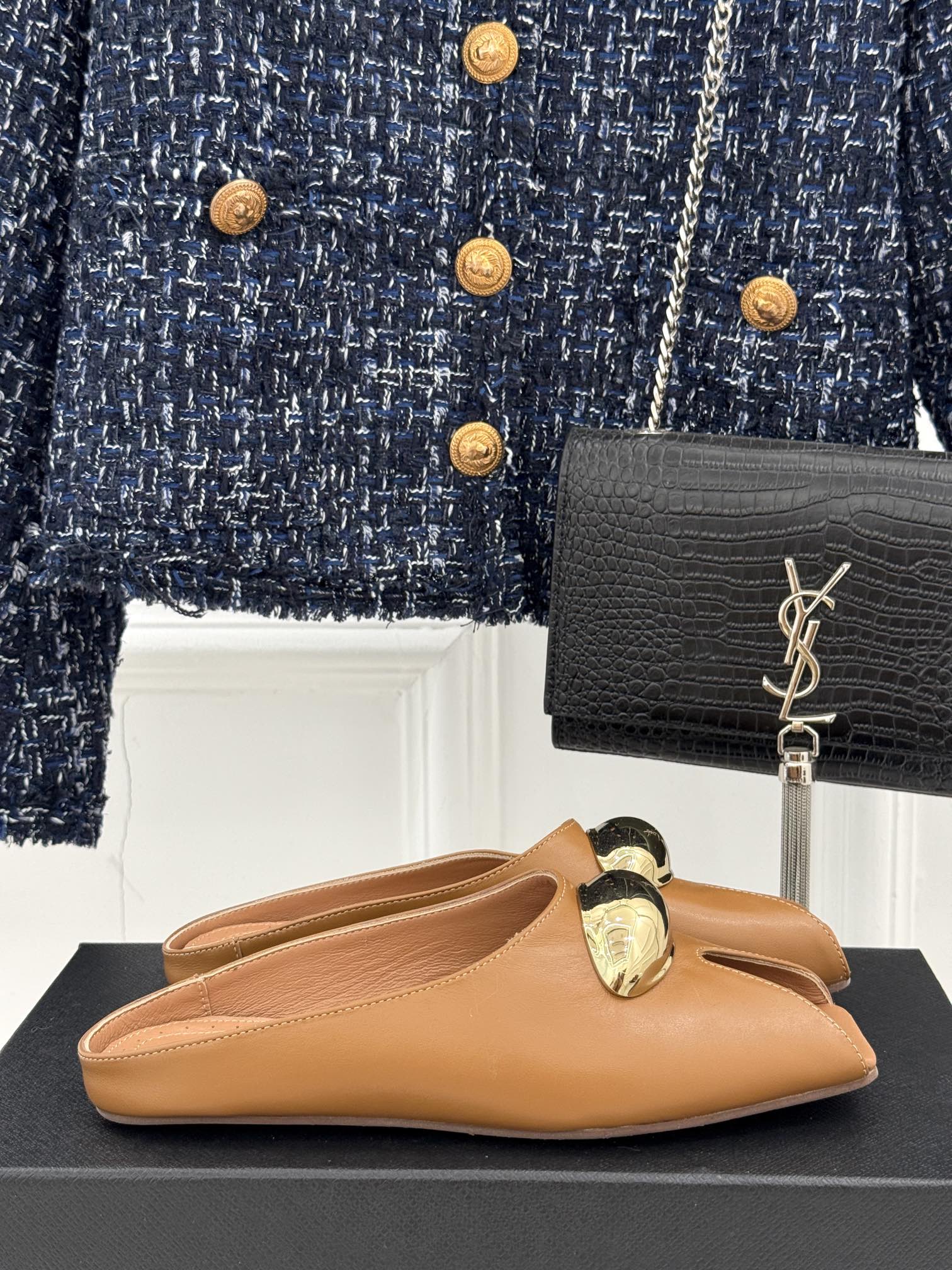 ALAIA FLAT MULE IN BRONZE BROWN LAMBSKIN WITH GOLD HARDWARE