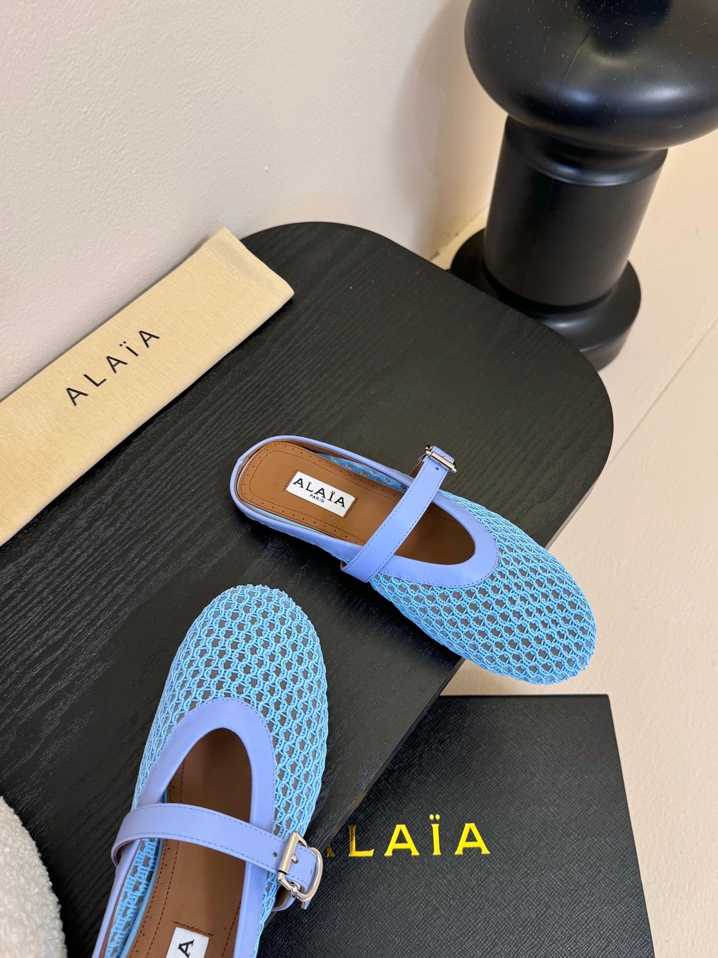 ALAIA FLAT MULES 25S IN BLUE MIX PURPLE WOVEN MESH
