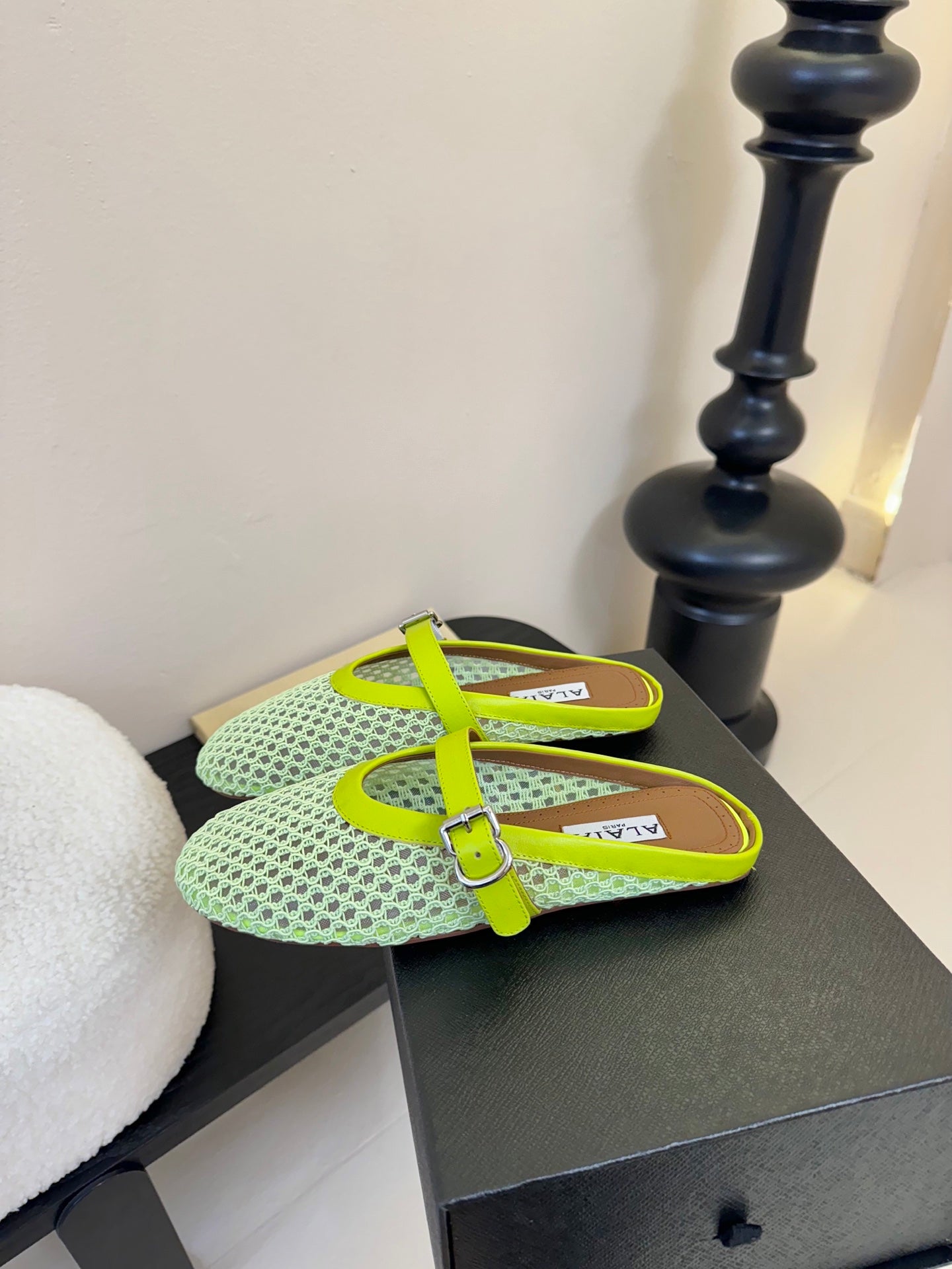 ALAIA FLAT MULES 25S IN MINT GREEN WOVEN MESH