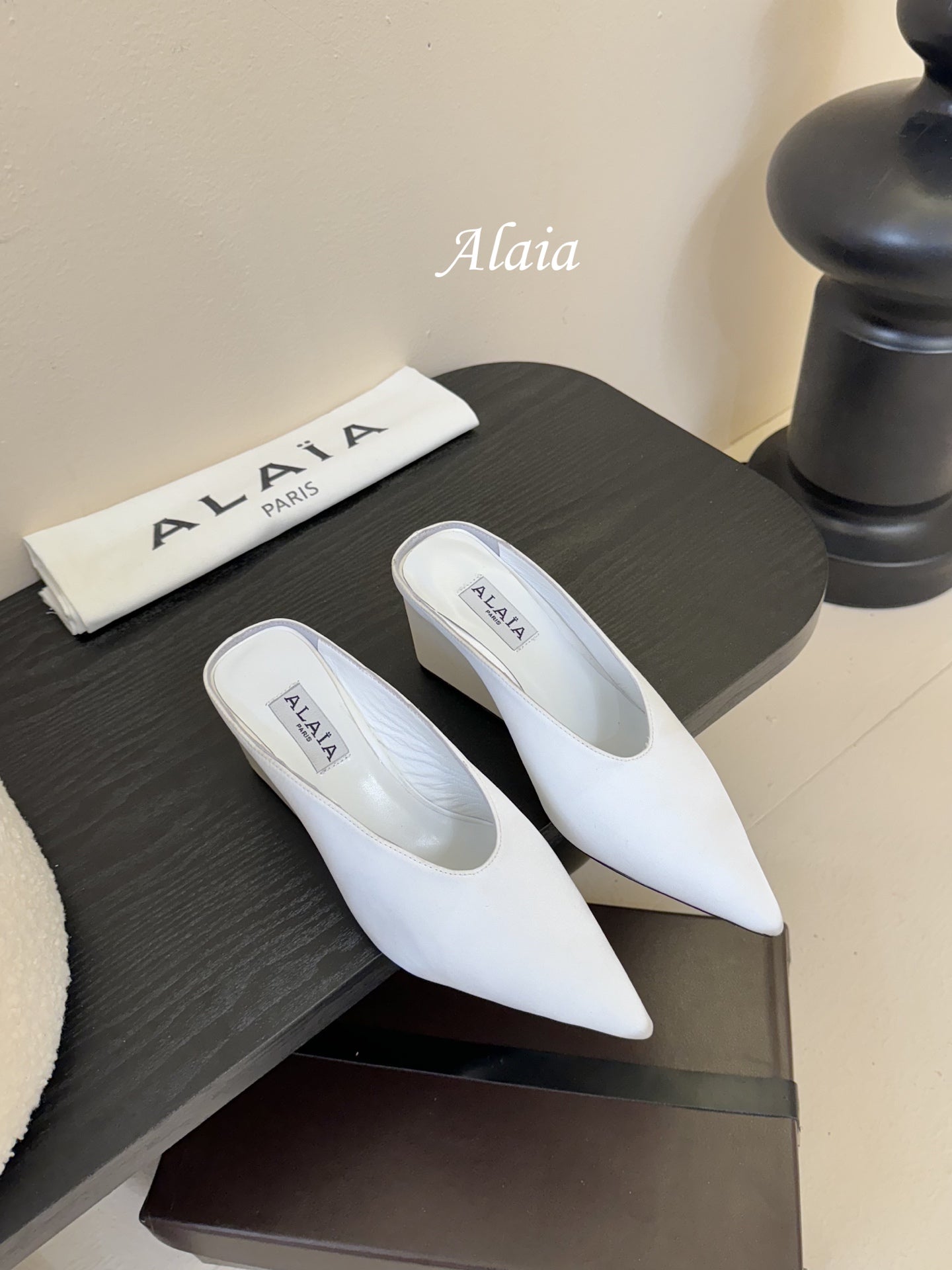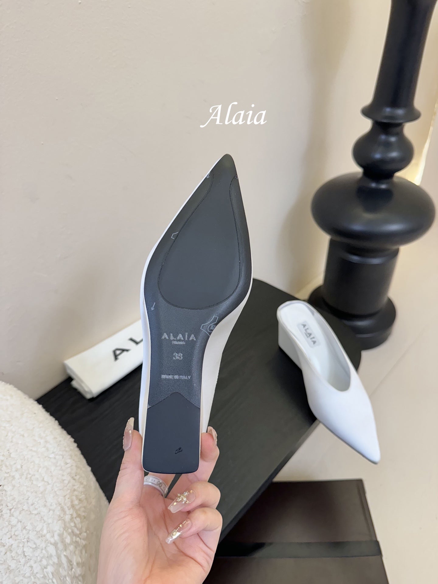 ALAIA HIGH MULES 25S IN WHITE SATIN
