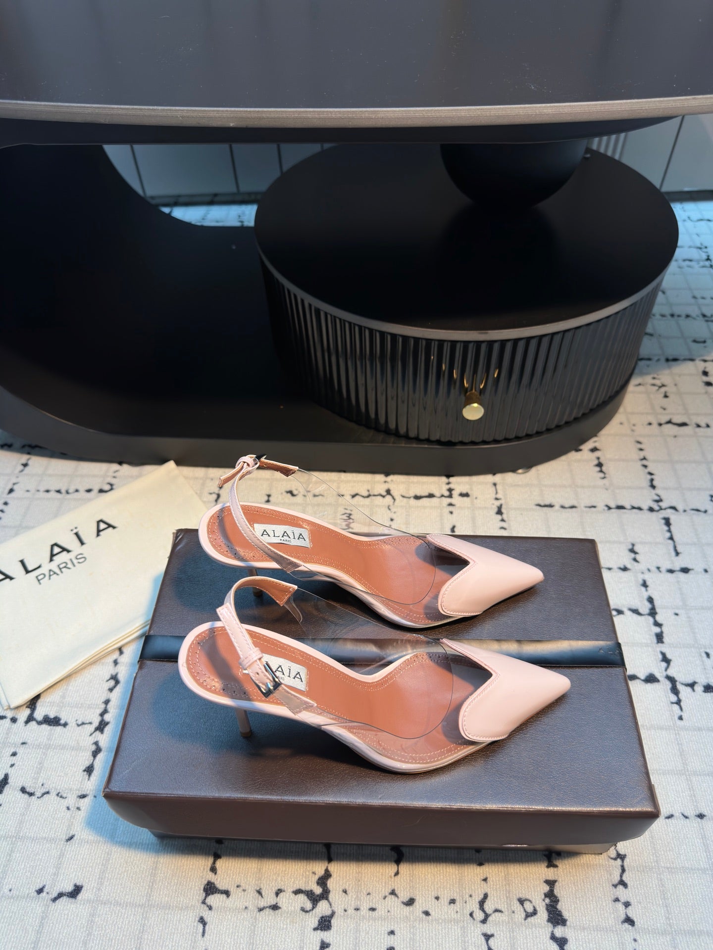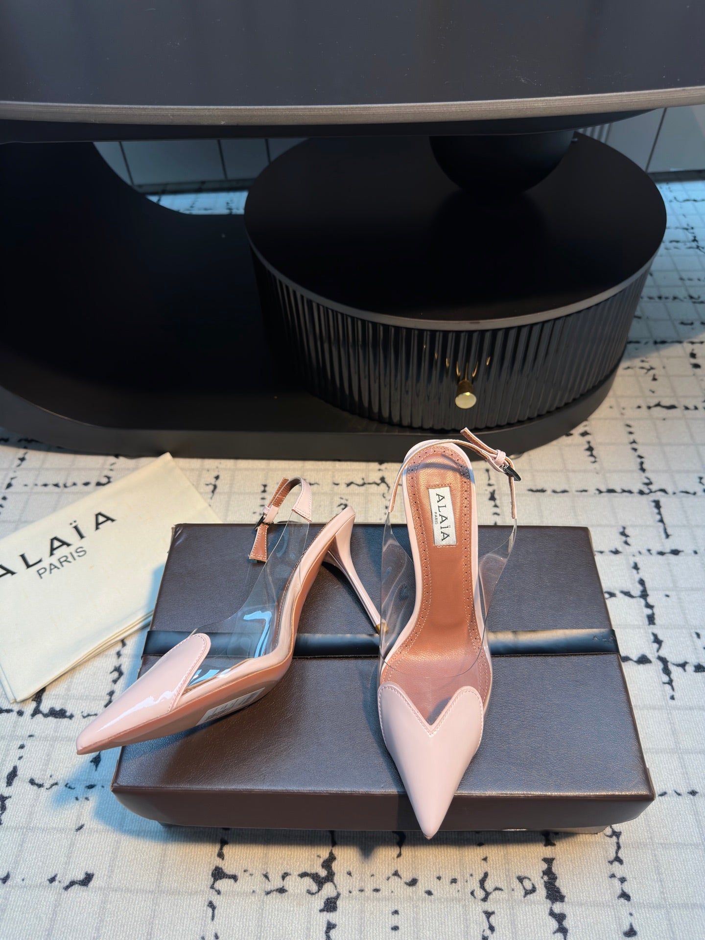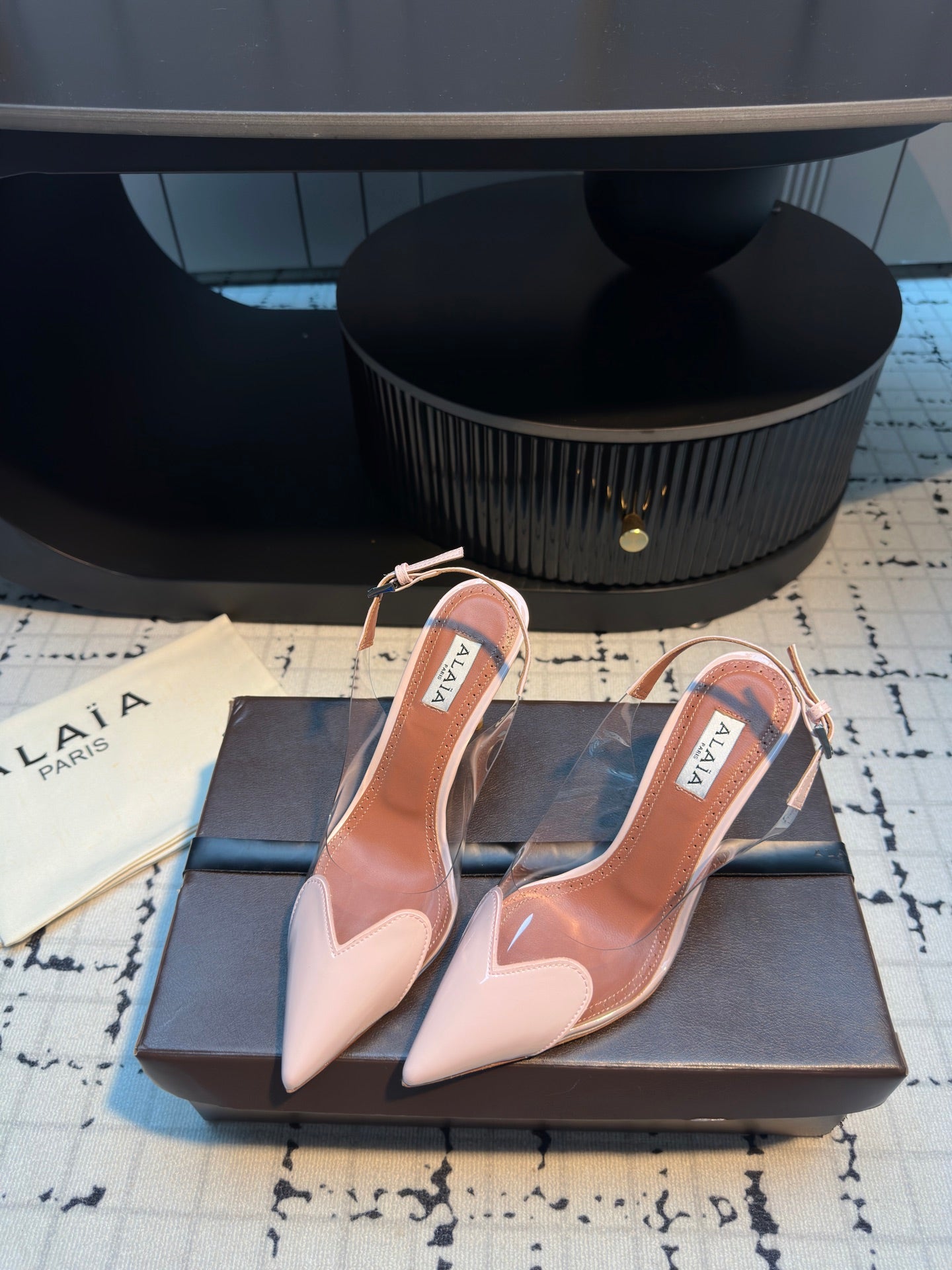 ALAIA HIGH SLINGBACK 25S 90 MM IN LIGHT PINK CALFSKIN