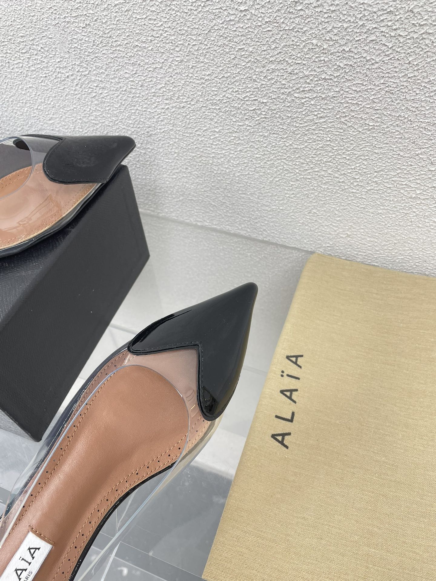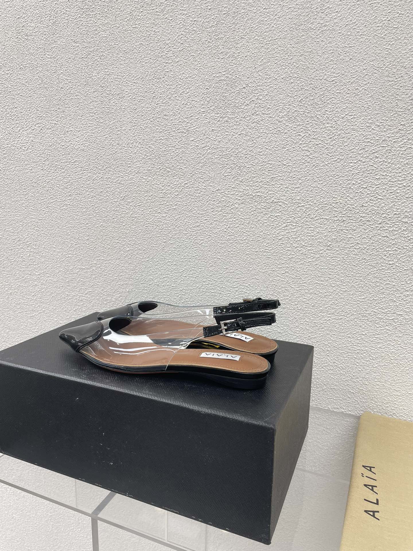 ALAIA LE COEUR FLAT SLINGBACKS IN BLACK PATENT LAMBSKIN