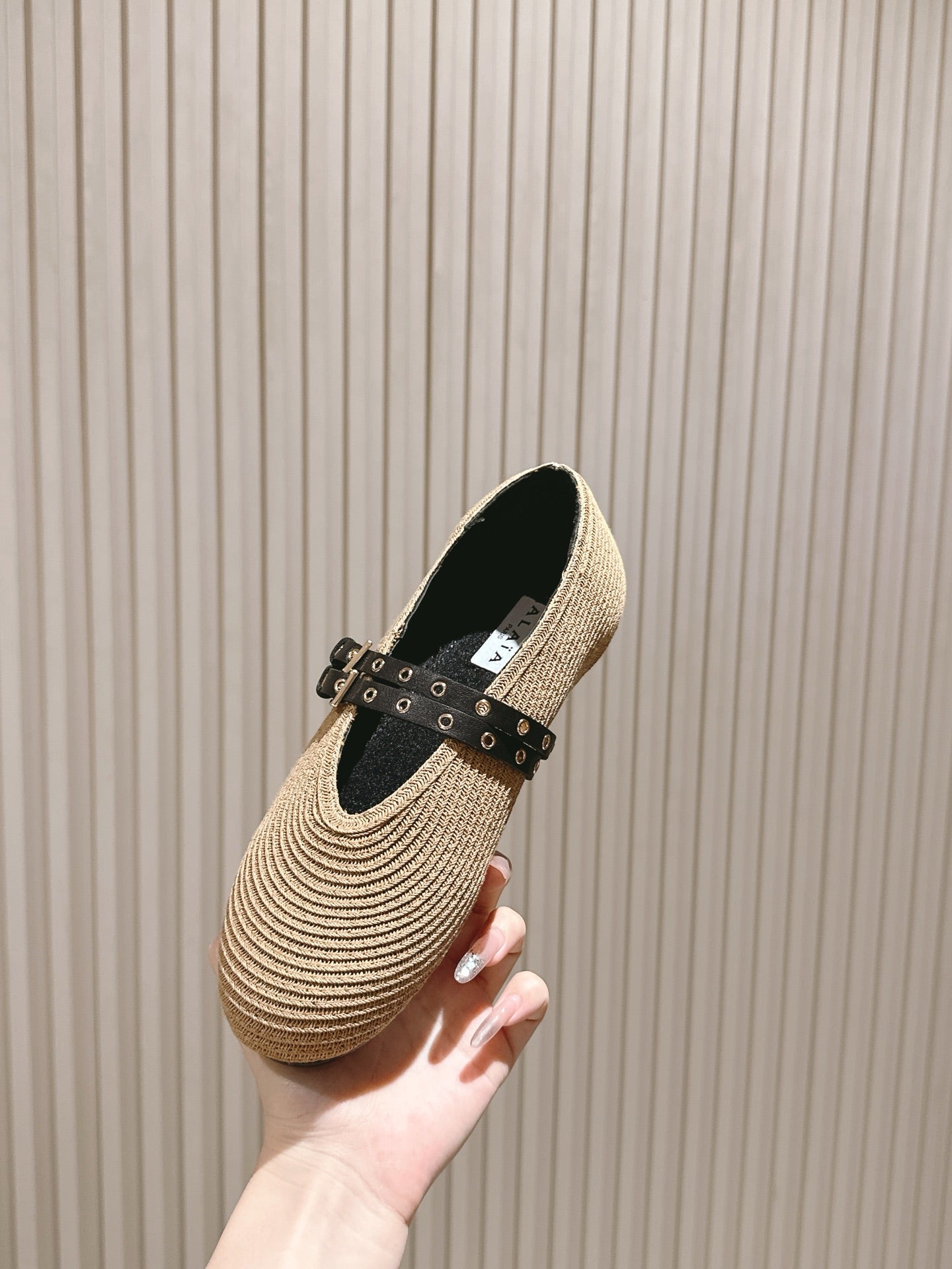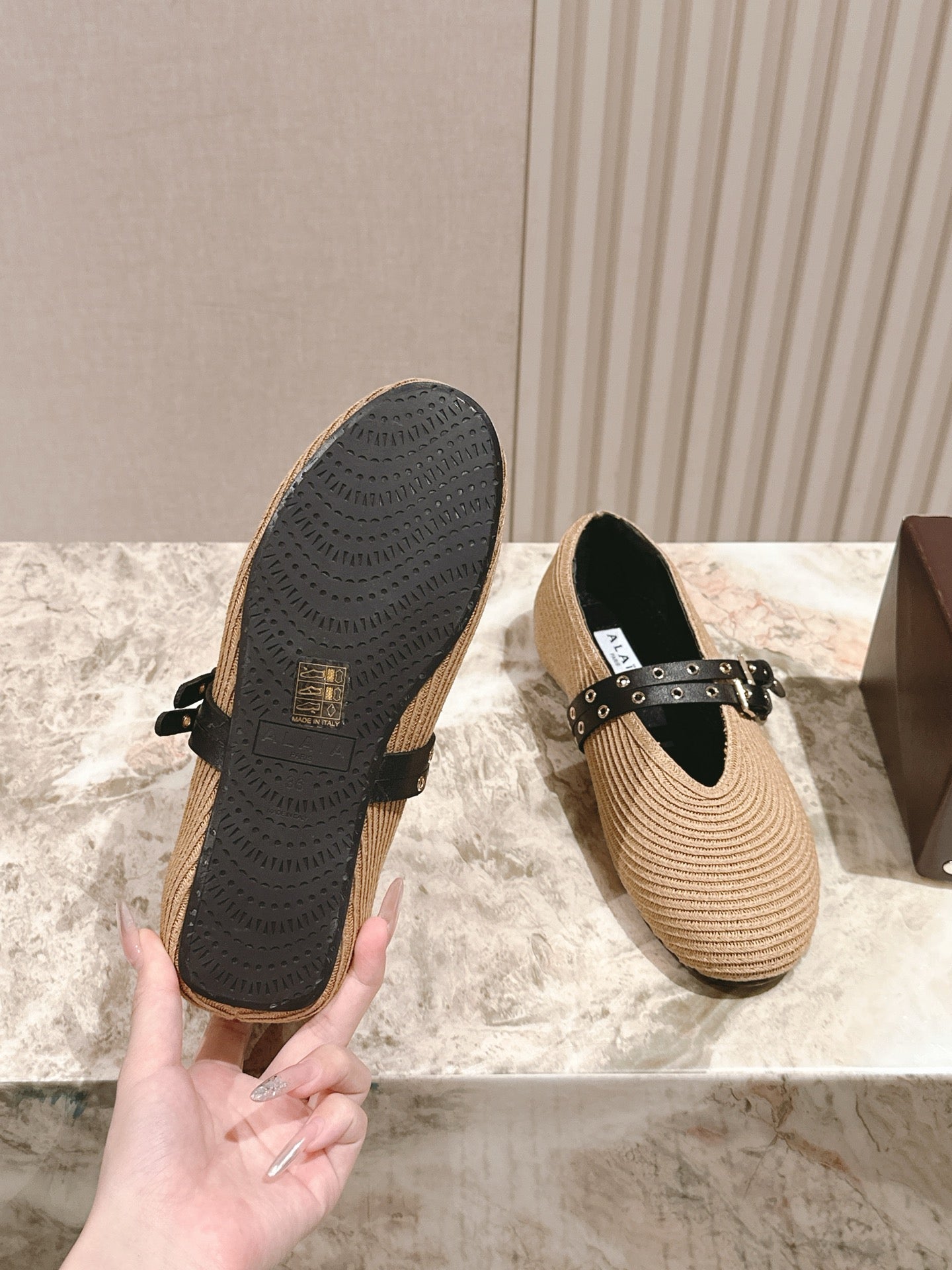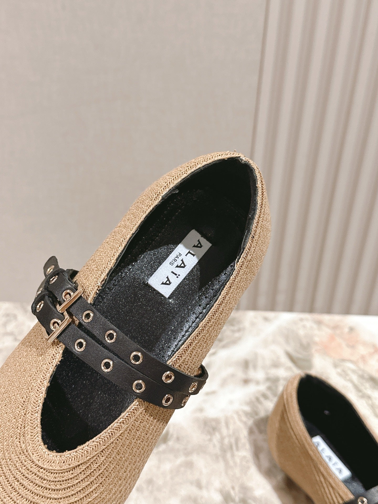 ALAIA MARY JANE 25S IN BEIGE RAFFIA AND BLACK LAMBSKIN WITH SILVER HARDWARE