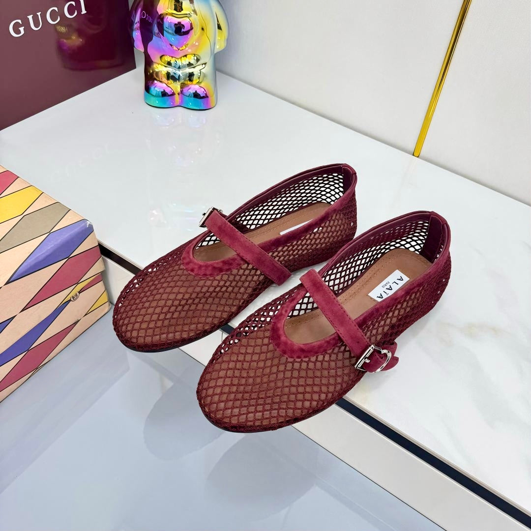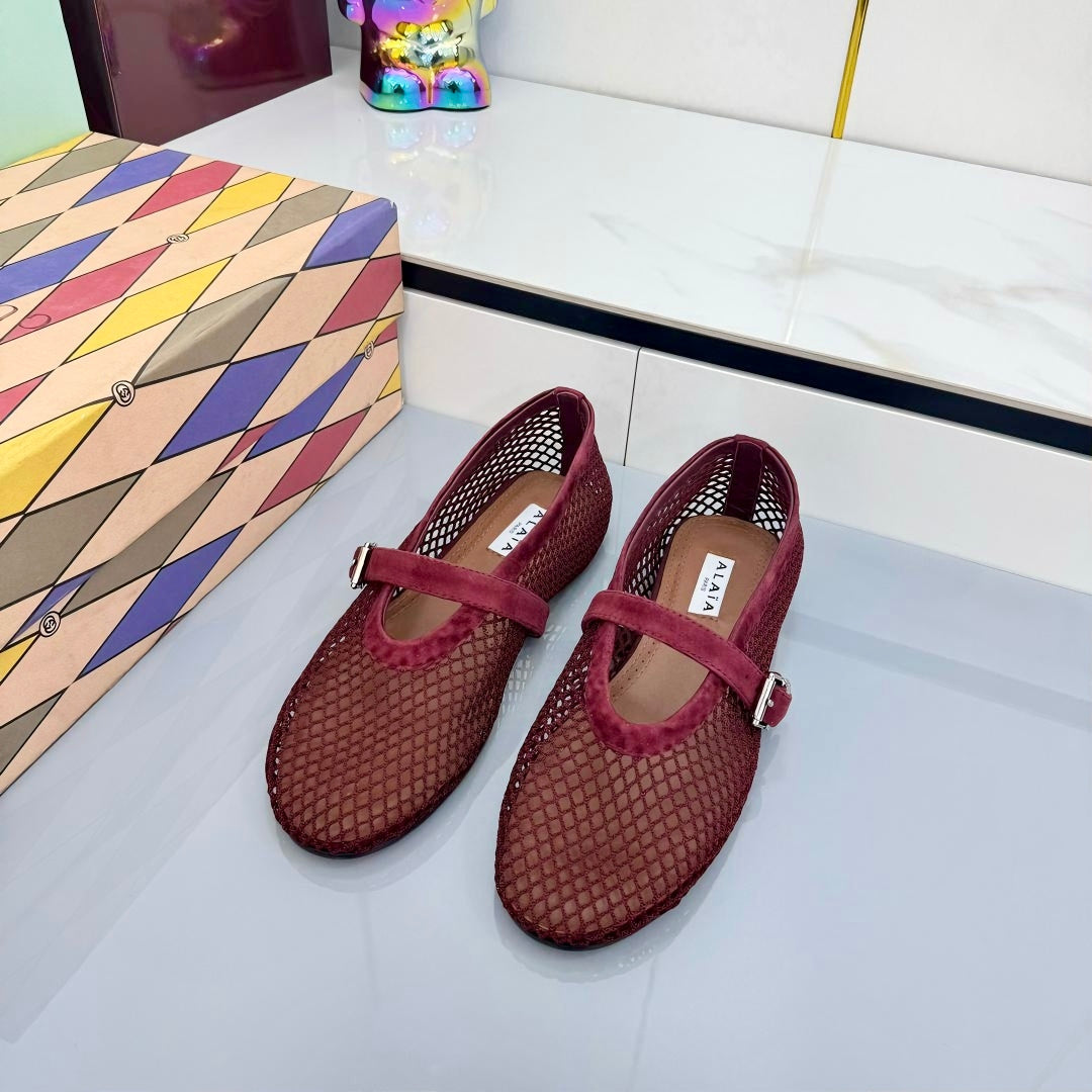 ALAIA MARY JANE FLAT 25S IN DARK RED MESH SUEDE