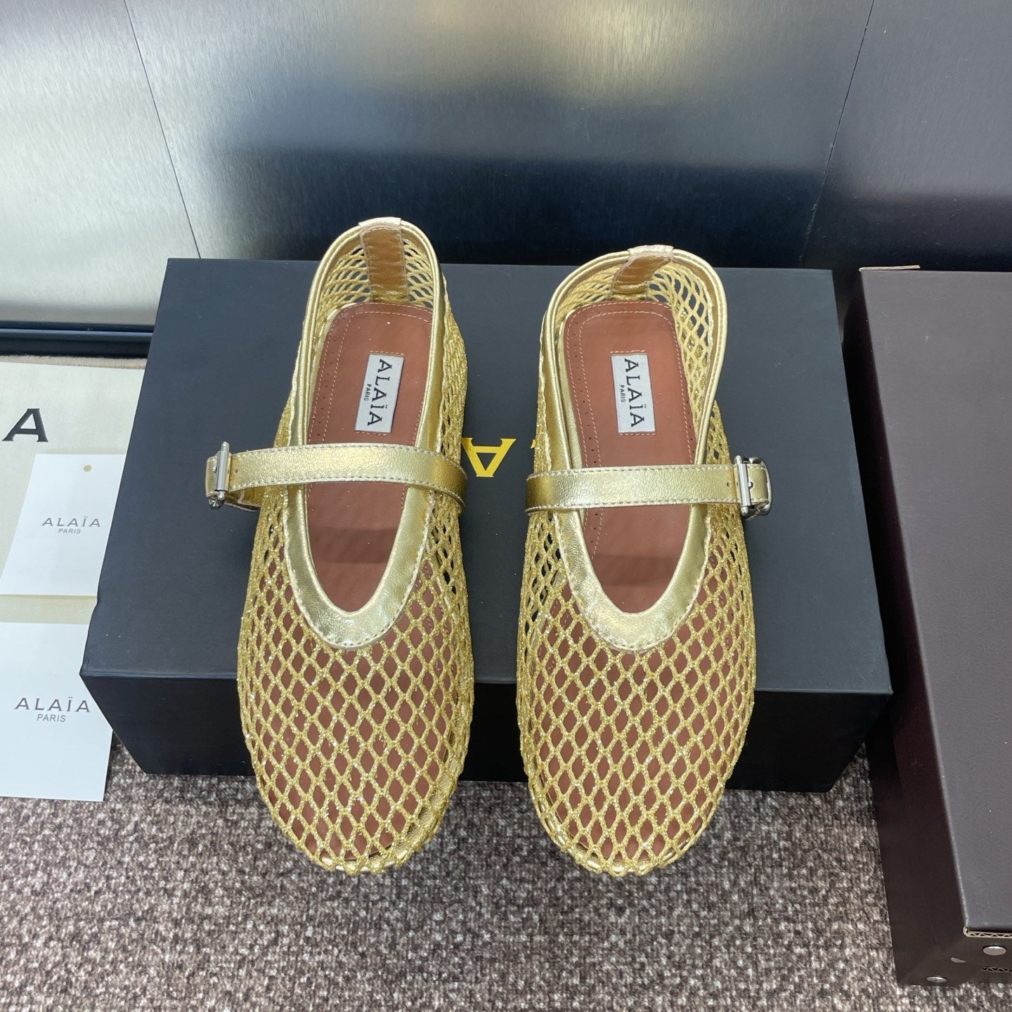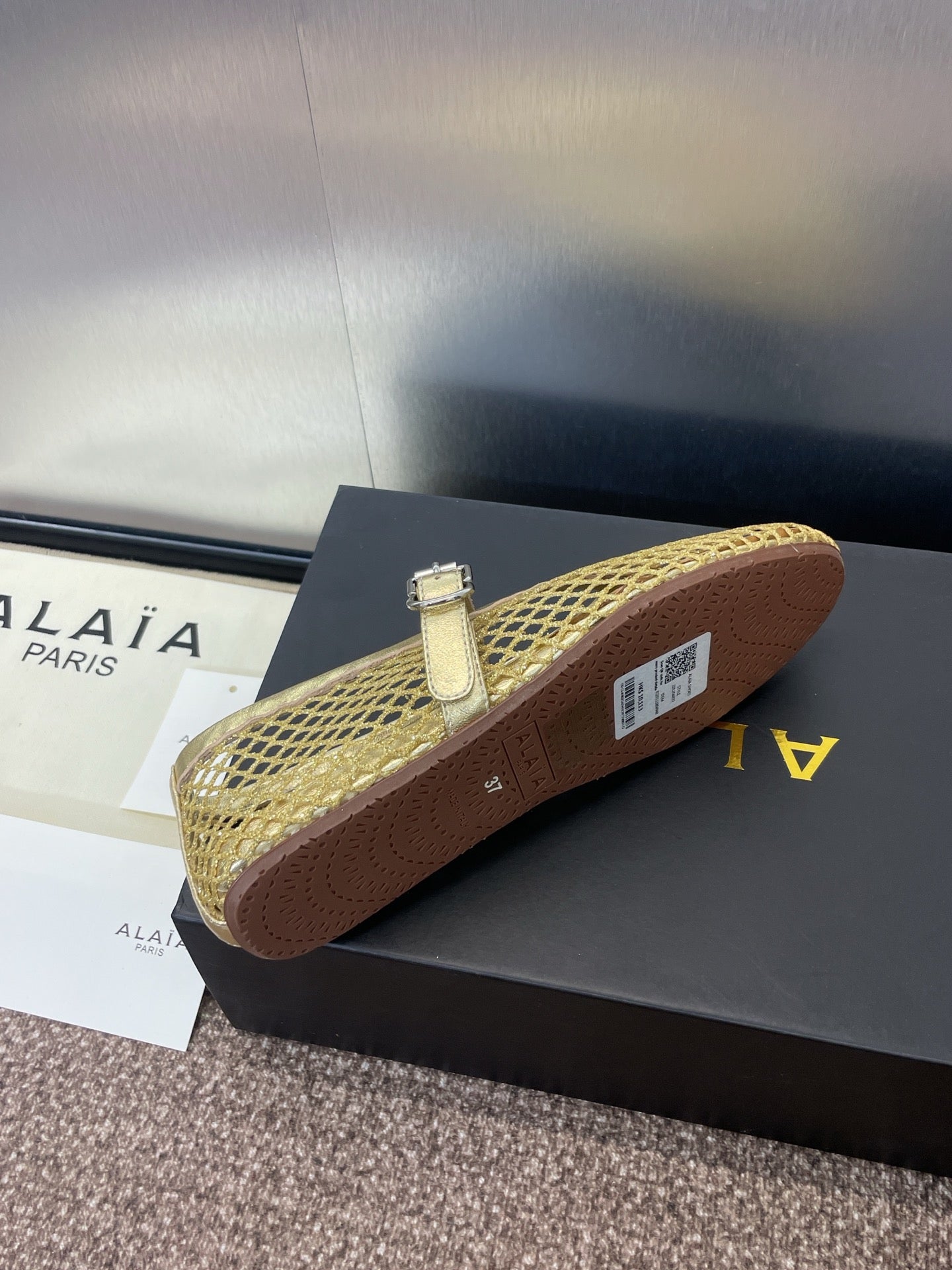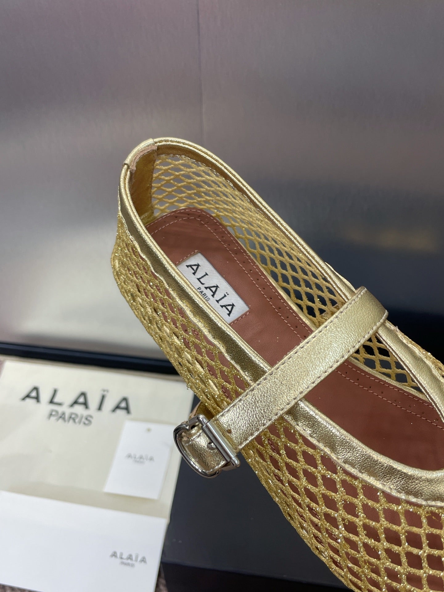 ALAIA MARY JANE FLAT 25S IN GOLD MESH CALFSKIN