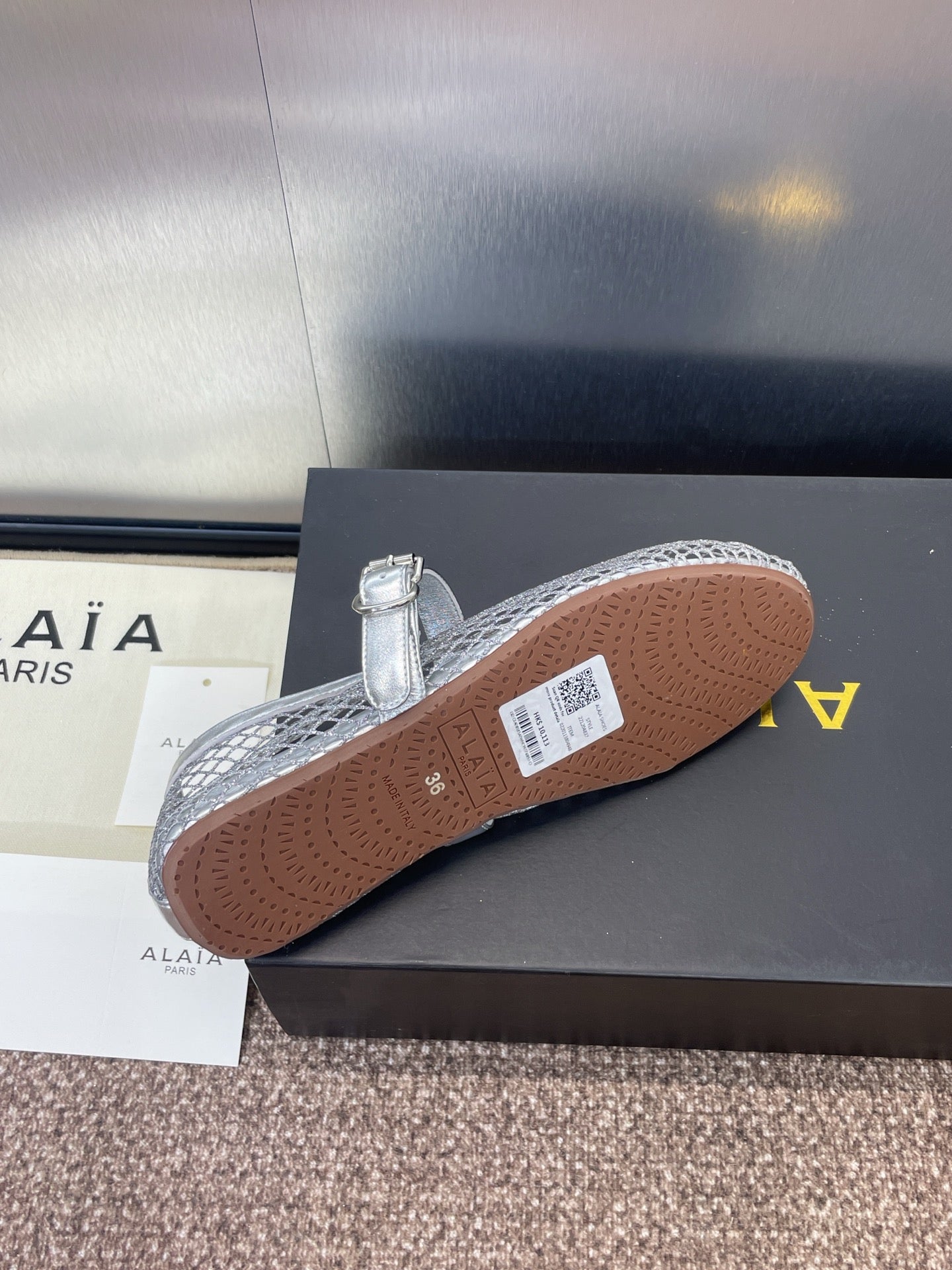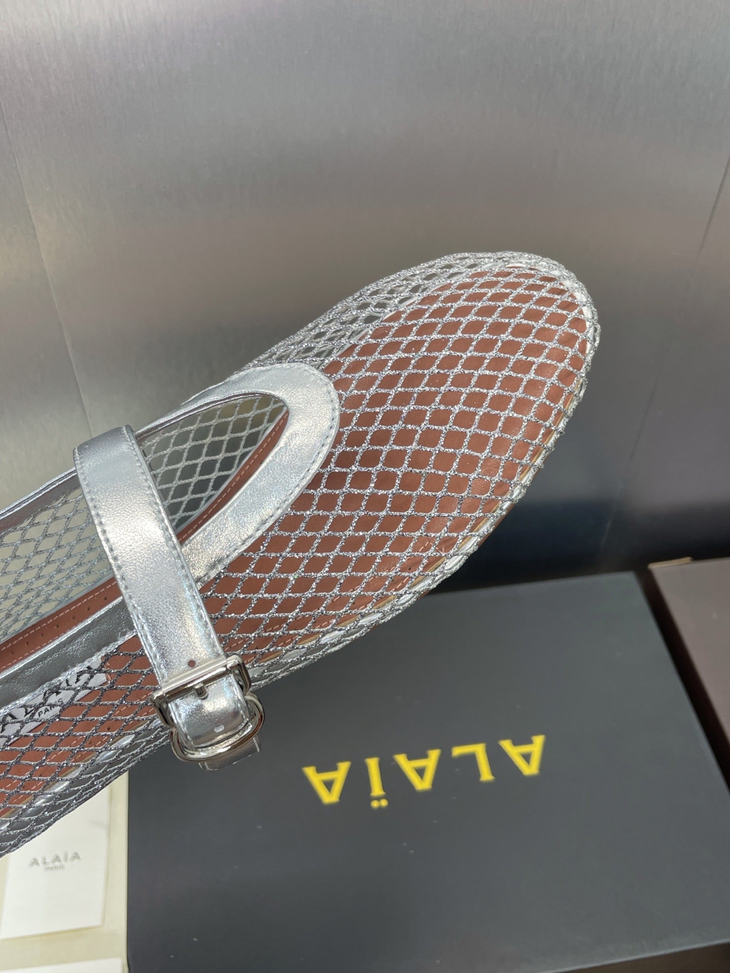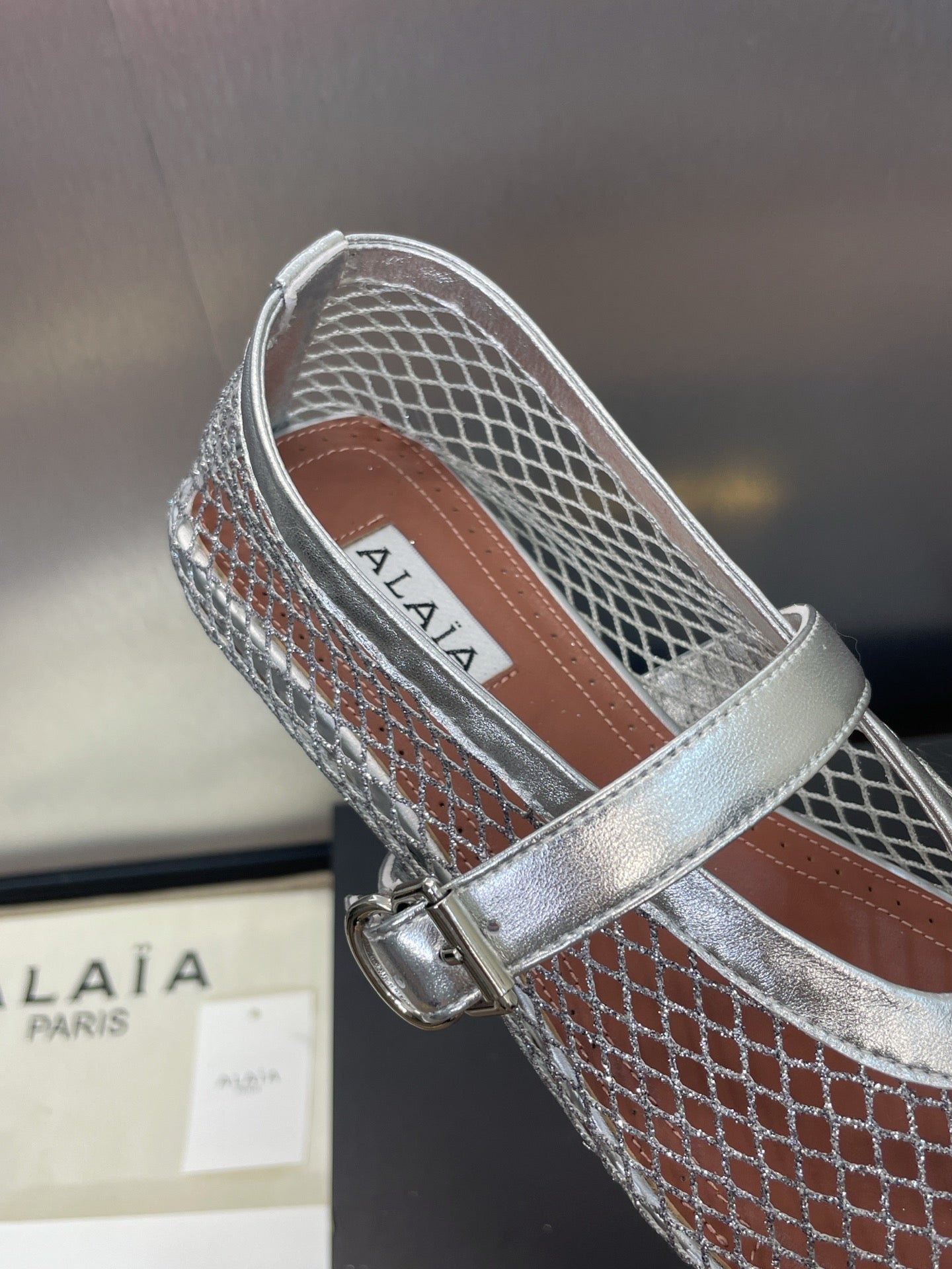 ALAIA MARY JANE FLAT 25S IN SILVER MESH CALFSKIN