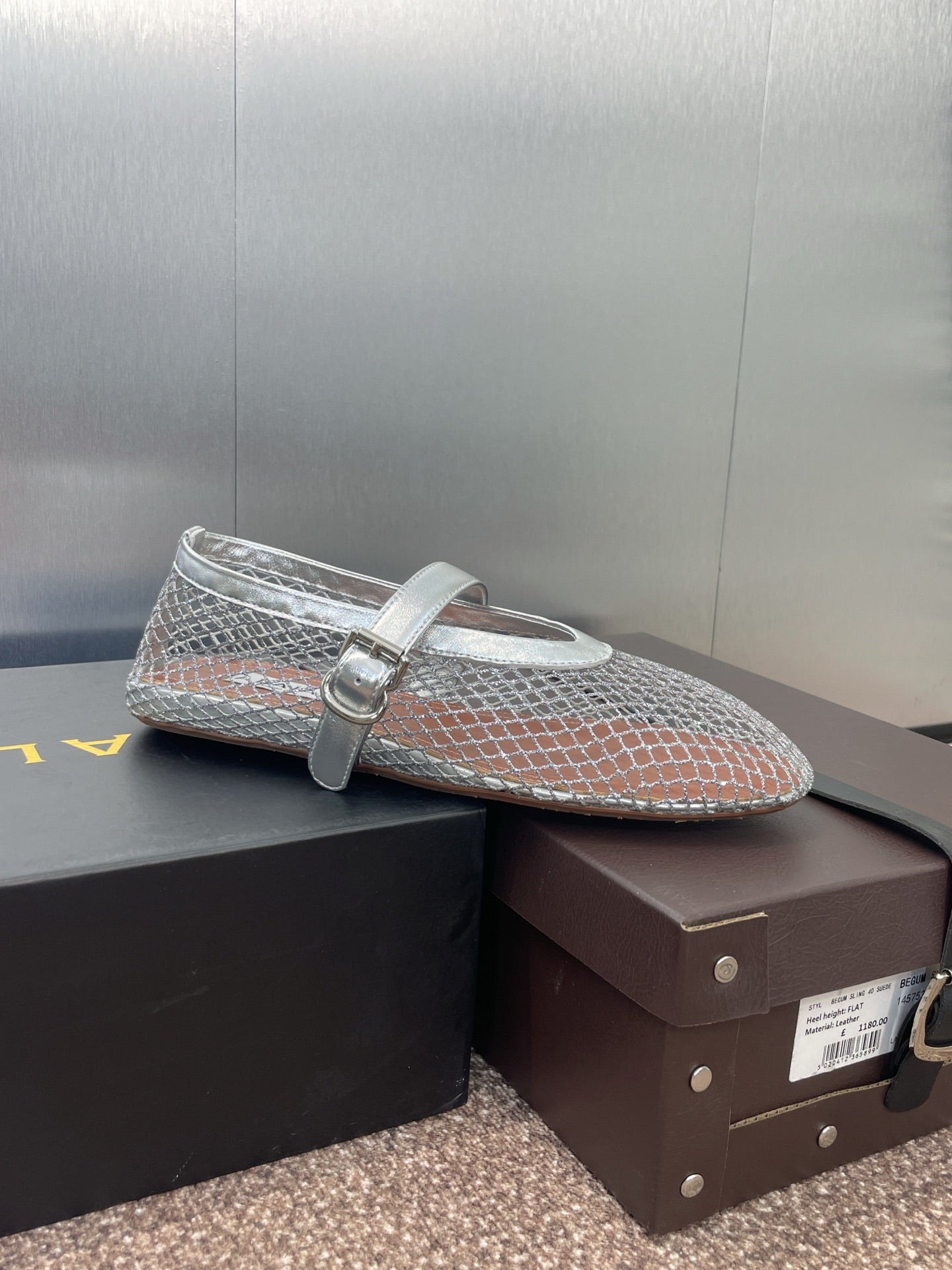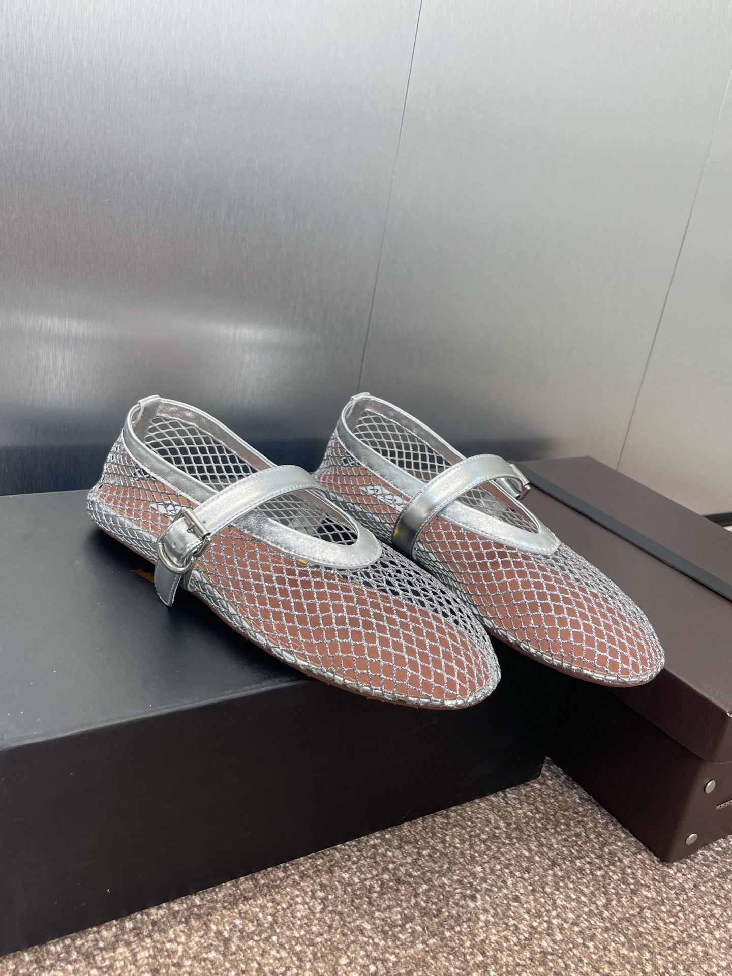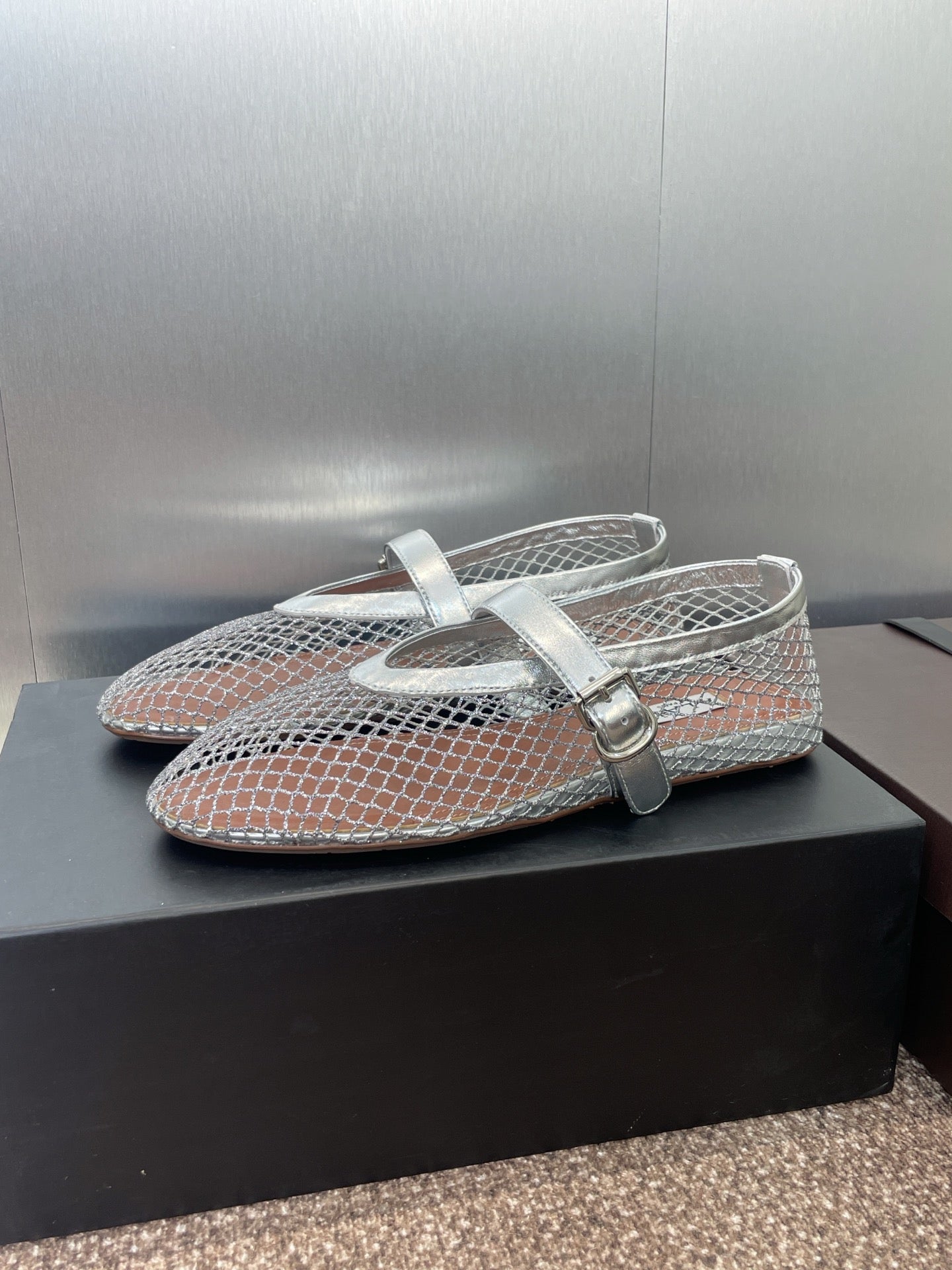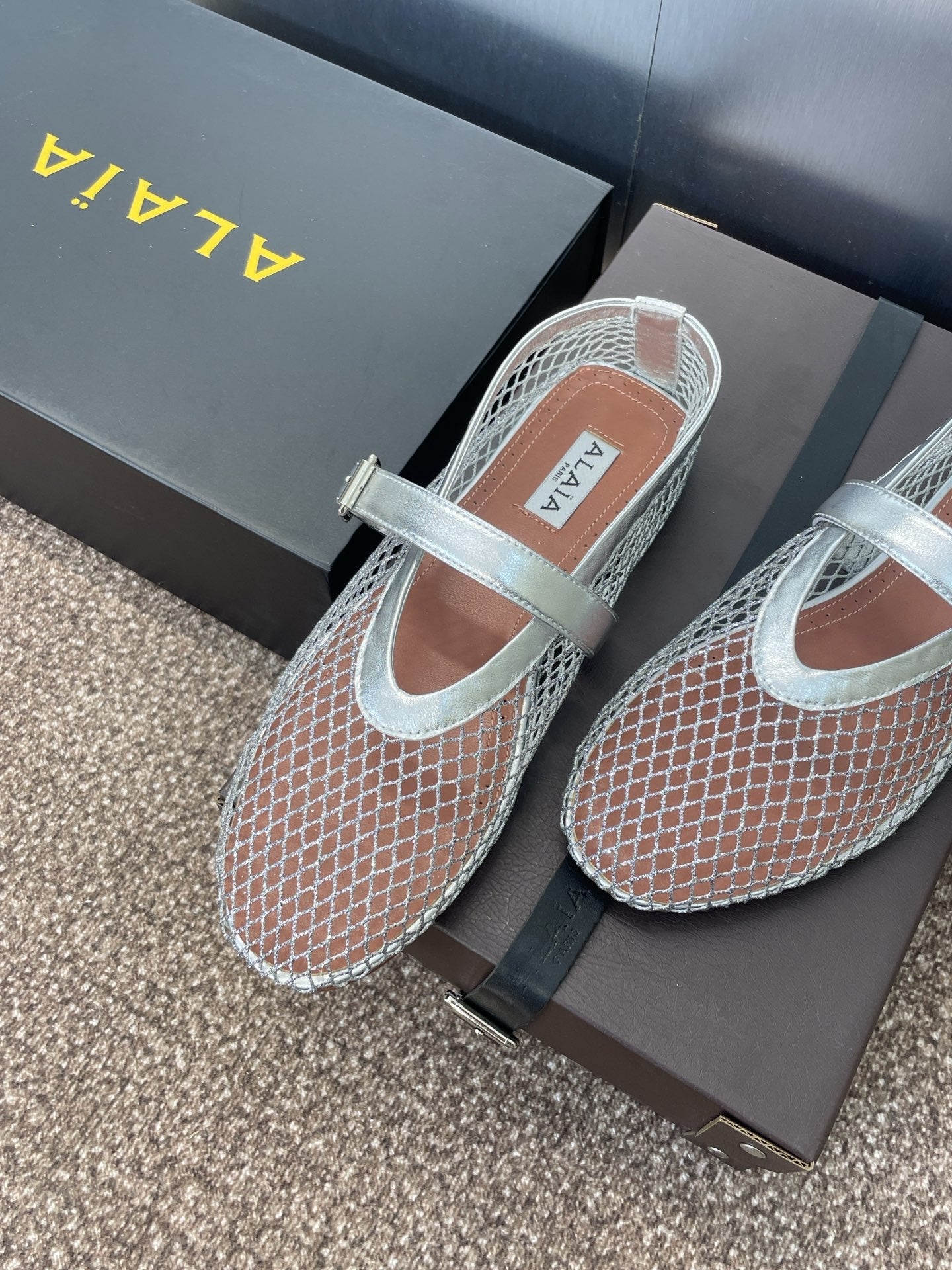 ALAIA MARY JANE FLAT 25S IN SILVER MESH CALFSKIN
