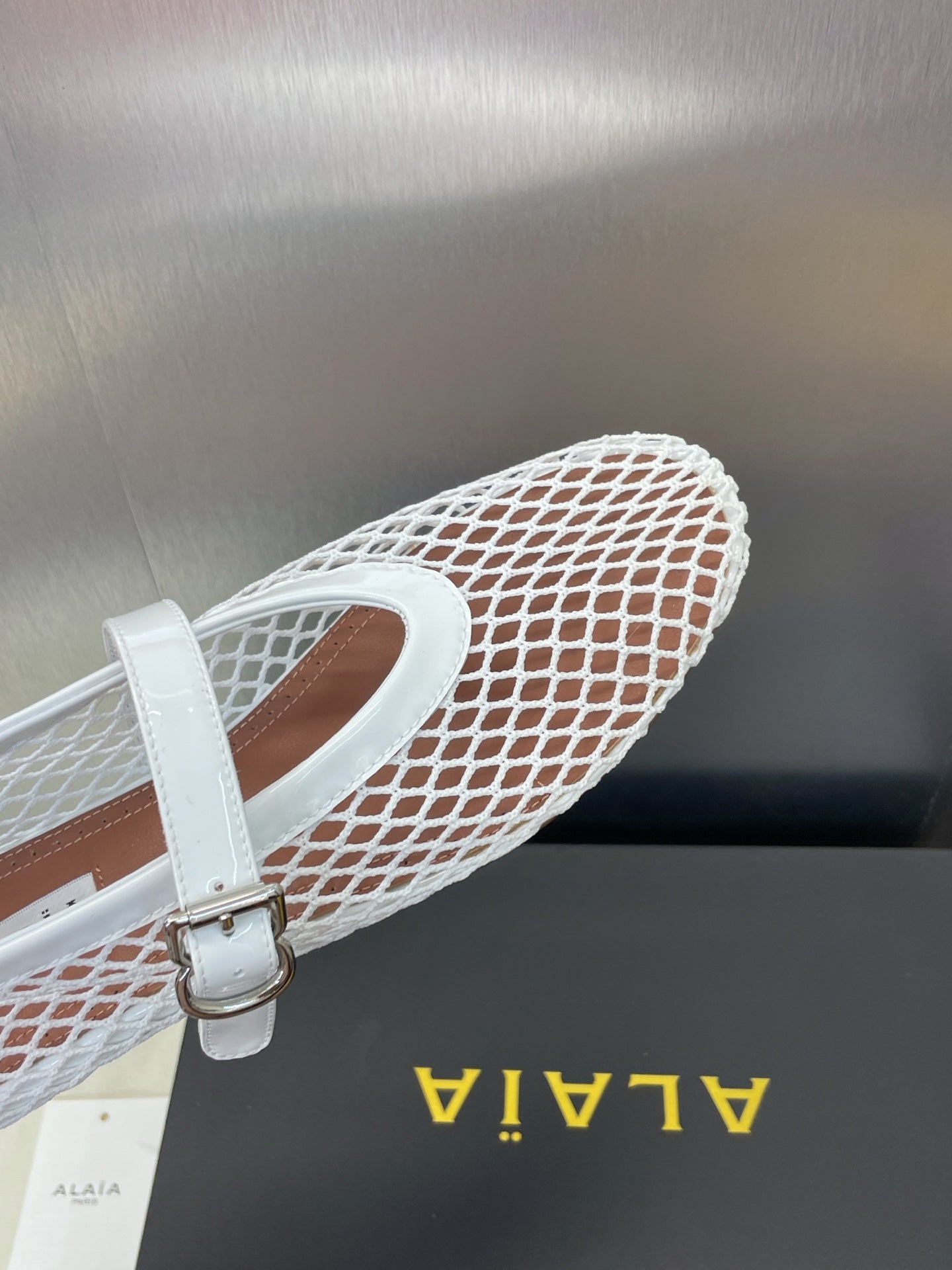 ALAIA MARY JANE FLAT 25S IN WHITE MESH CALFSKIN