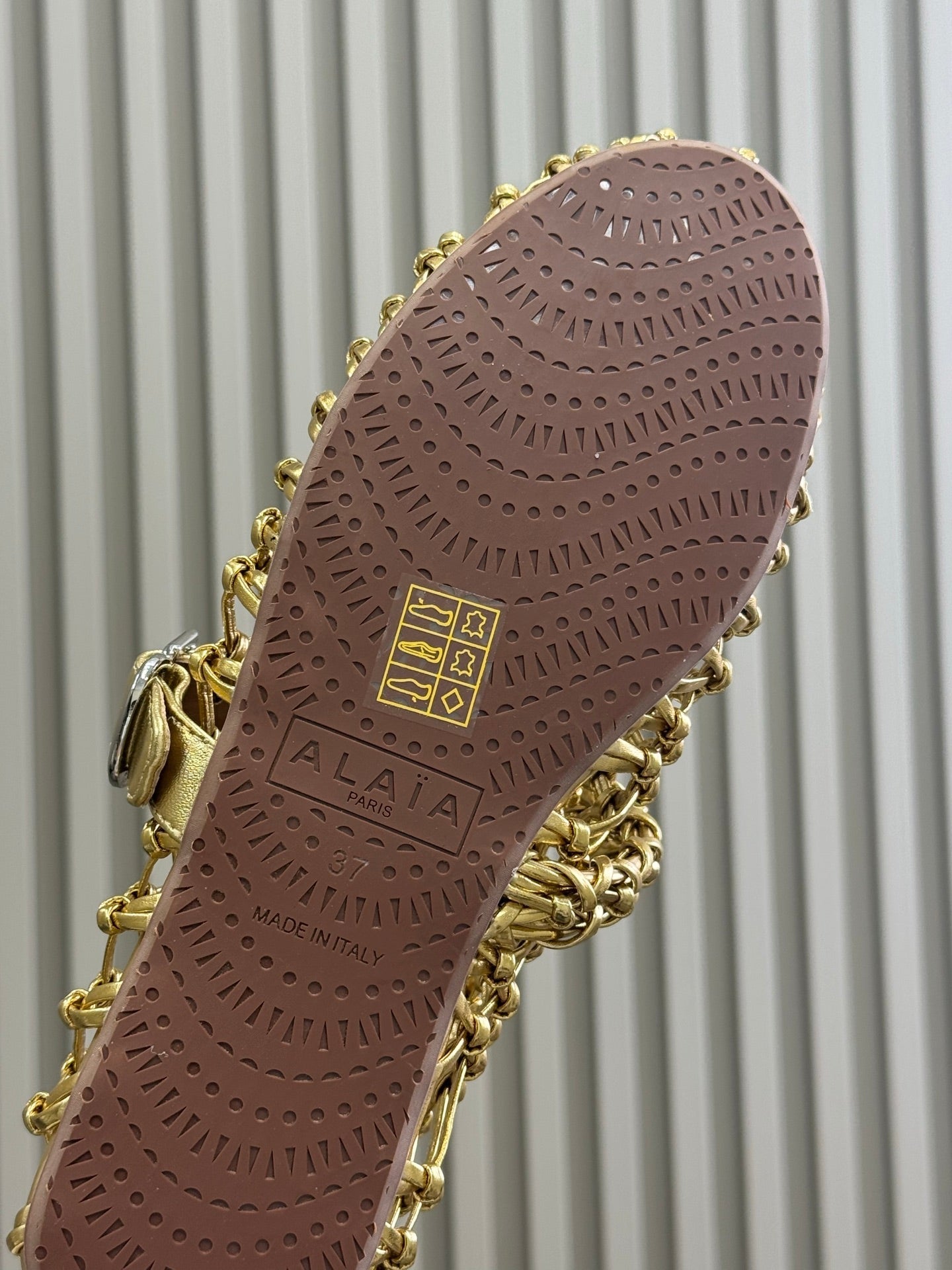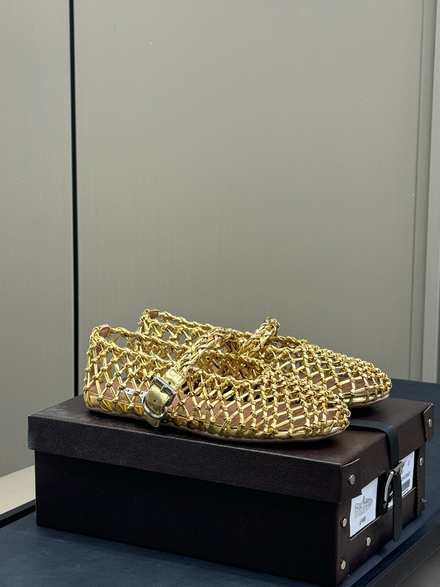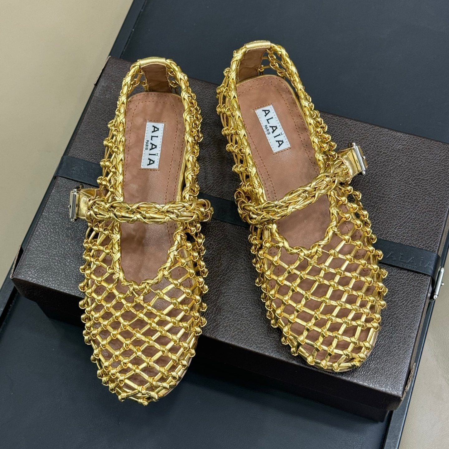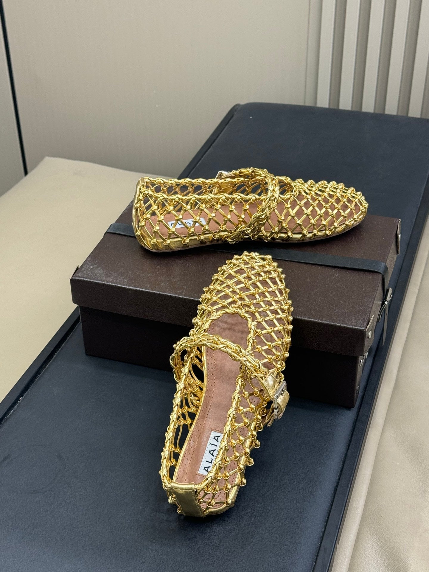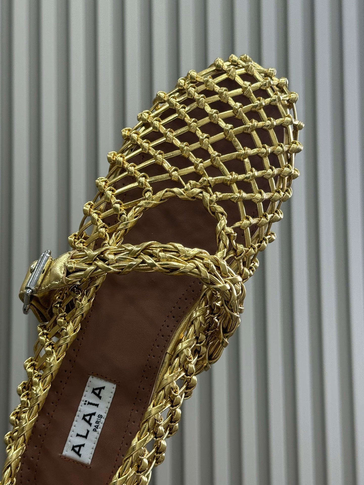 ALAIA MARY JANE FLATS 25S IN GOLD MESH CALSKIN WITH SILVER HARDWARE