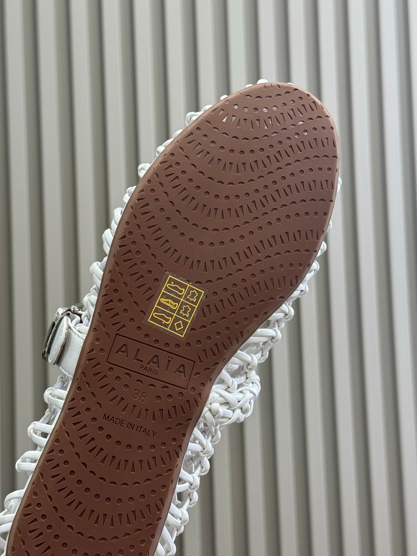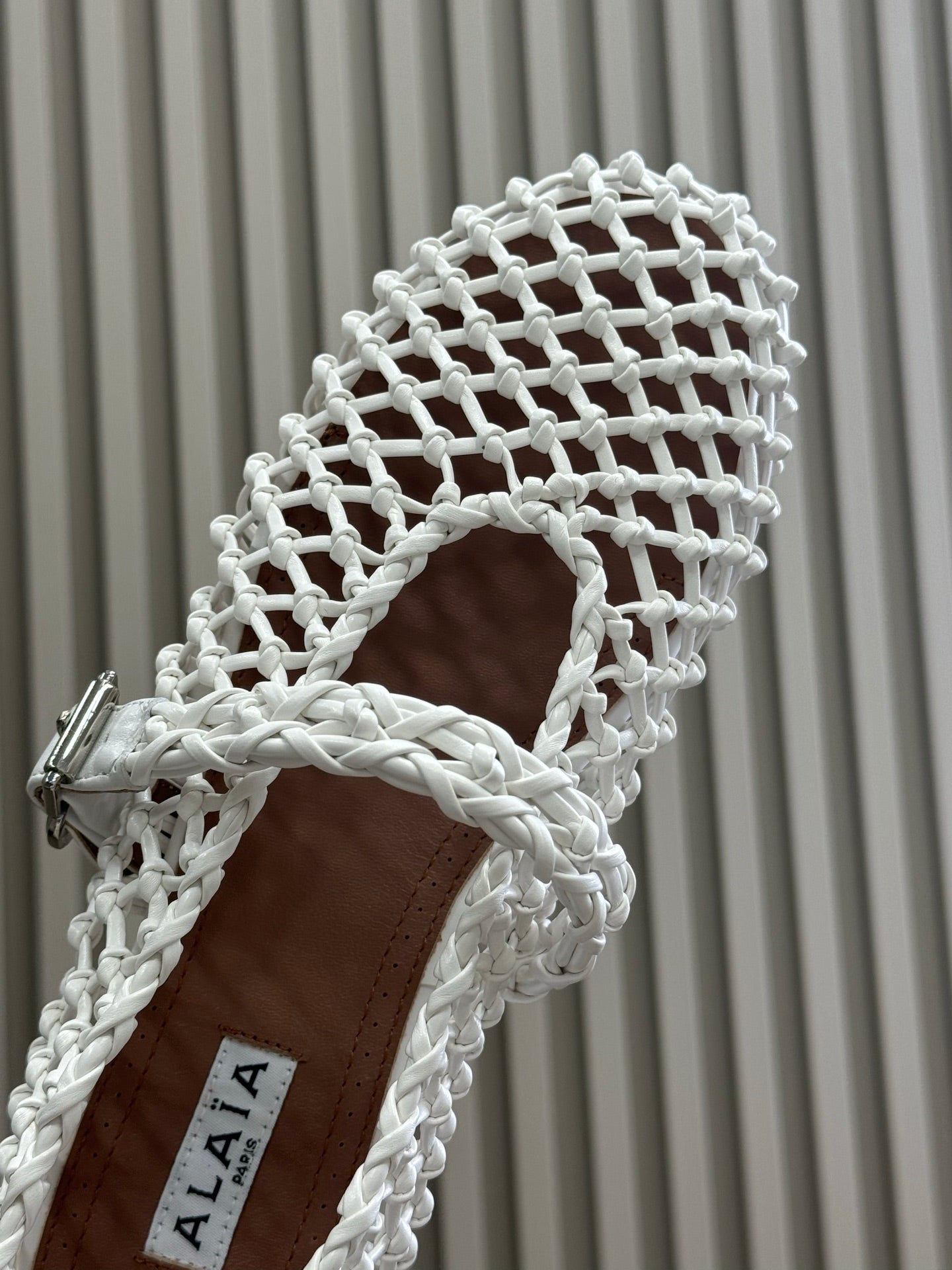 ALAIA MARY JANE FLATS 25S IN WHITE MESH CALSKIN WITH SILVER HARDWARE
