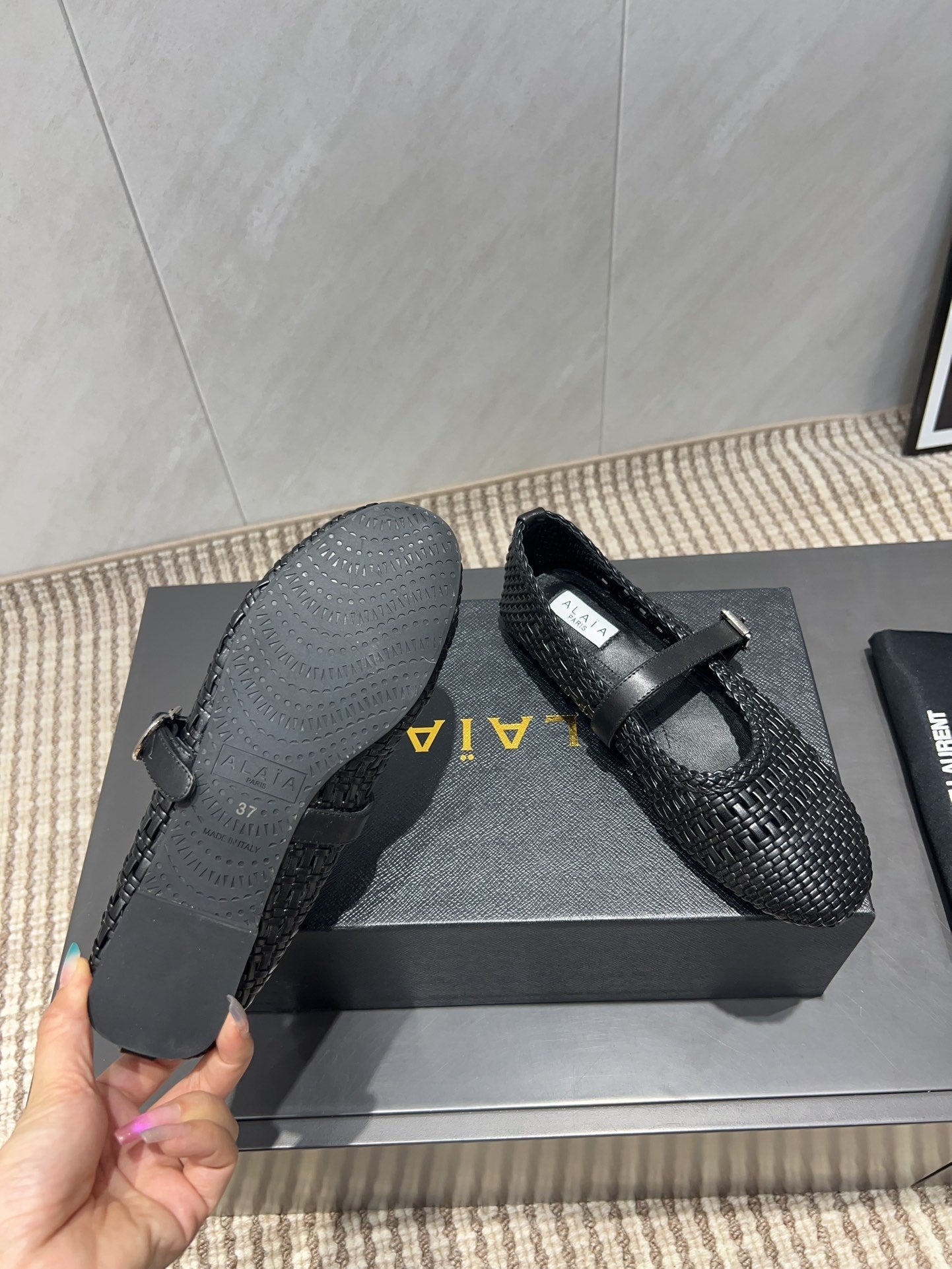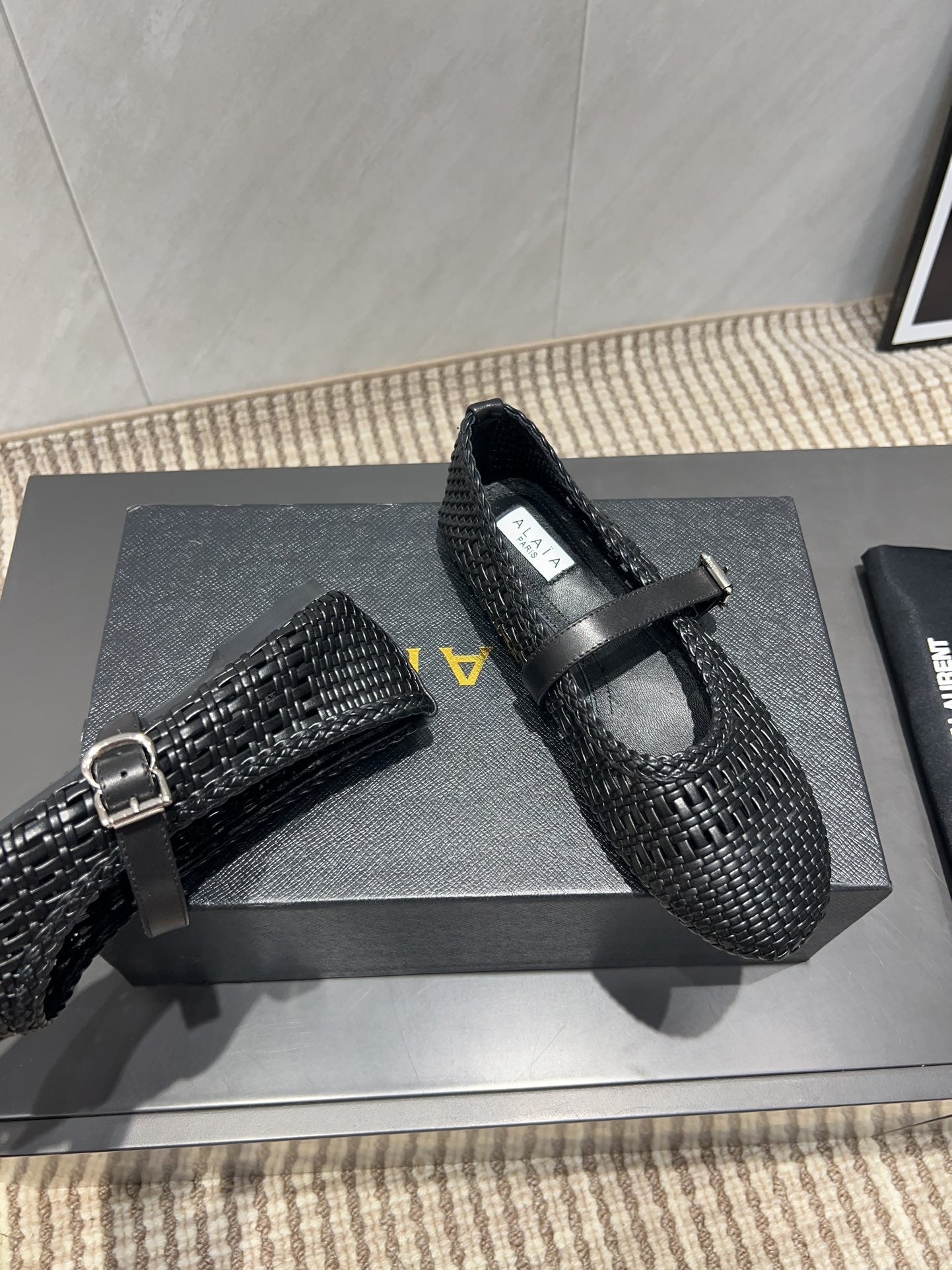 ALAIA MARY JANE FLATS WOVEN PATTERN 25S IN BLACK CALFSKIN