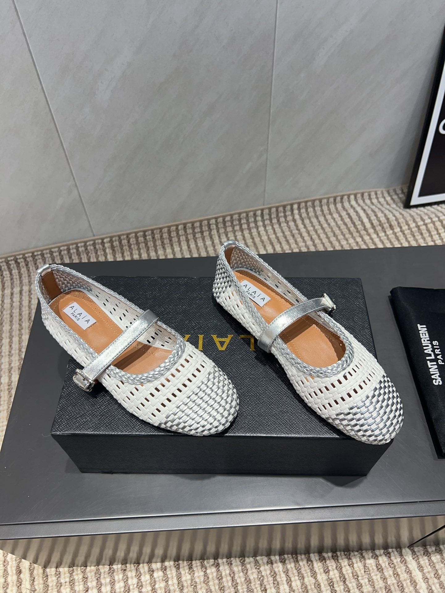 ALAIA MARY JANE FLATS WOVEN PATTERN 25S IN WHITE MIX GREY CALFSKIN