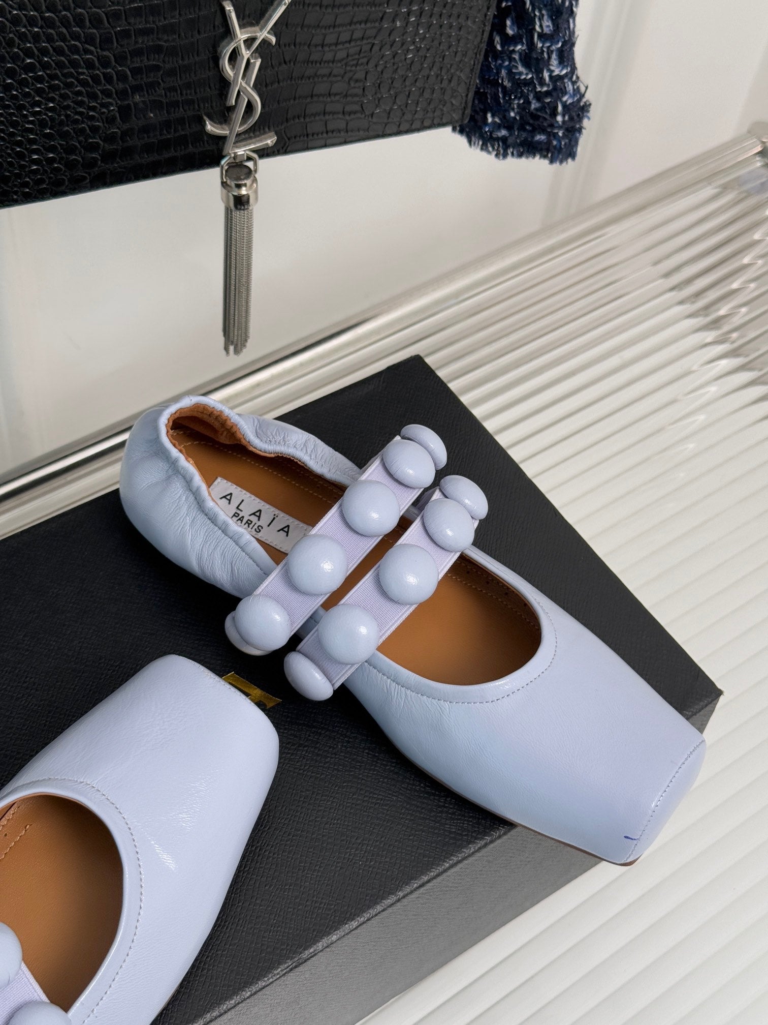 ALAIA MARY JANE PEARL IN PALE PURPLE GLOSSY LAMBSKIN