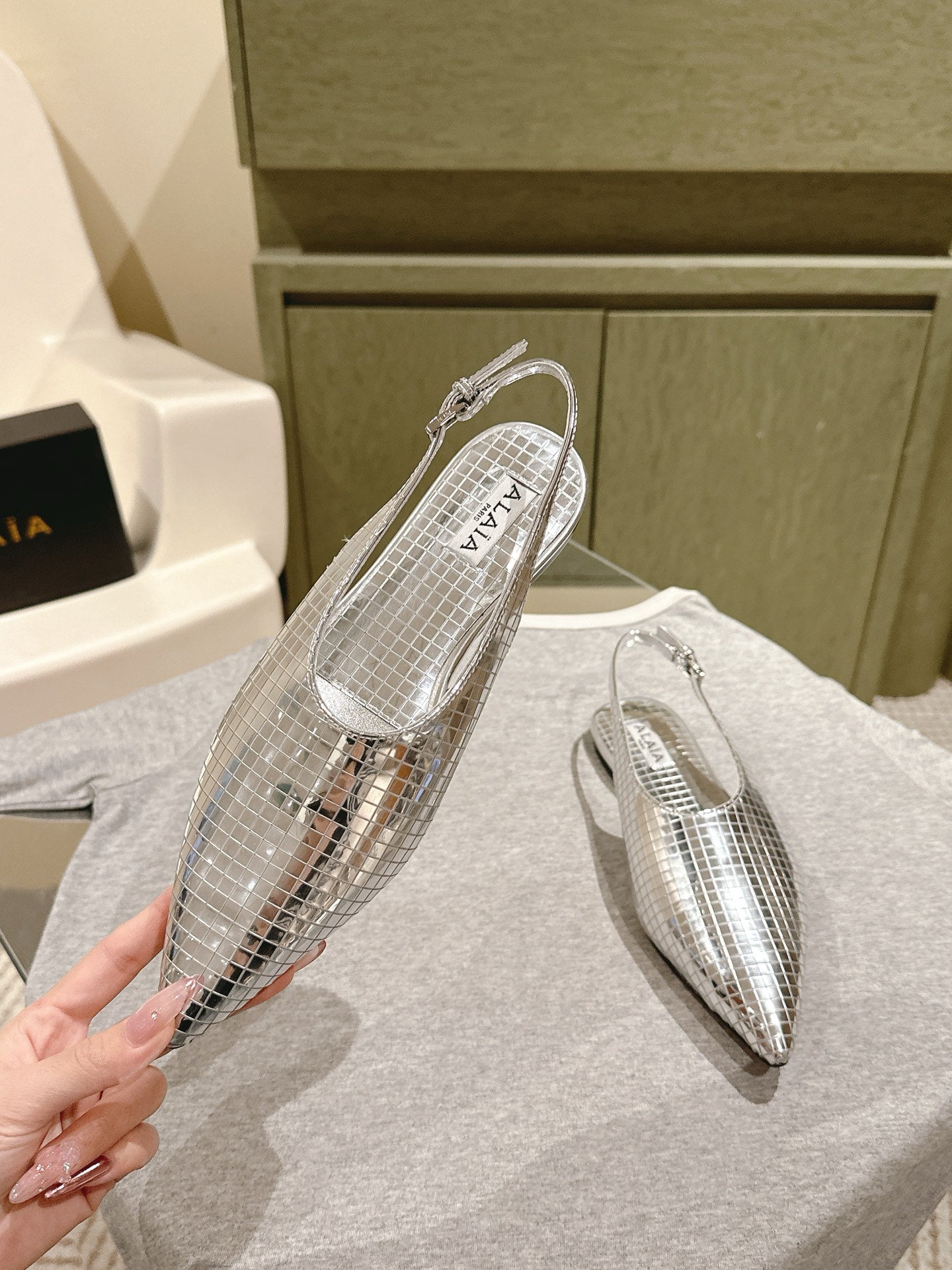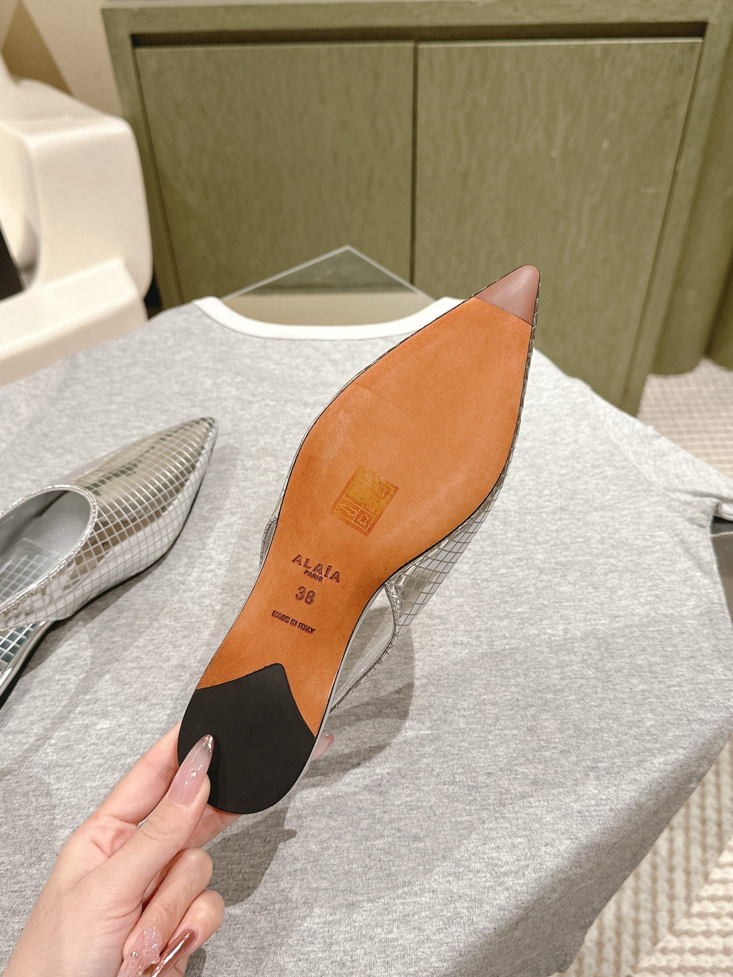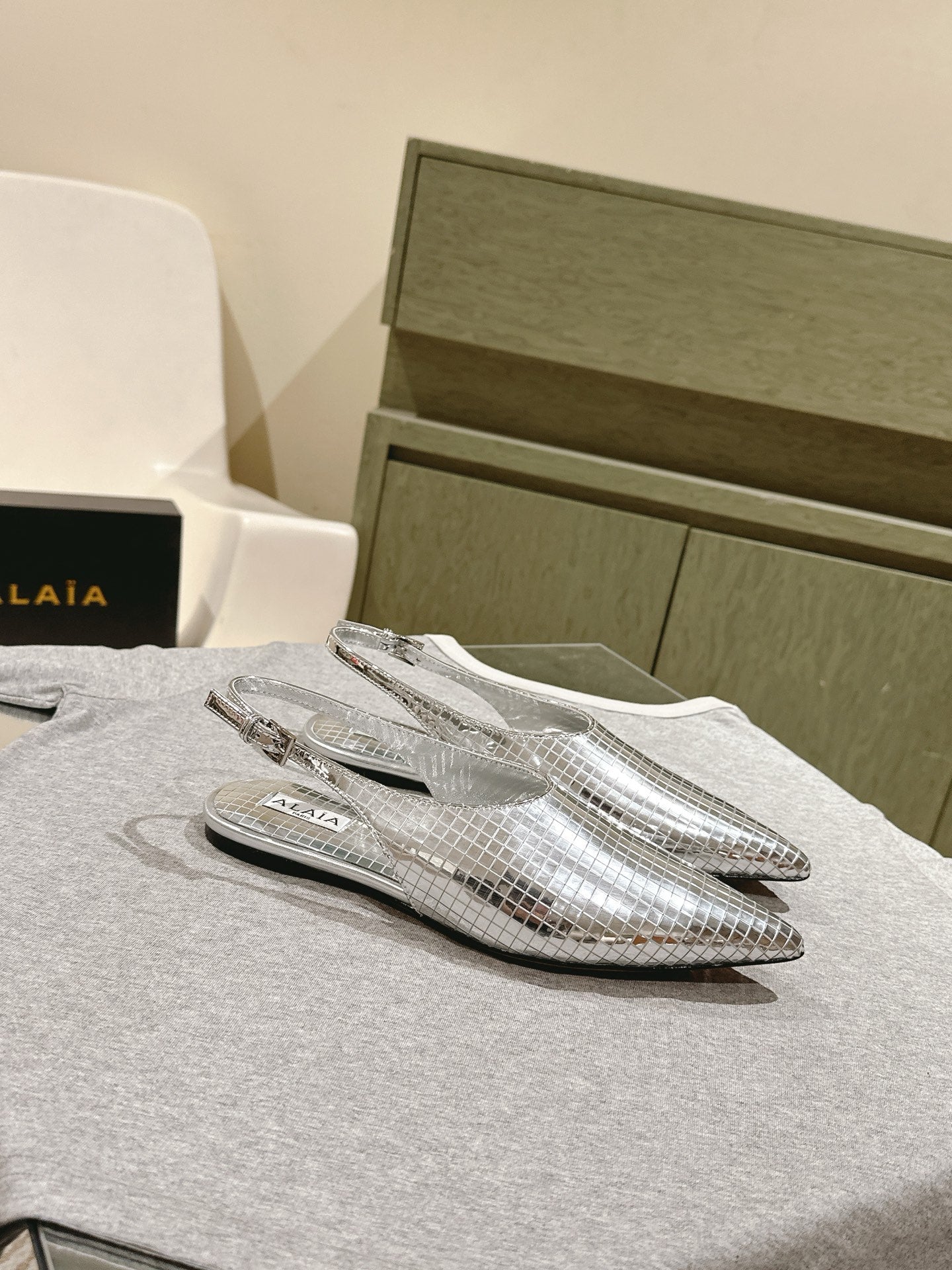 ALAIA SLINGBACK 25S IN SILVER PATENT LEATHER