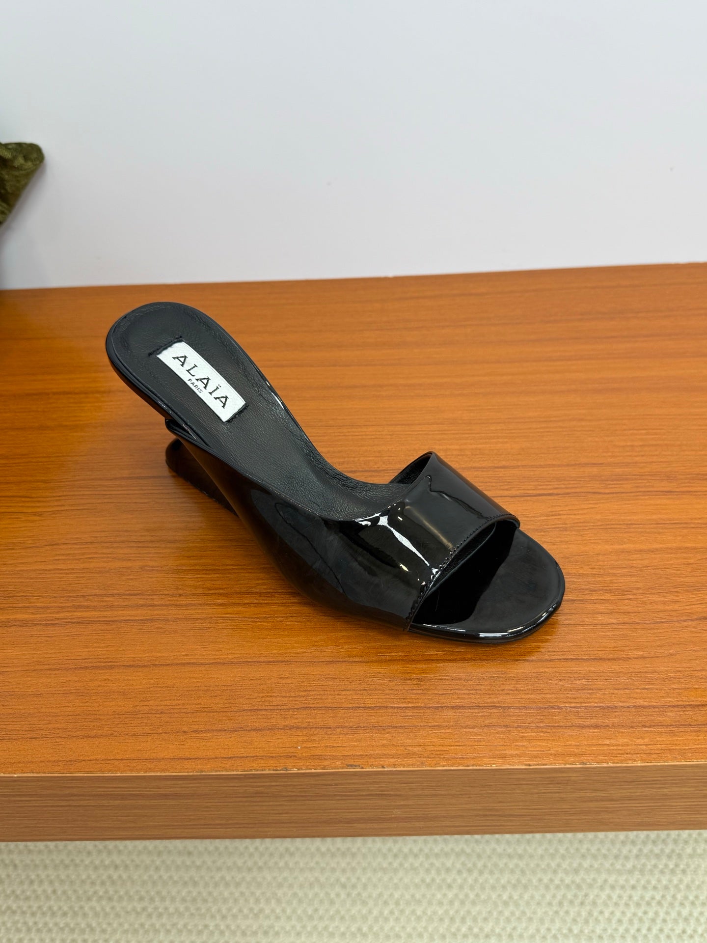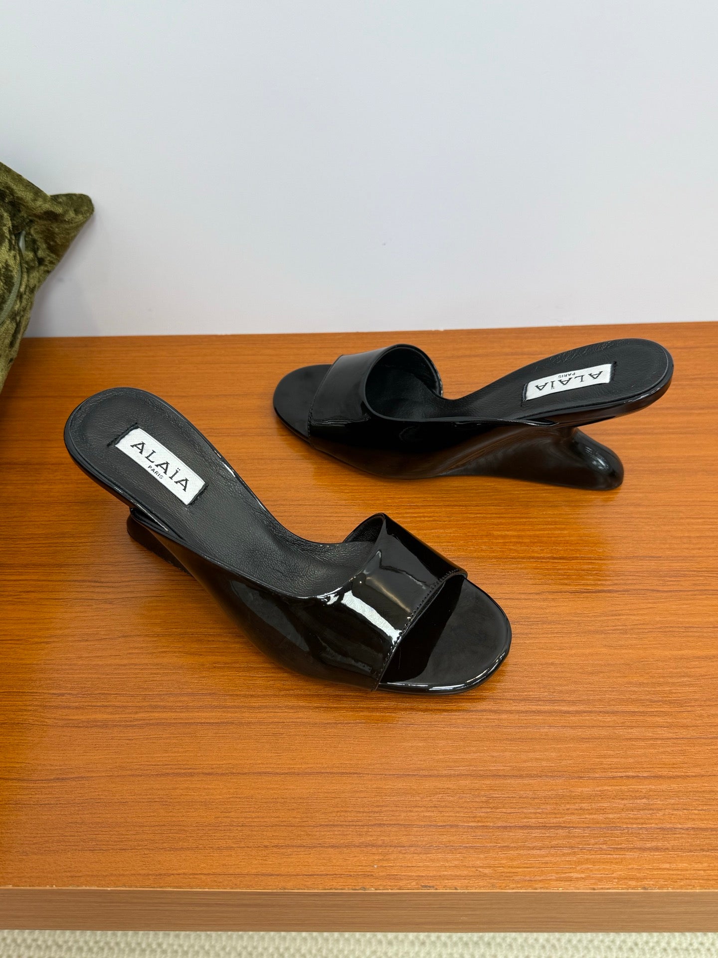 ALAIA WEDGE SANDALS 25S IN BLACK LAMBSKIN