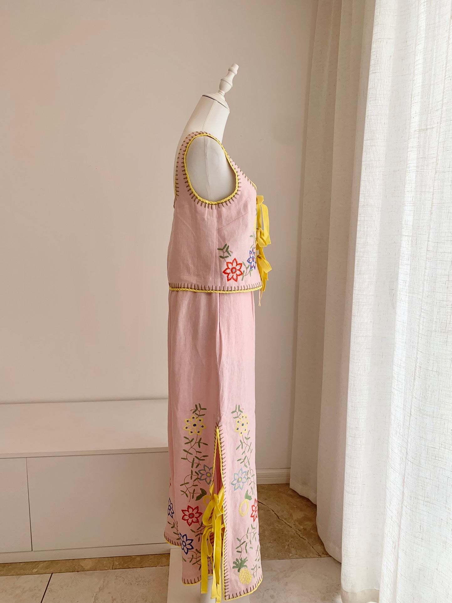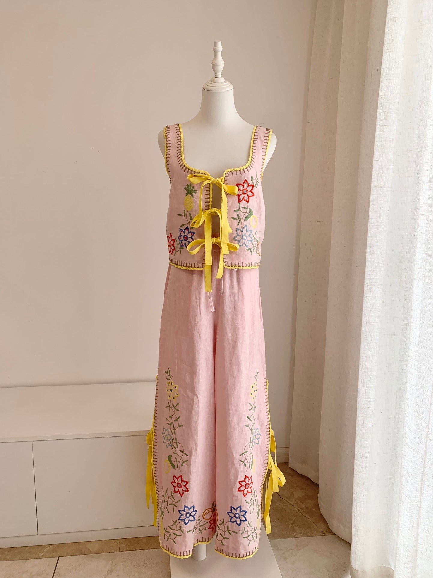 ALEMAIS FLORAL EMBROIDERED SET IN LIGHT PINK 267456