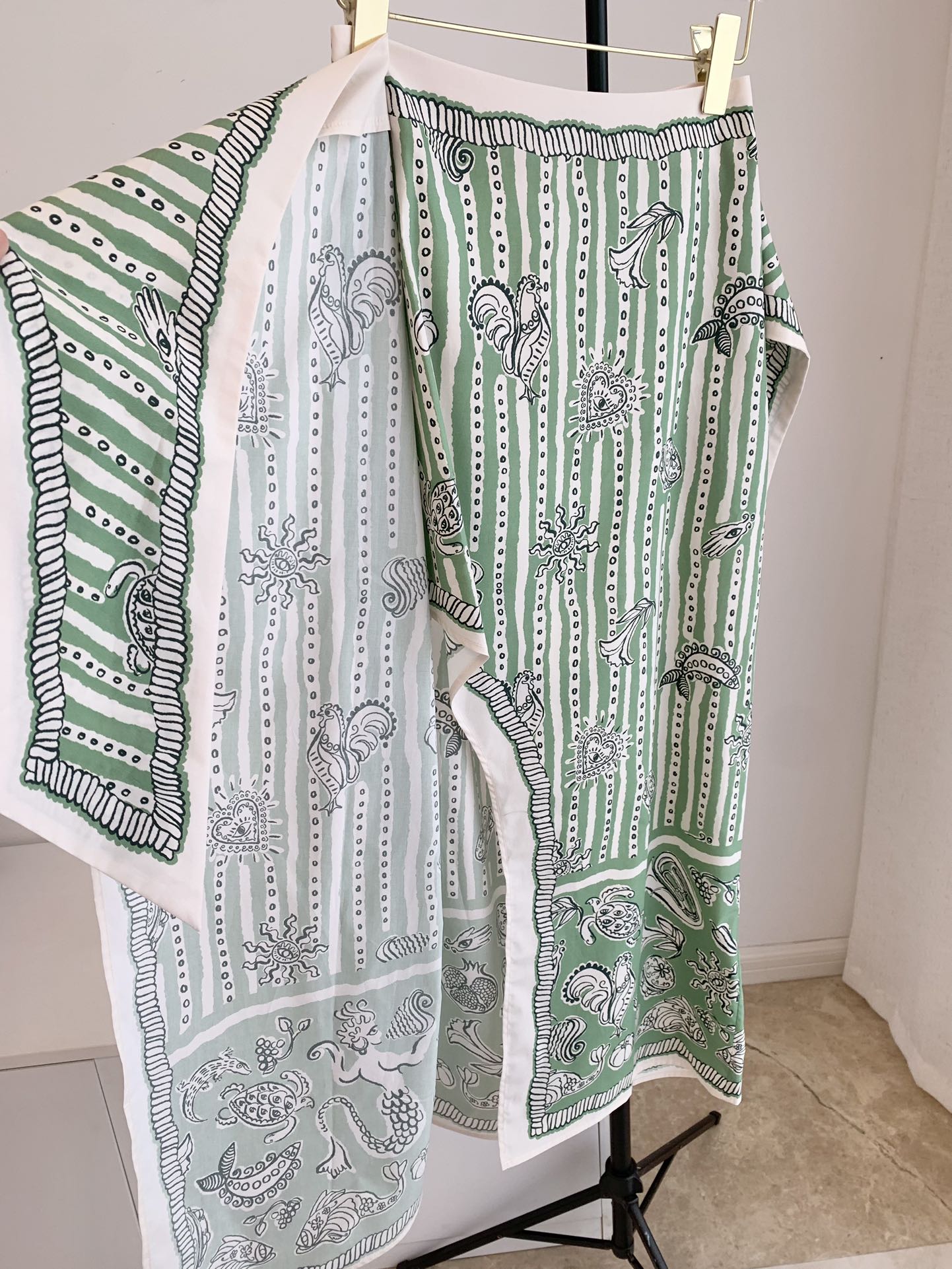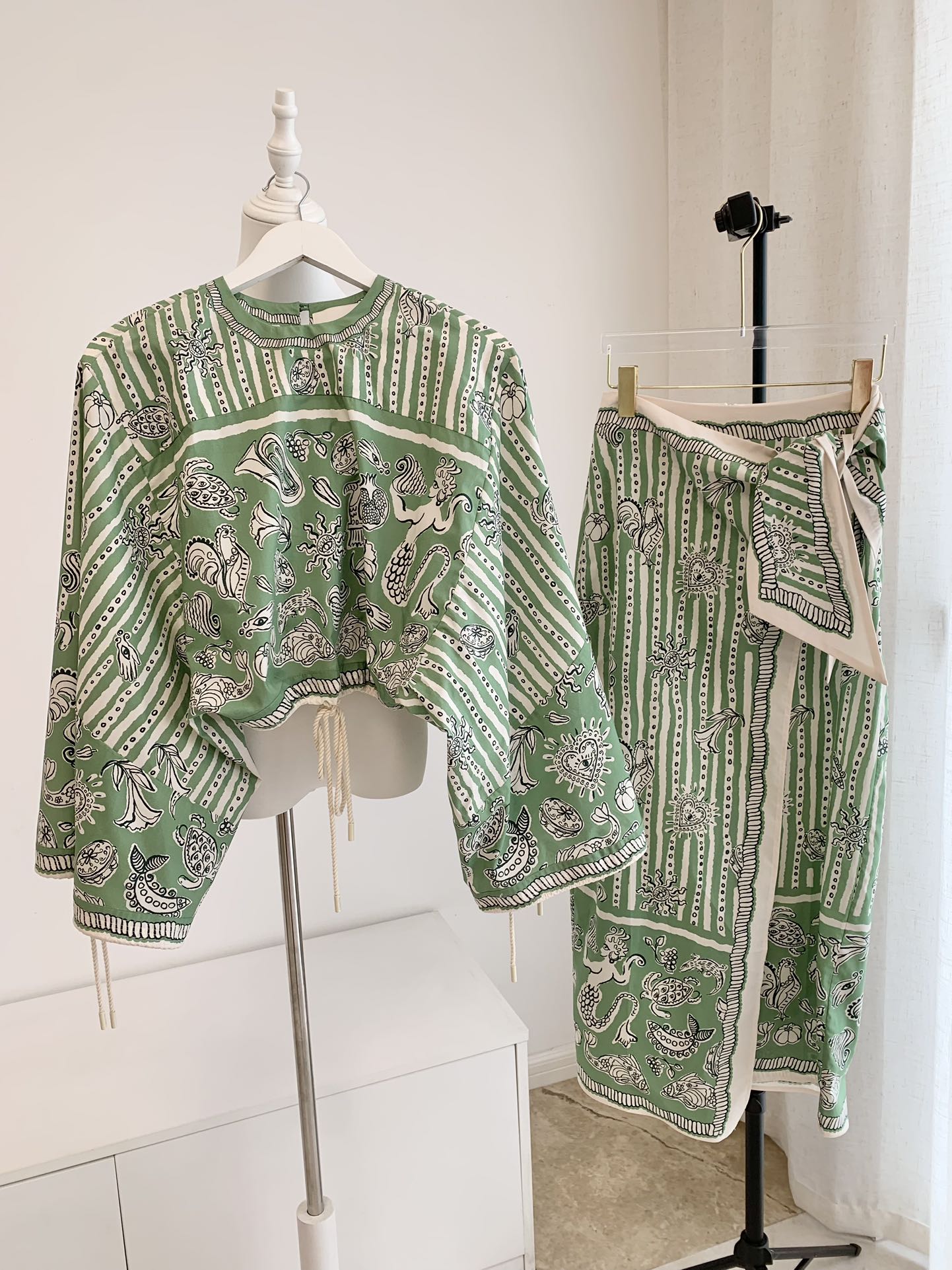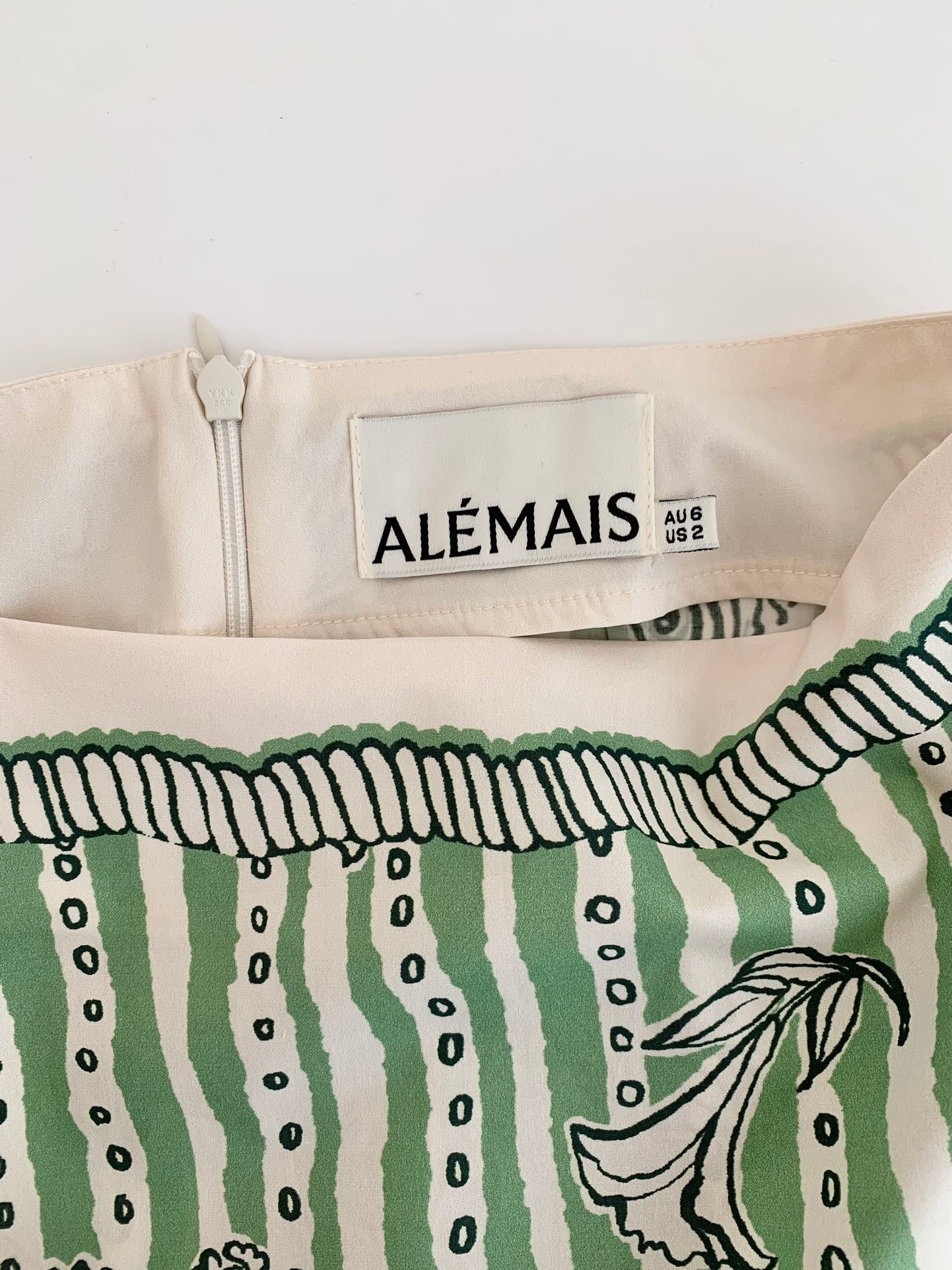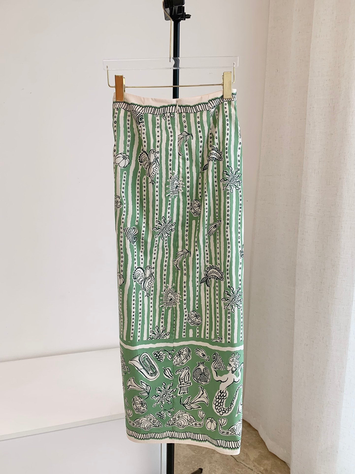 ALEMAIS FLOWY LONG SKIRT IN GREEN MIX WHITE 267465