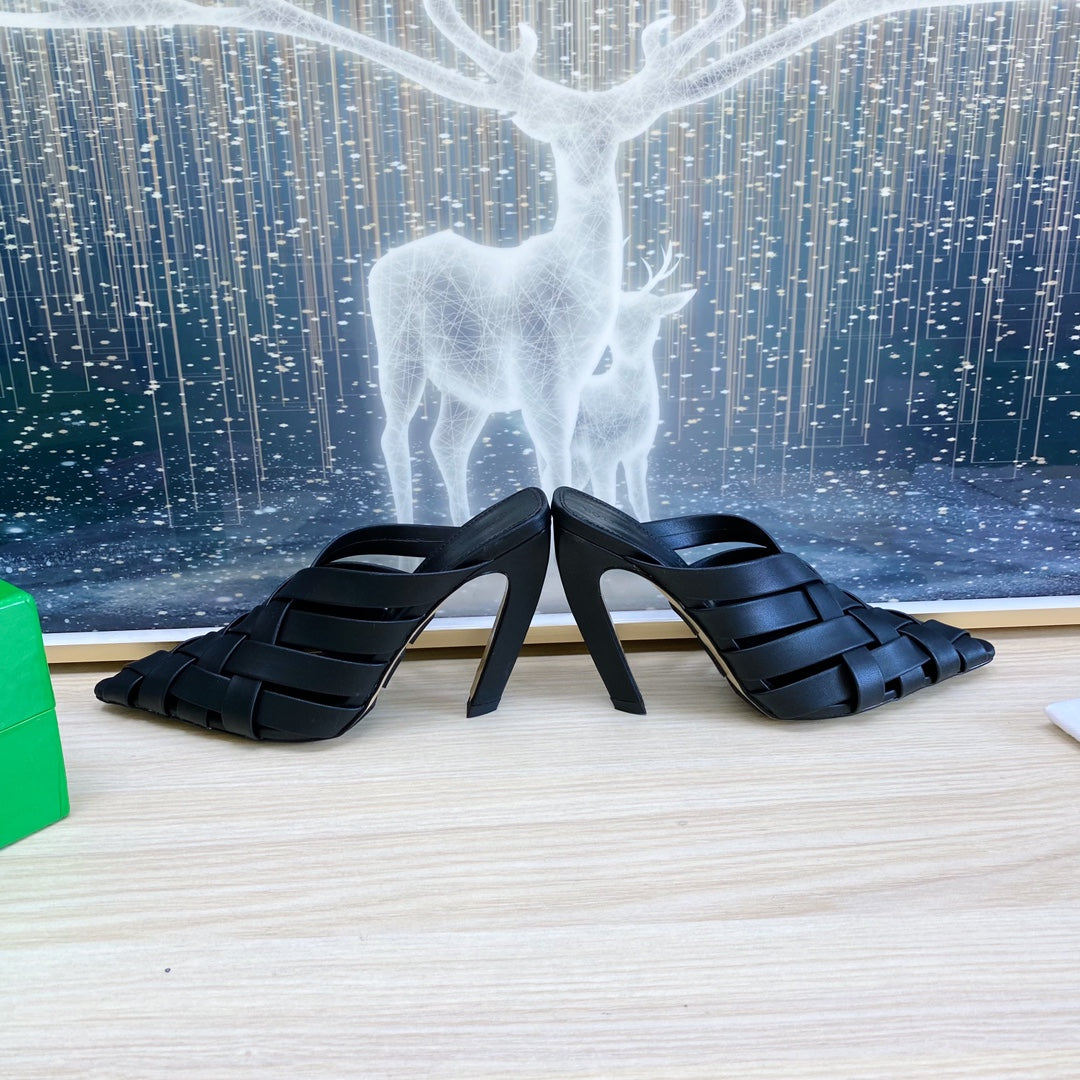 ALFIE LEATHER HIGH MULES IN BLACK CALFSKIN WITH WOVEN DESIGN