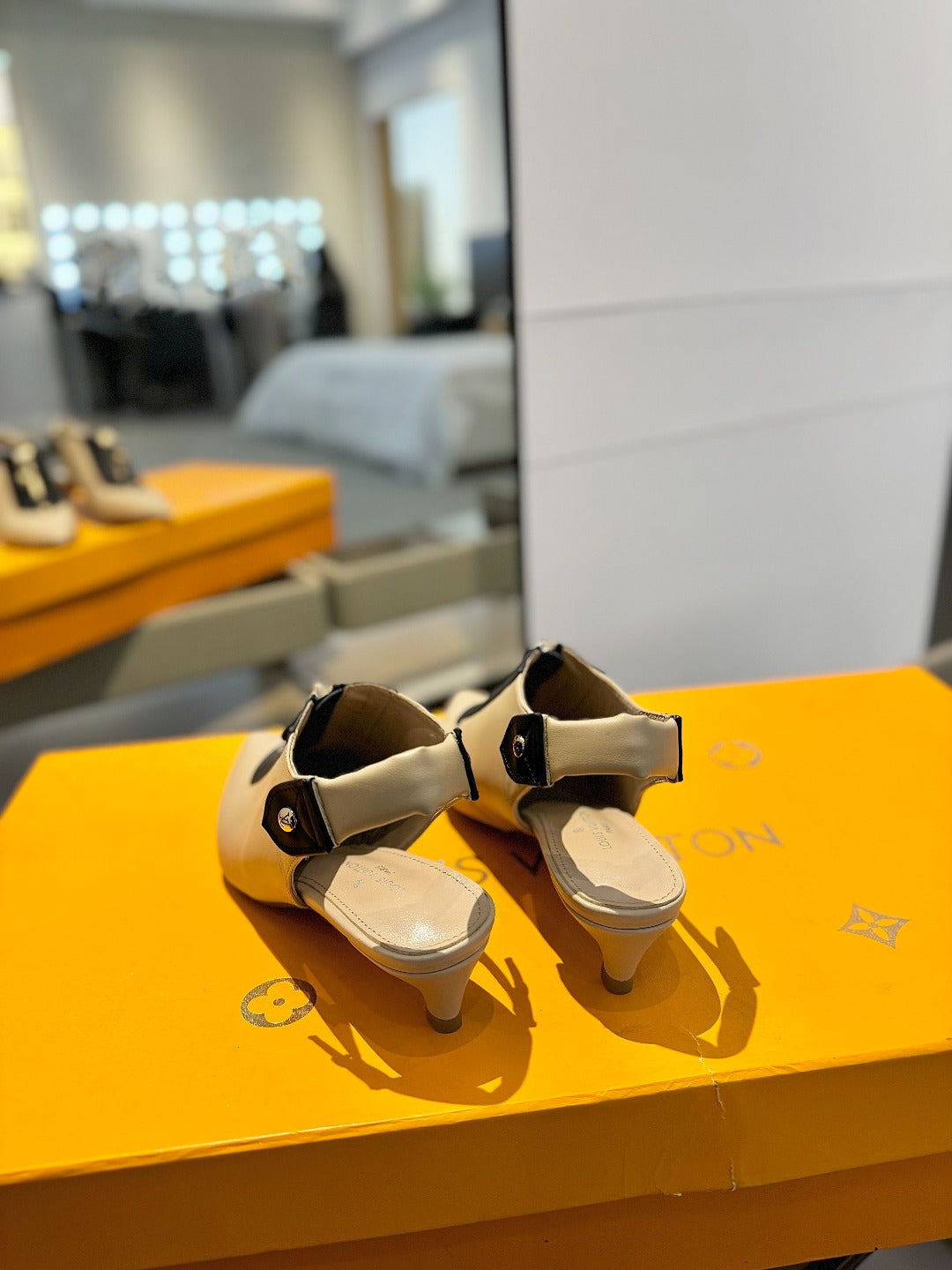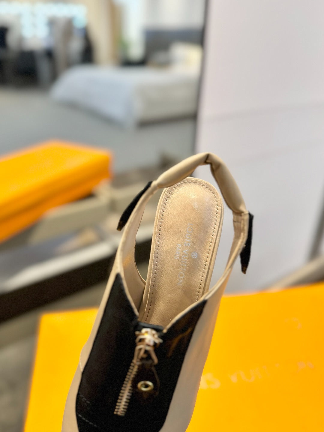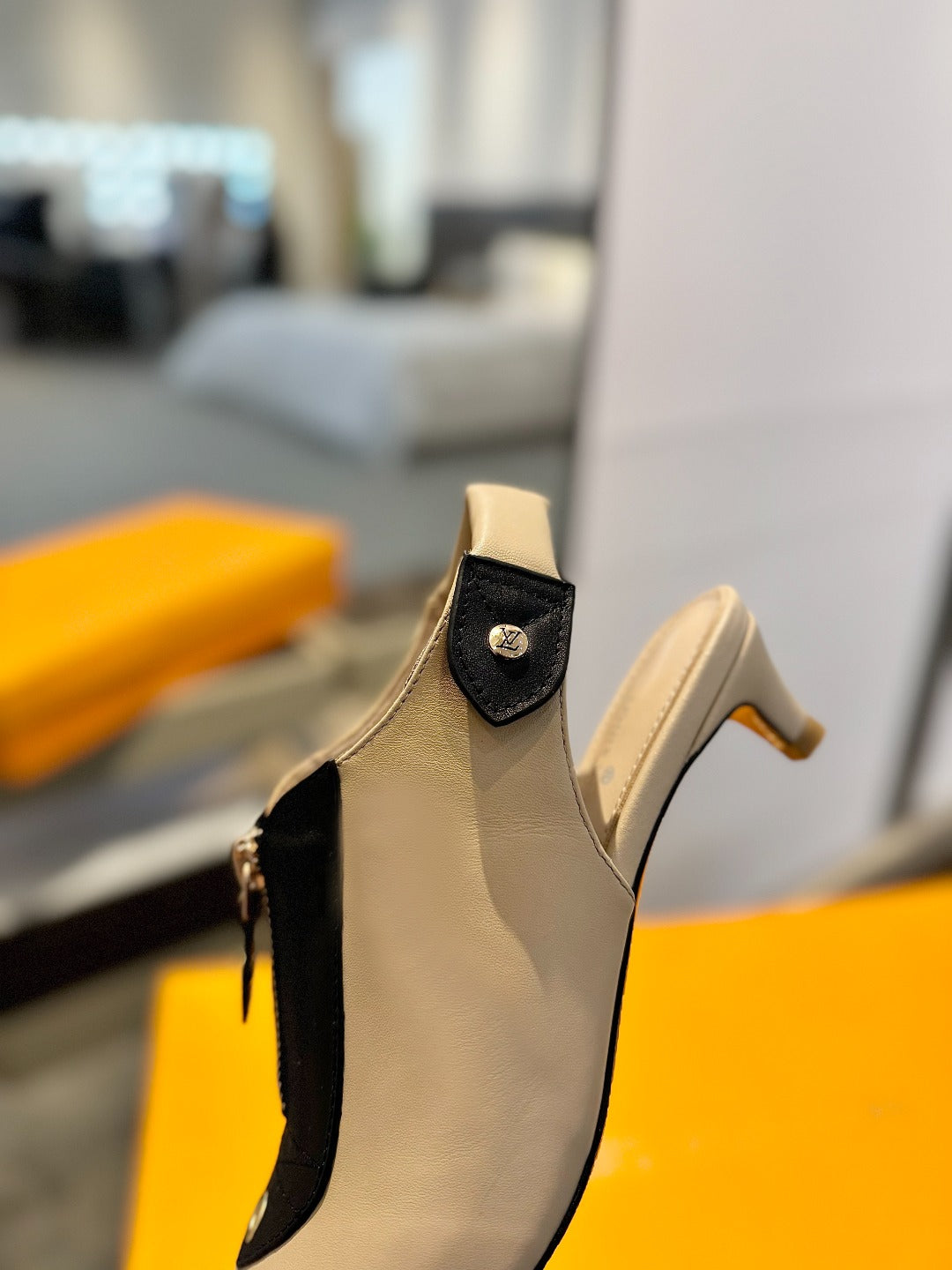 ALLURE HIGH 4.5 CM SLINGBACK IN SAND BROWN MIX BLACK CALFSKIN