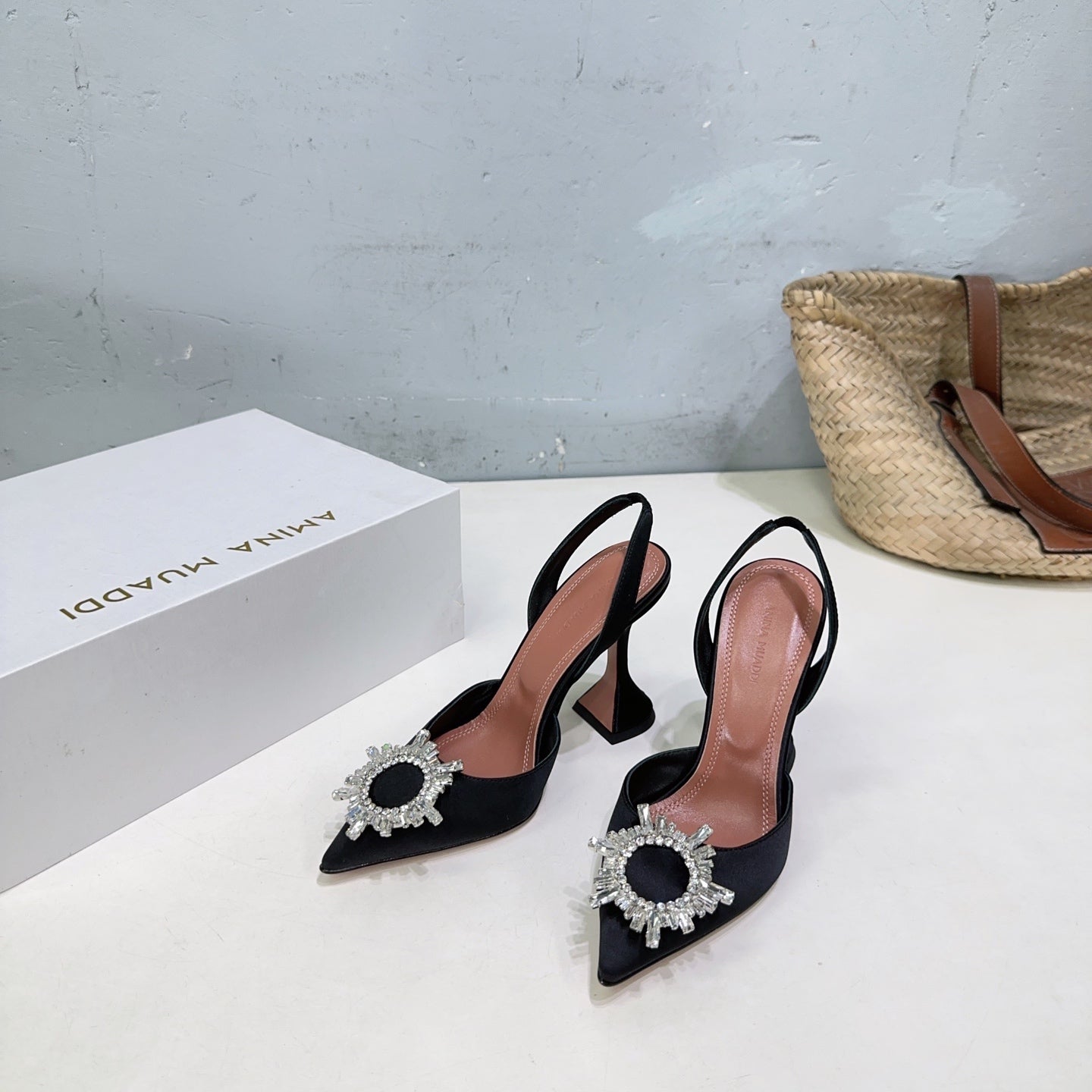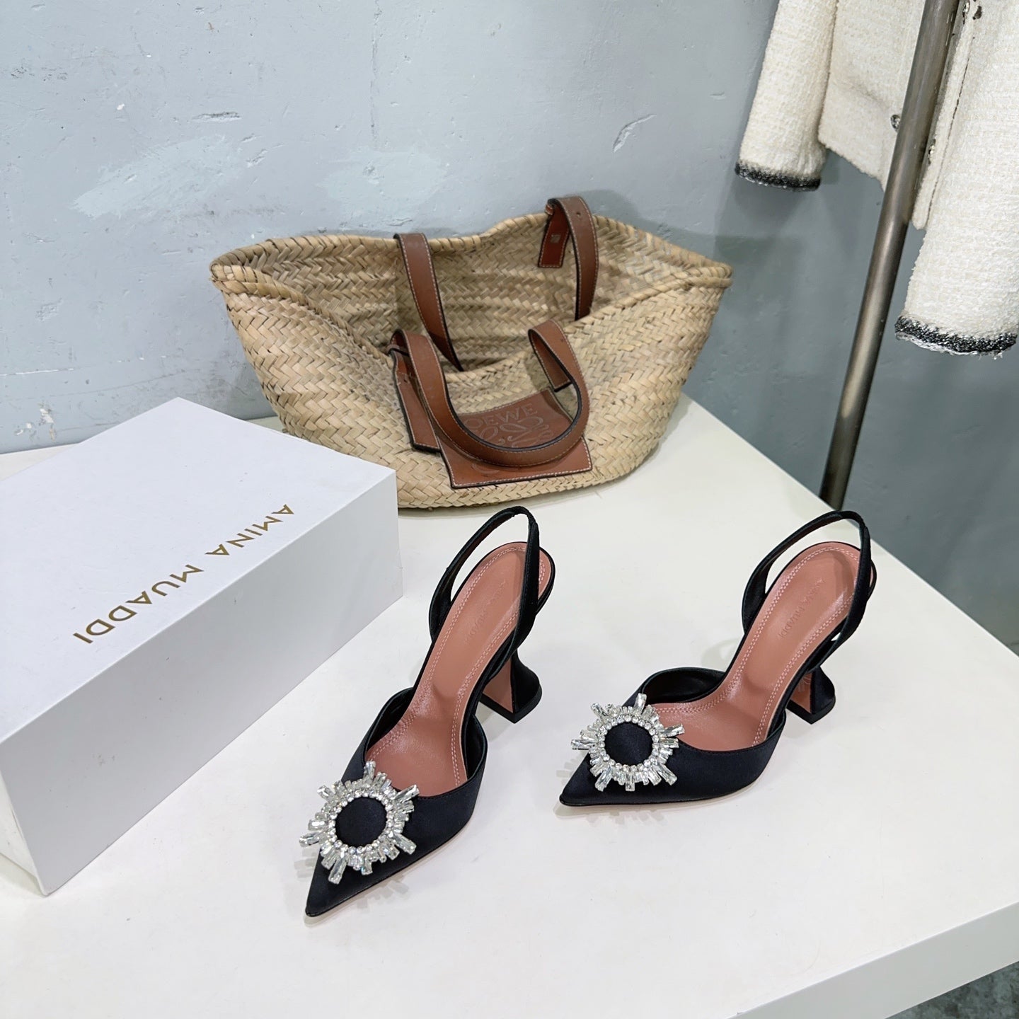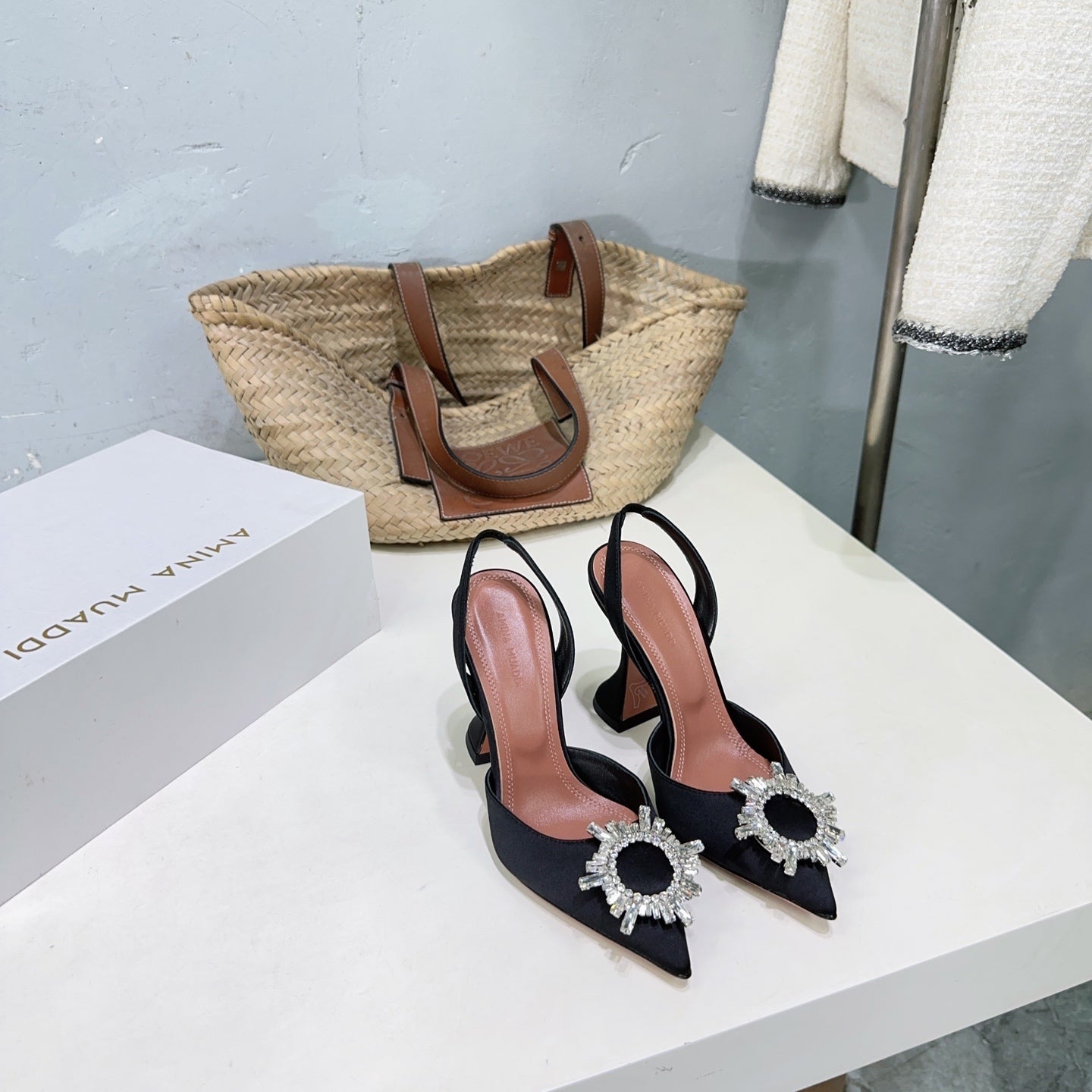 AMINA CRYSTAL 100MM HIGH HEELS IN BLACK SATIN