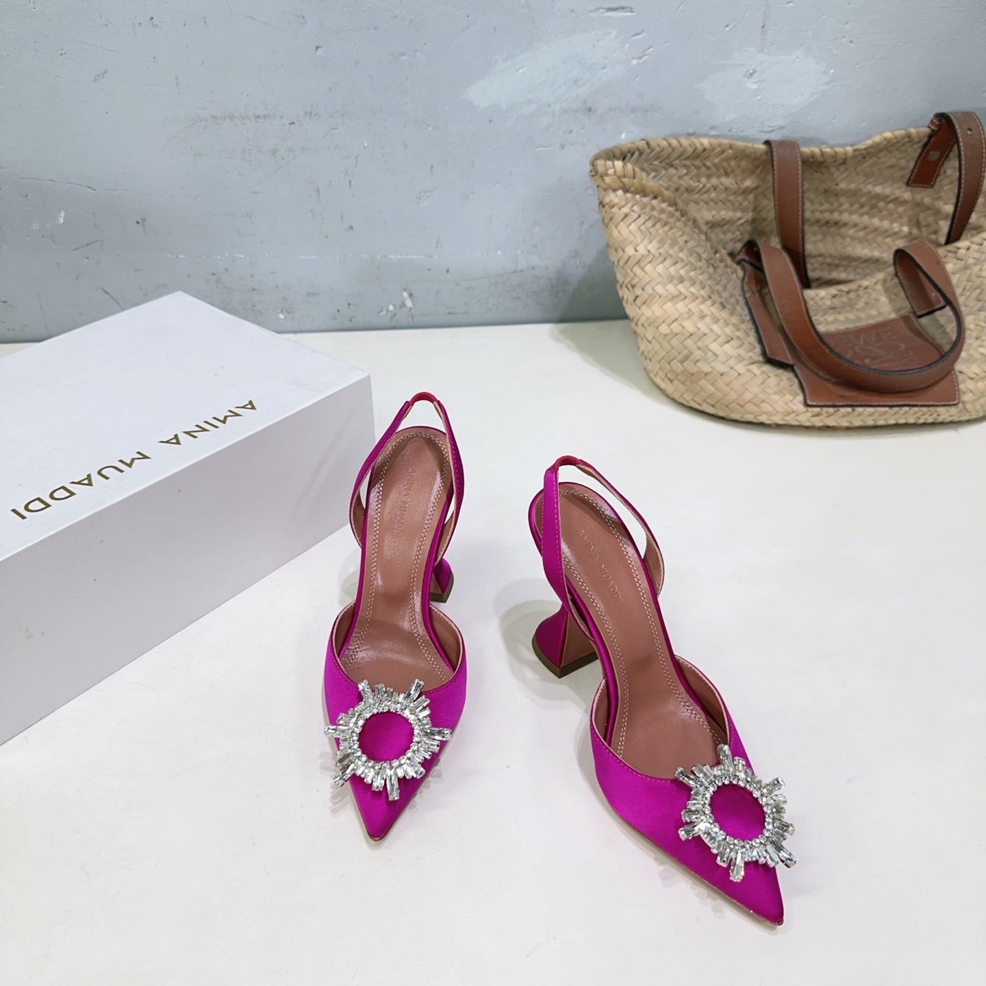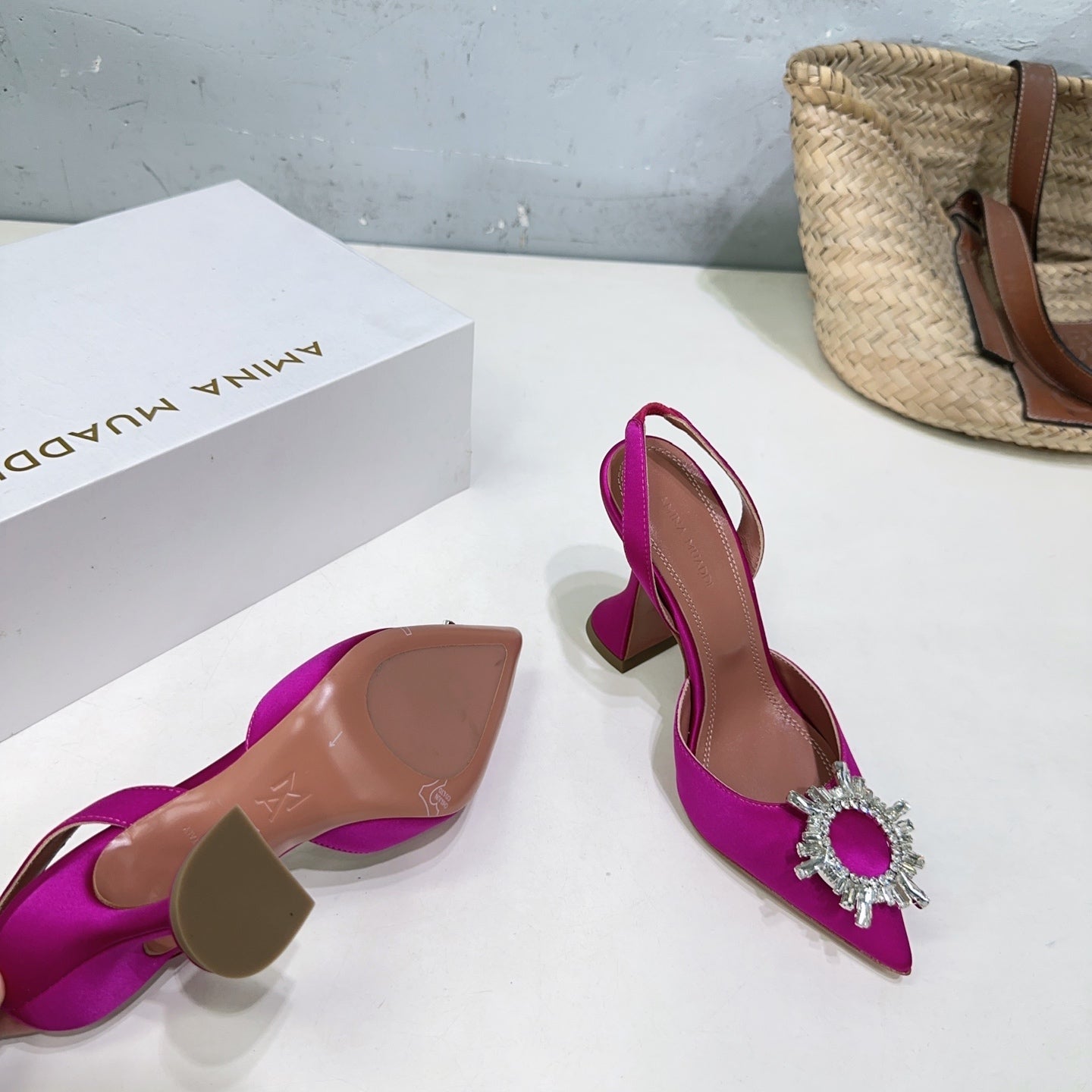 AMINA CRYSTAL 100MM HIGH HEELS IN FUCHSIA PINK SATIN
