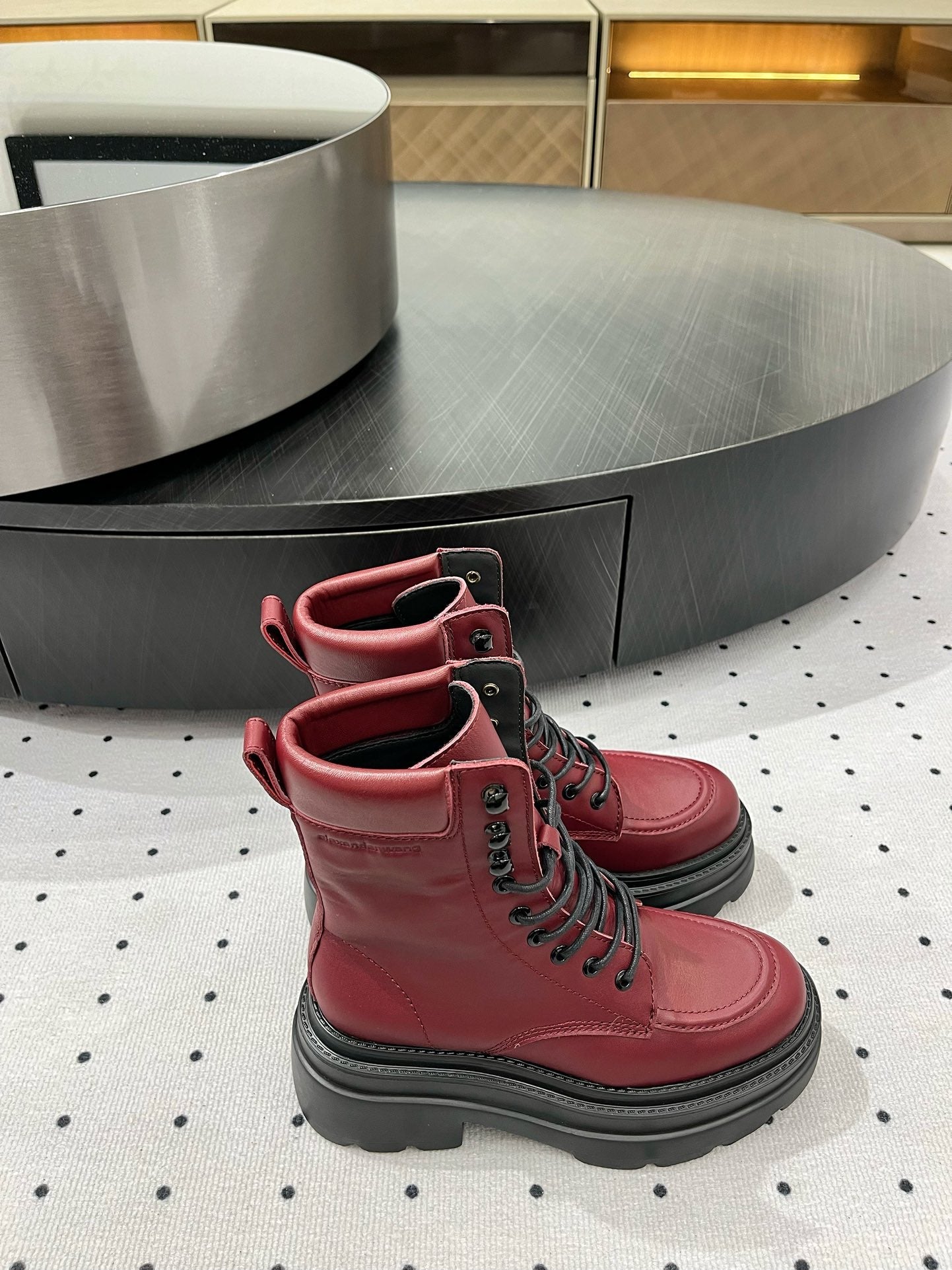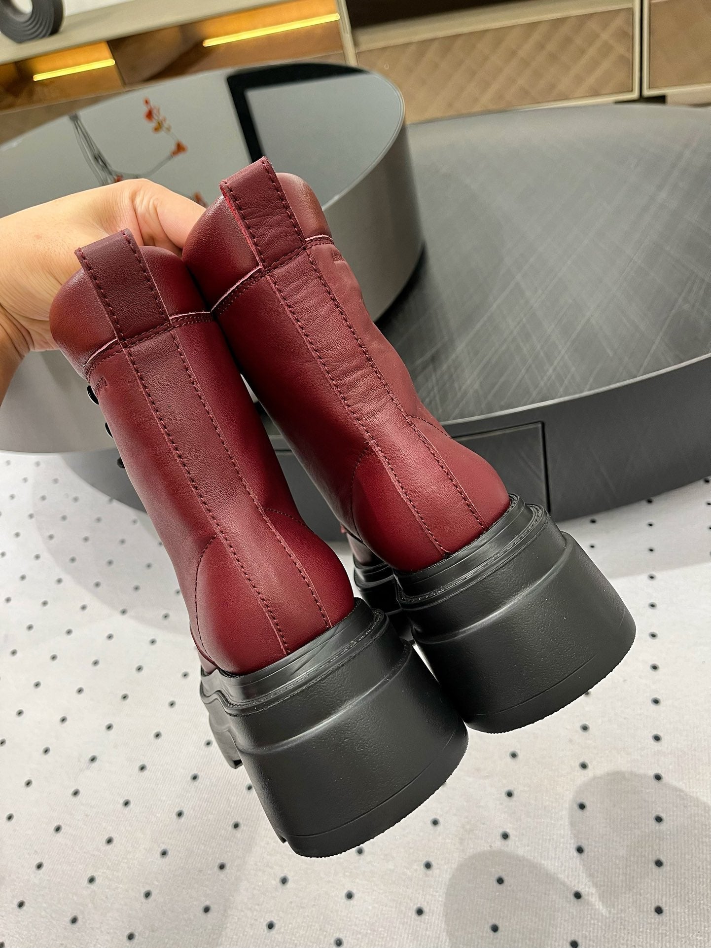 ANKLE BOOTS 55 MM IN BURGUNDY RED CALFSKIN