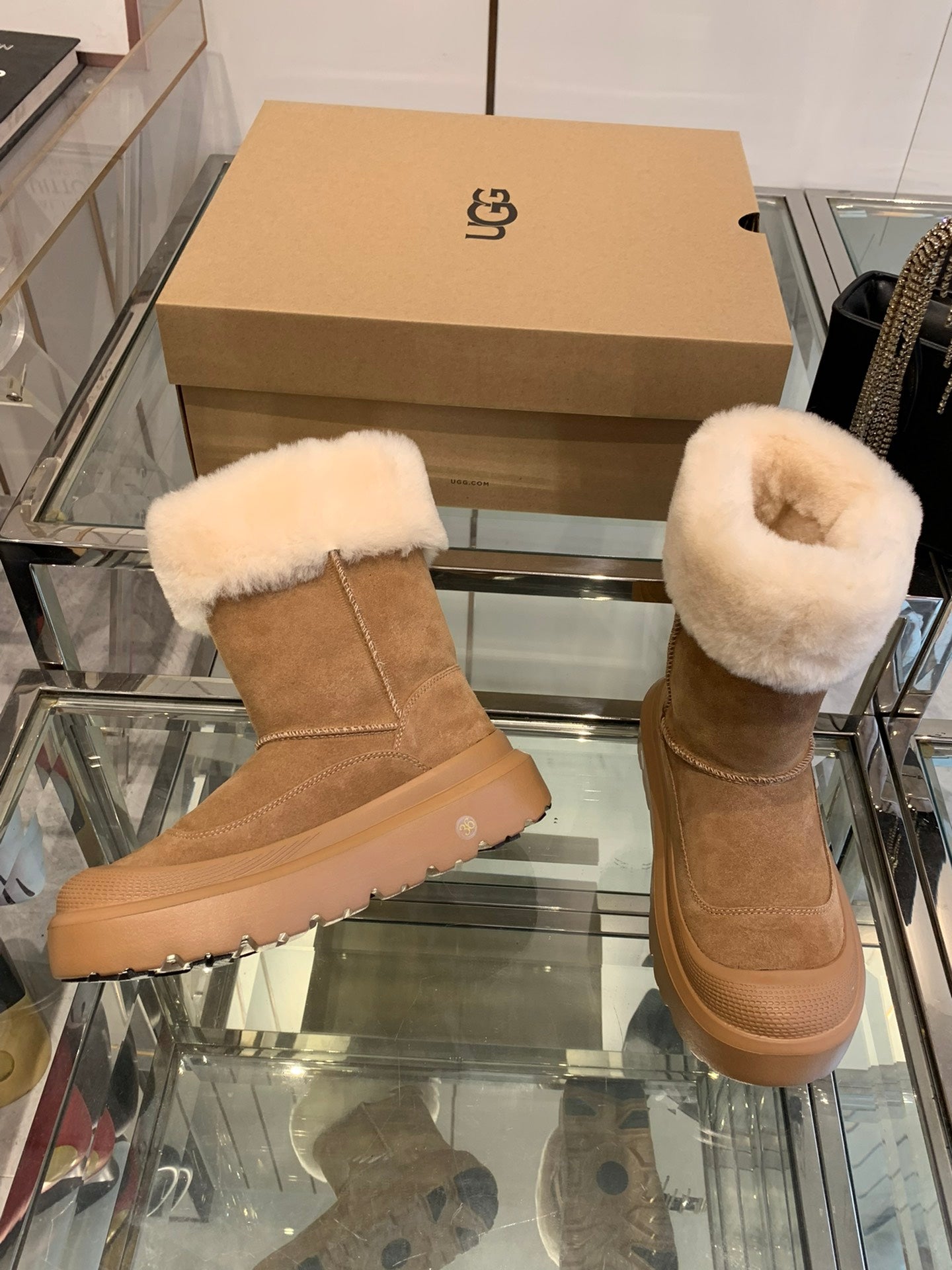 ANKLE BOOTS IN CIDER BROWN SUEDE AND CALFSKIN
