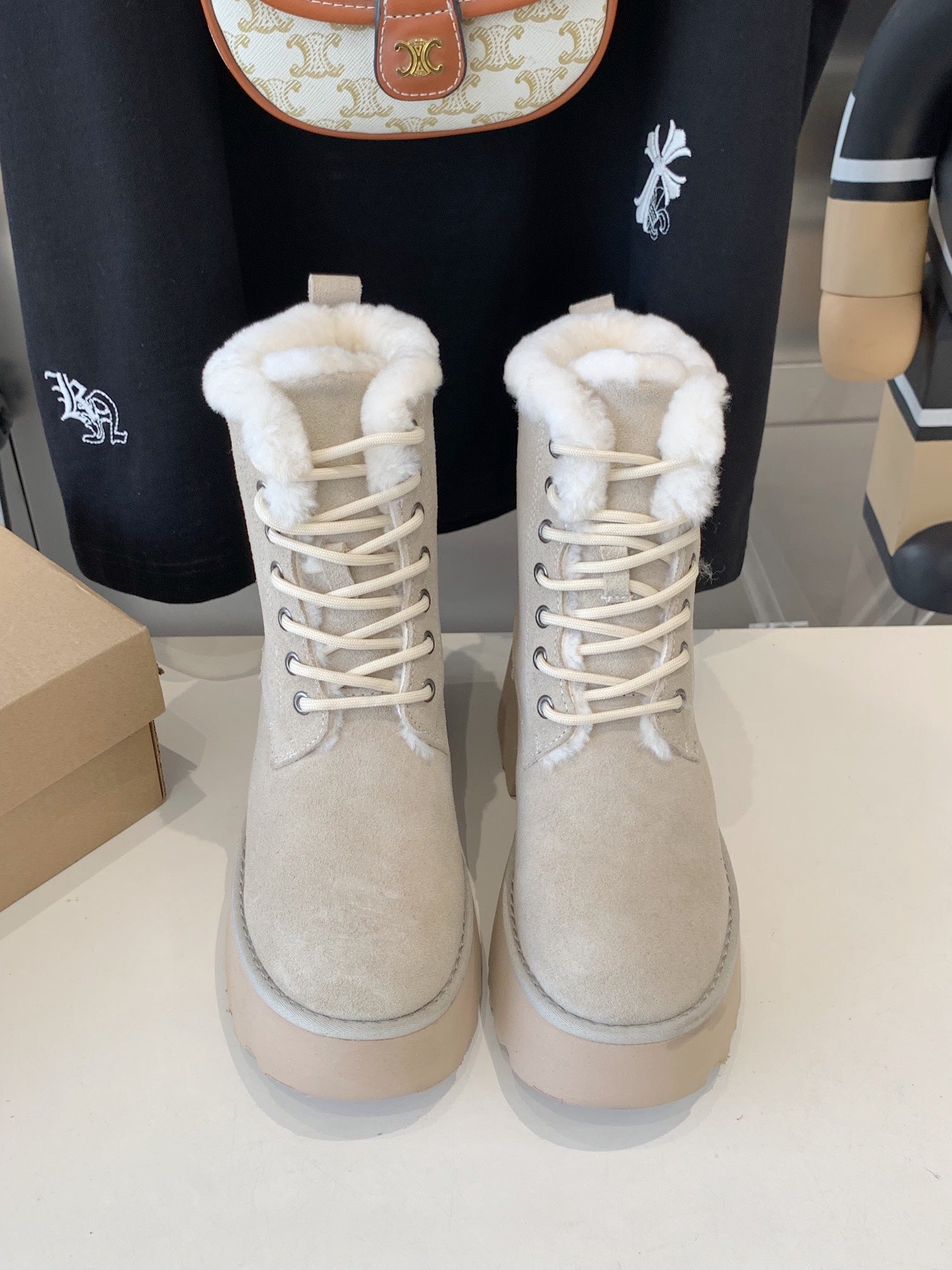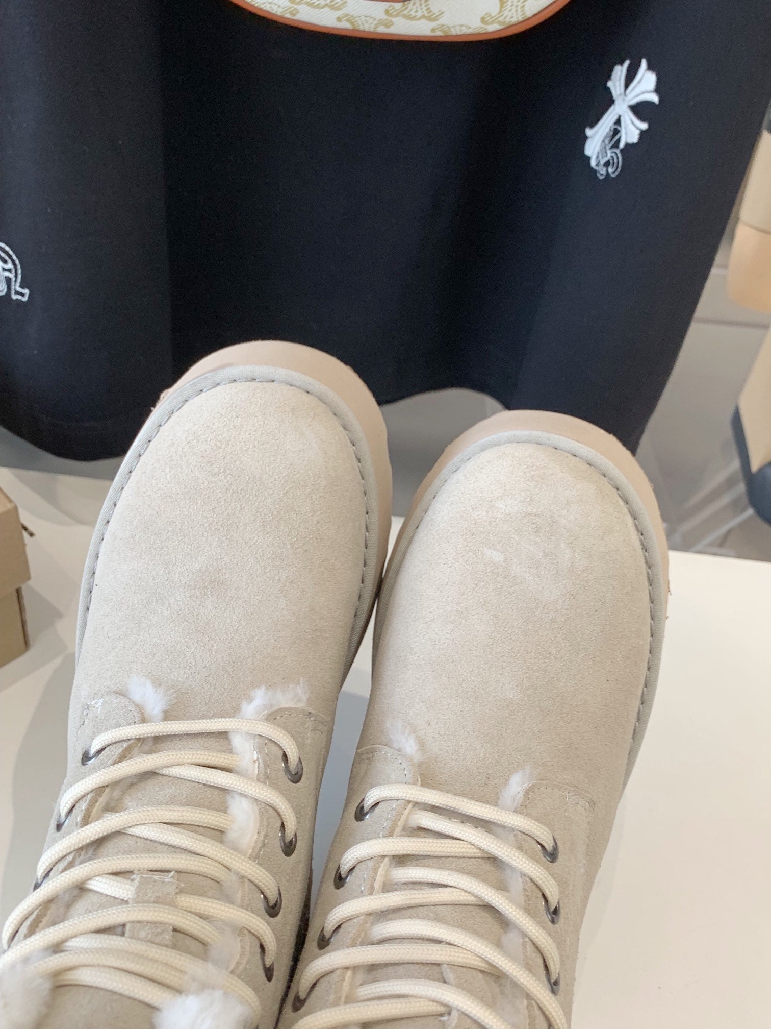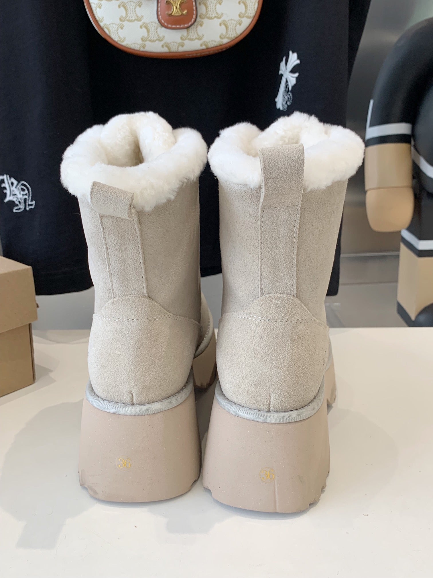 ANKLE BOOTS IN PASTEL GRAY SUEDE AND LAMB WOOL