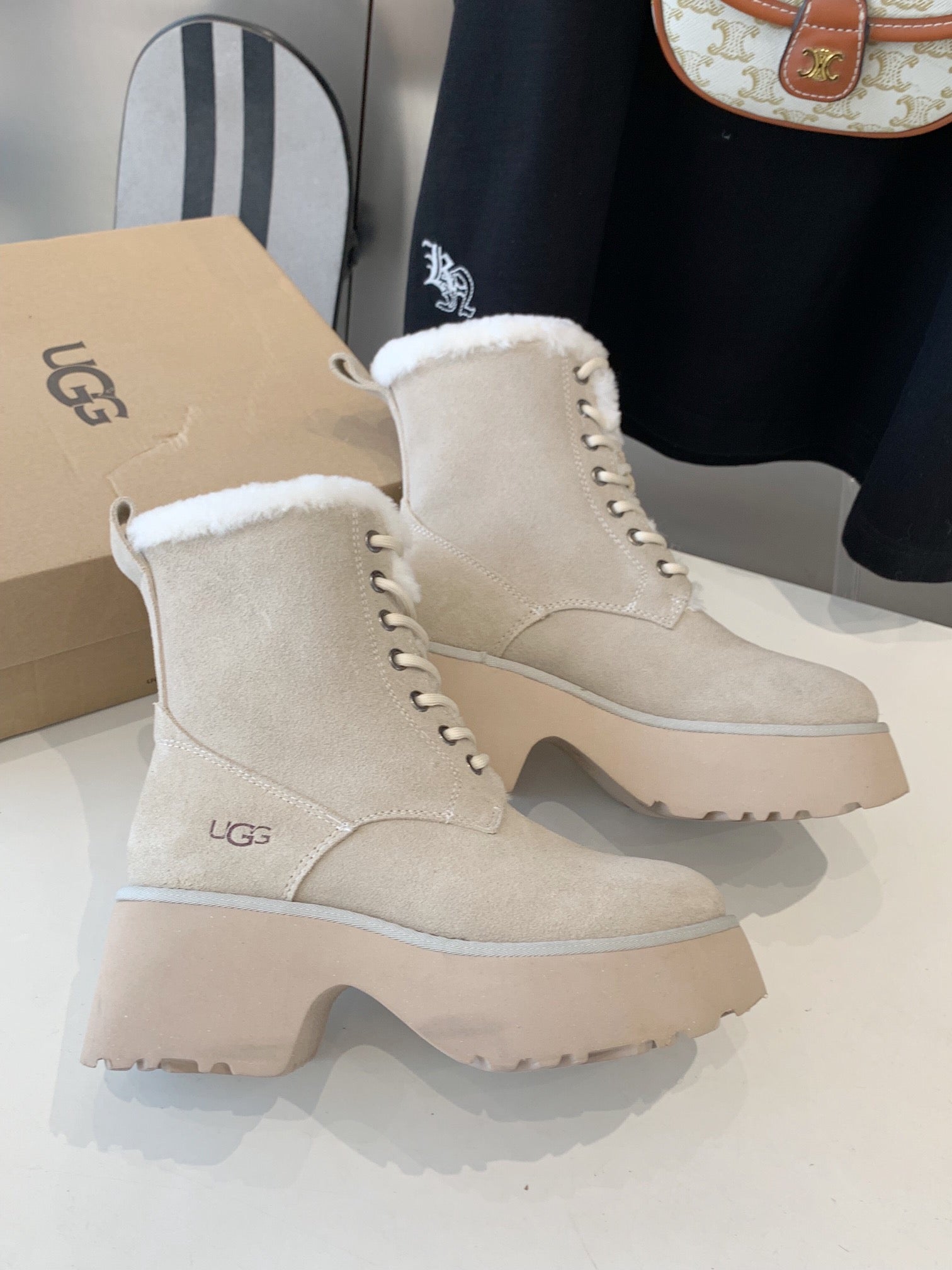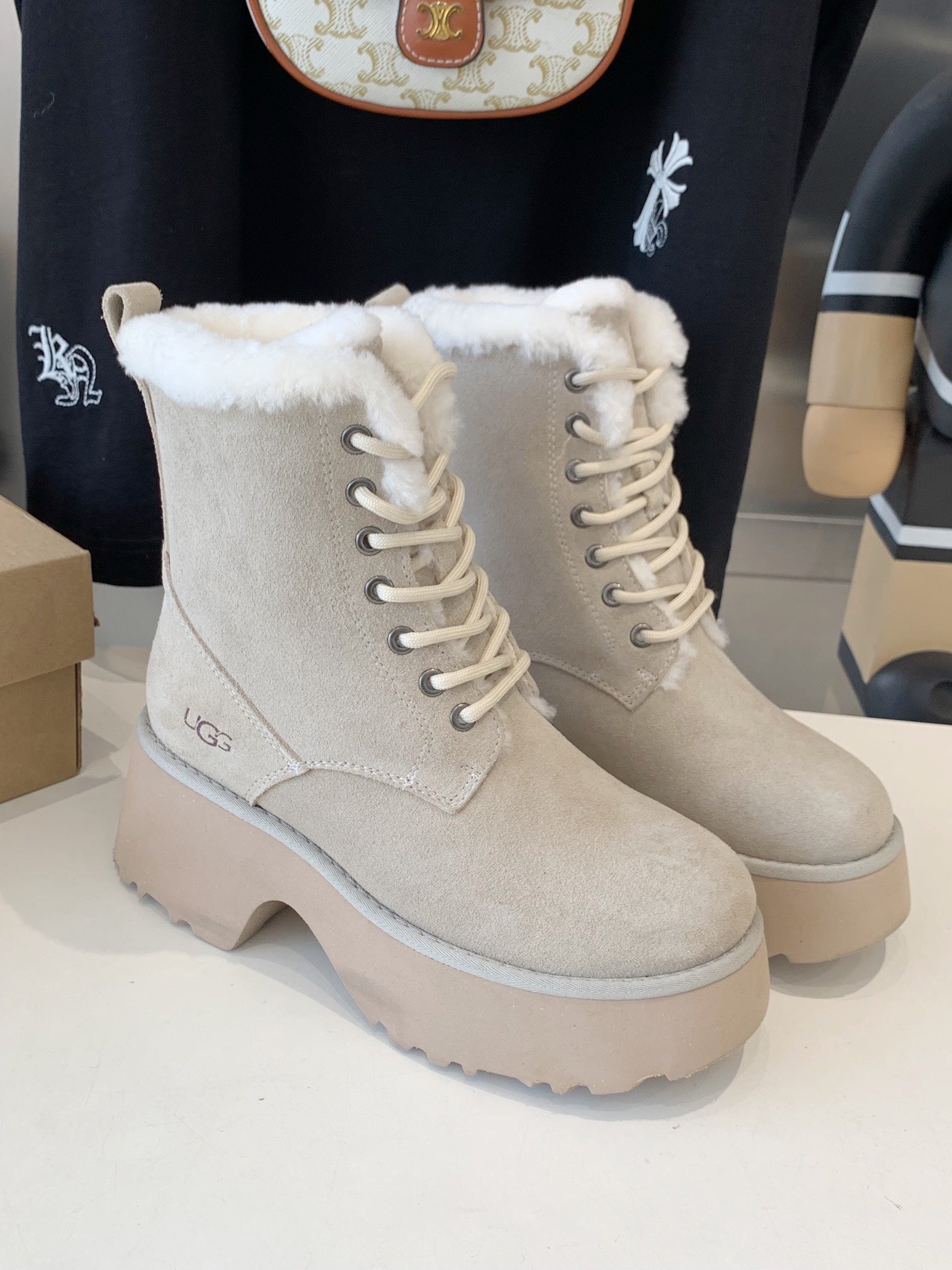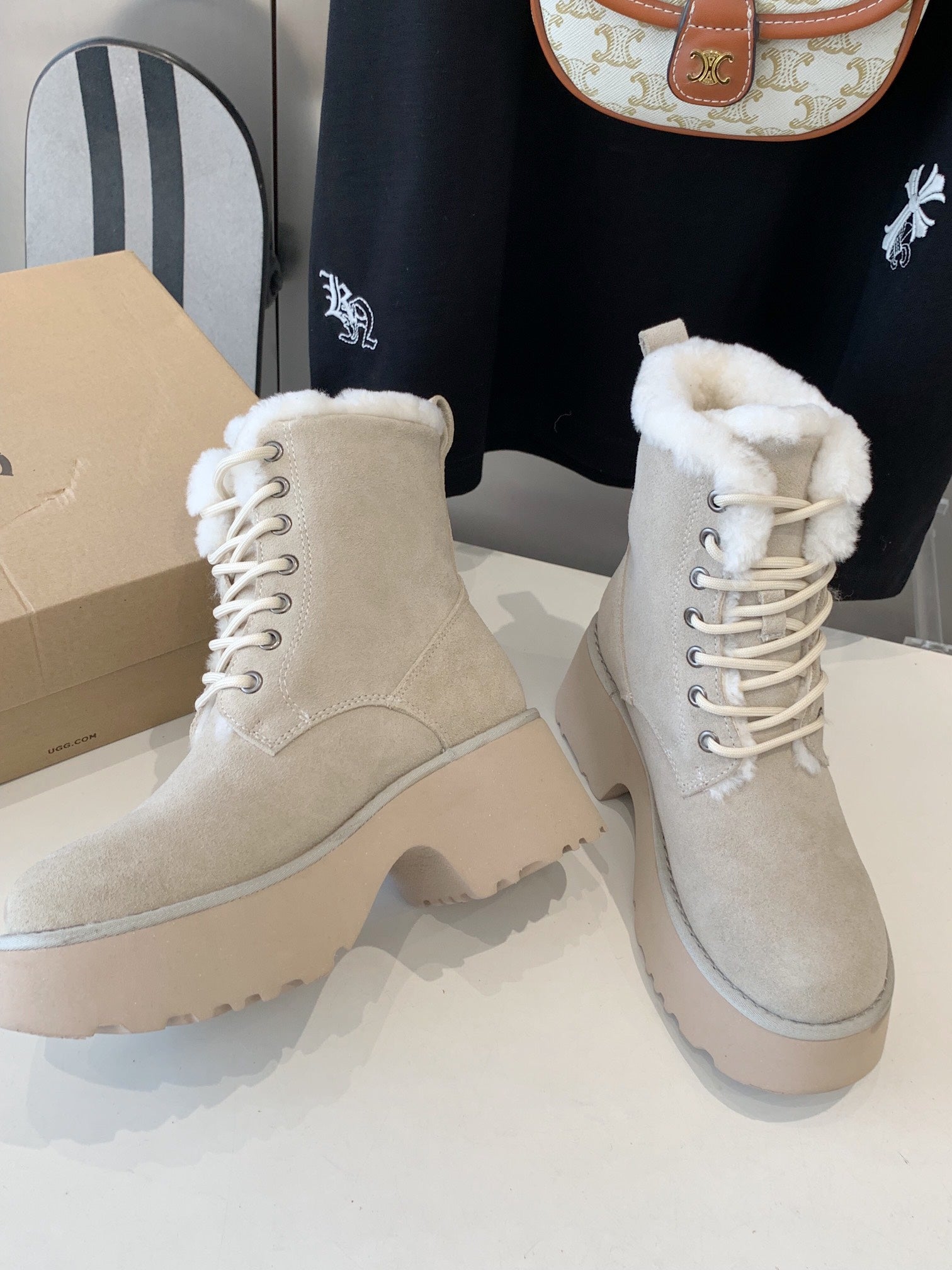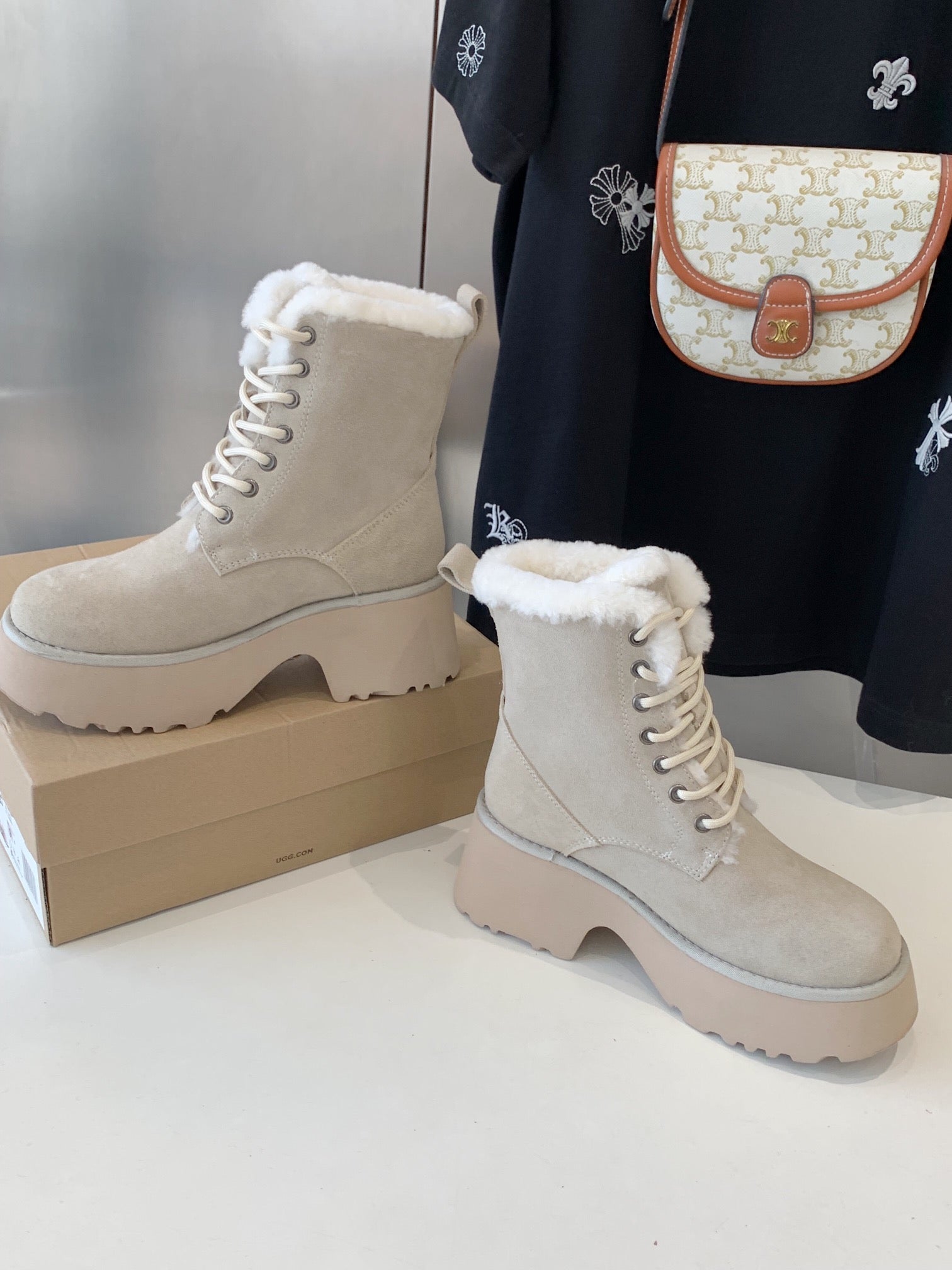 ANKLE BOOTS IN PASTEL GRAY SUEDE AND LAMB WOOL