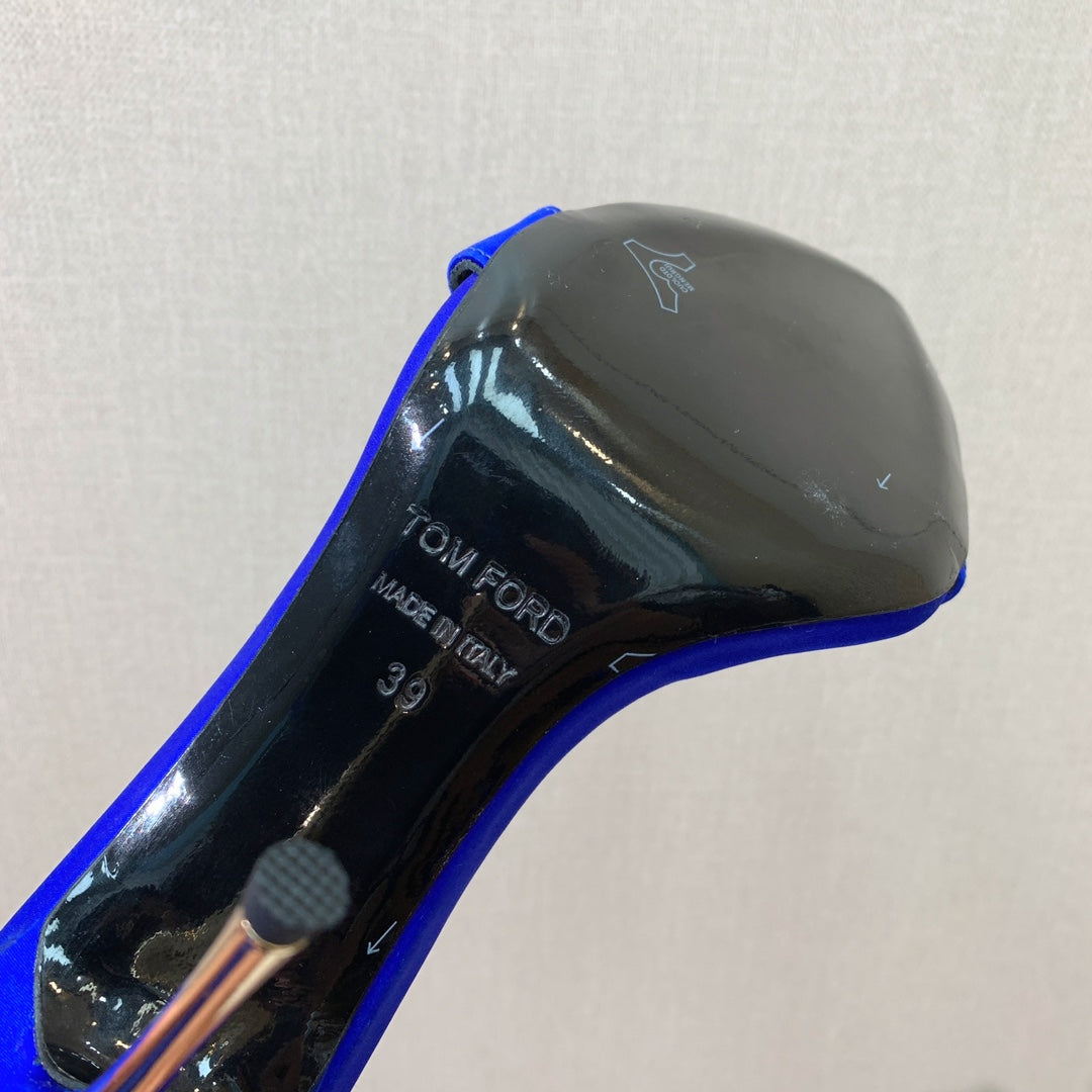 ANKLE SANDAL 10 CM IN COBALT BLUE SILK AND SHEEPSKIN