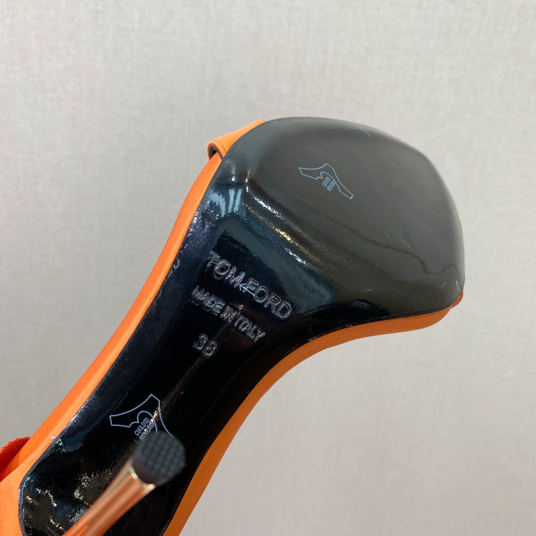 ANKLE SANDAL 10 CM IN SPANISH ORANGE SILK AND SHEEPSKIN