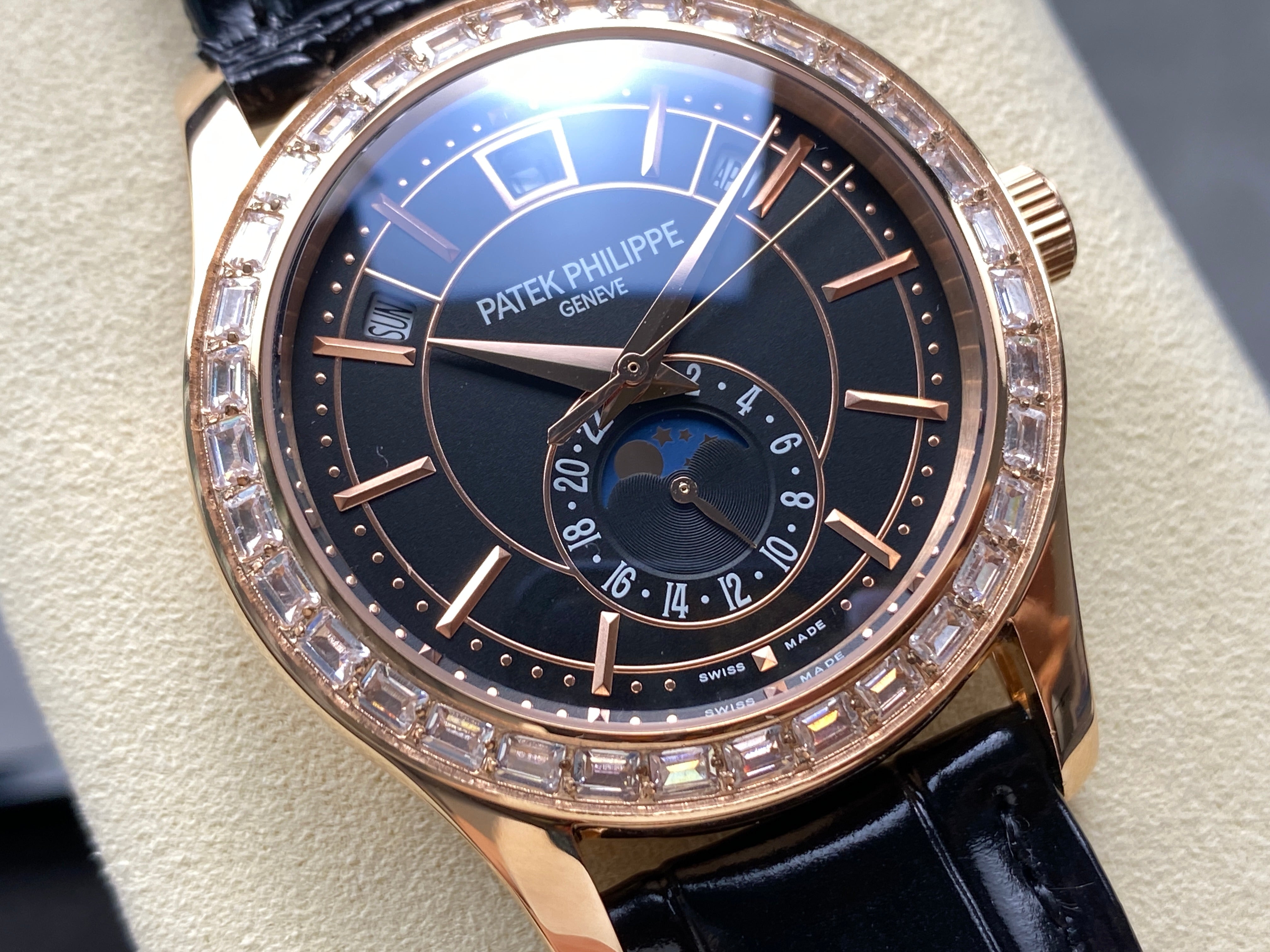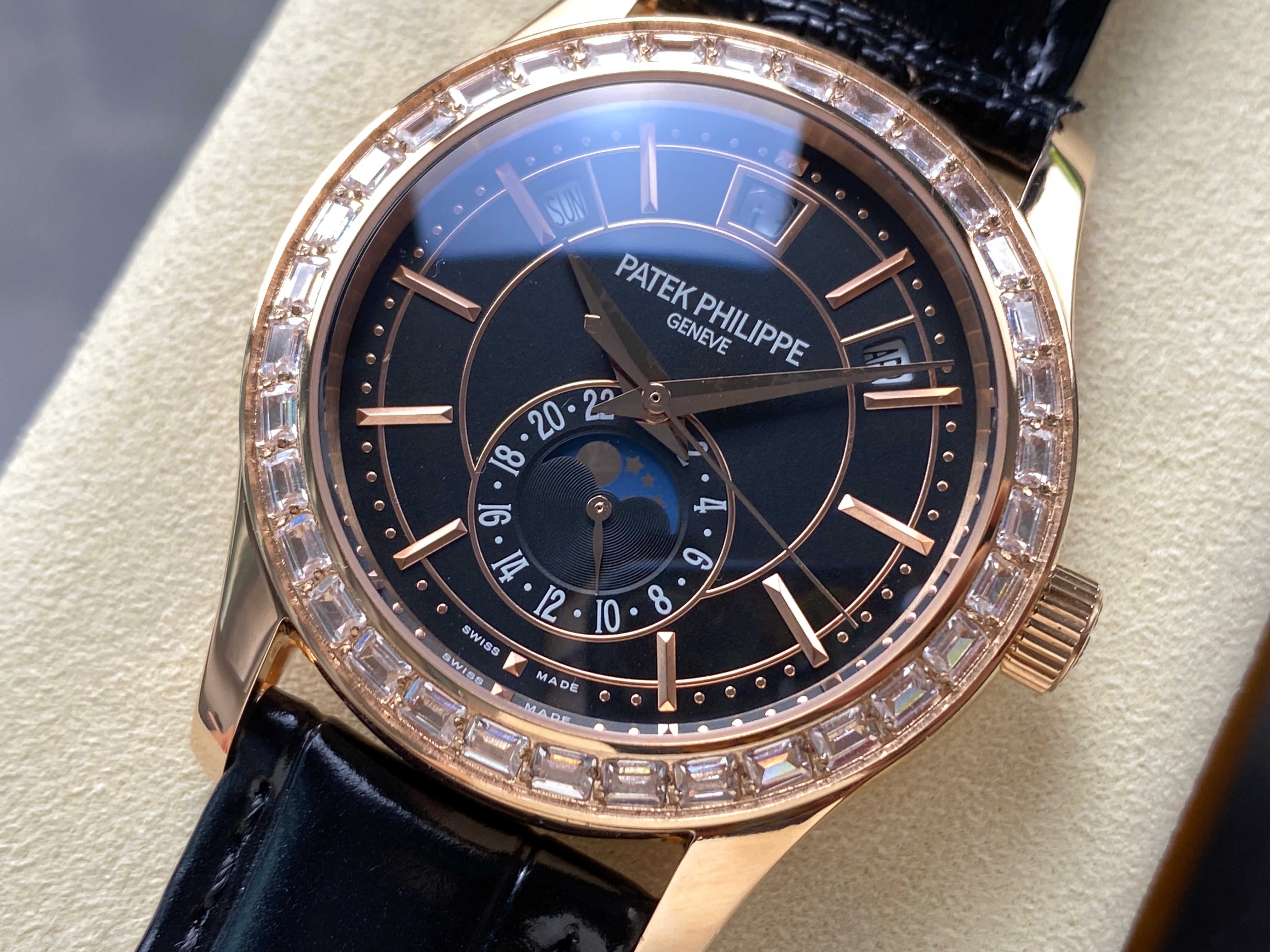 ANNUAL CALENDAR ROSE GOLD ATTACHED DIAMOND BEZEL BLACK DIAL