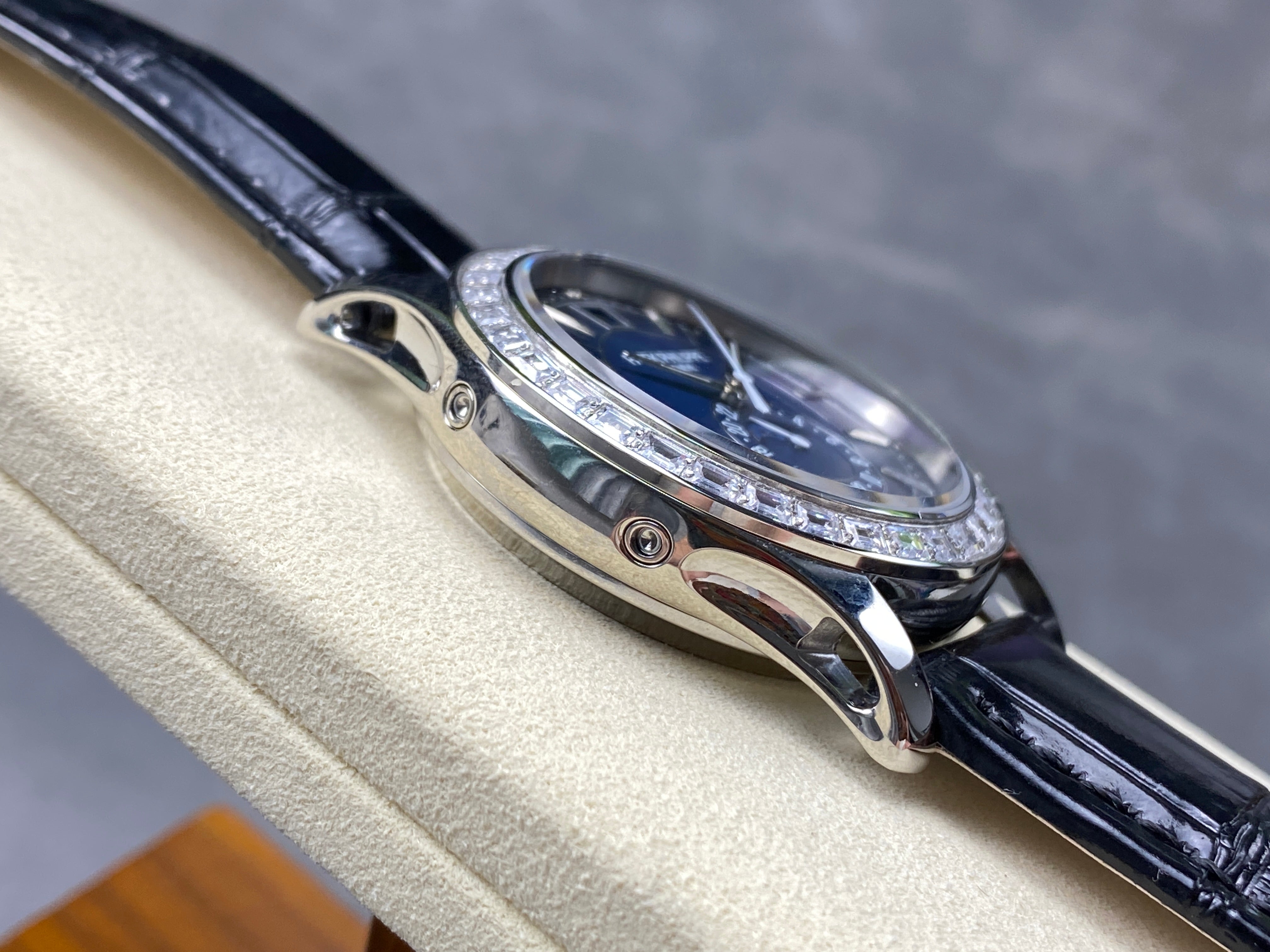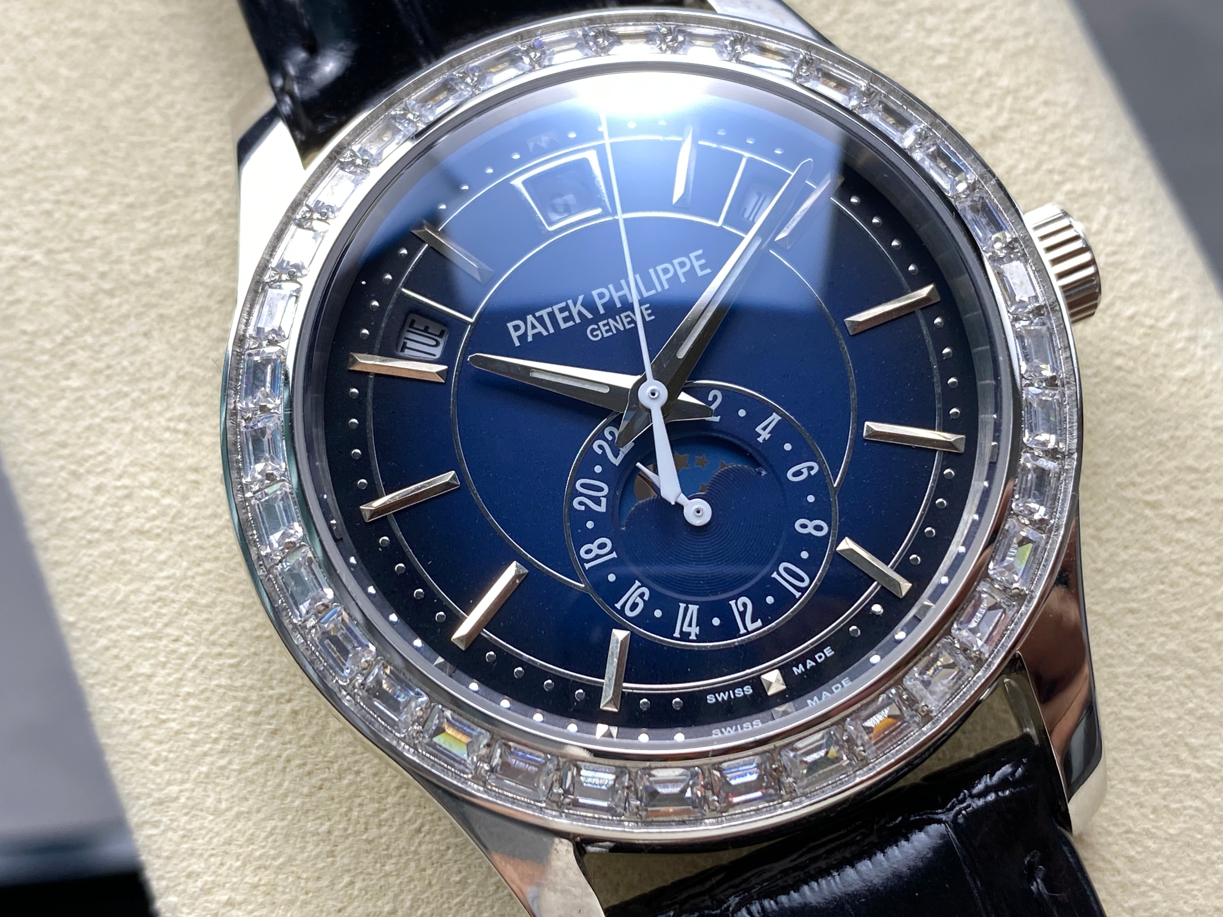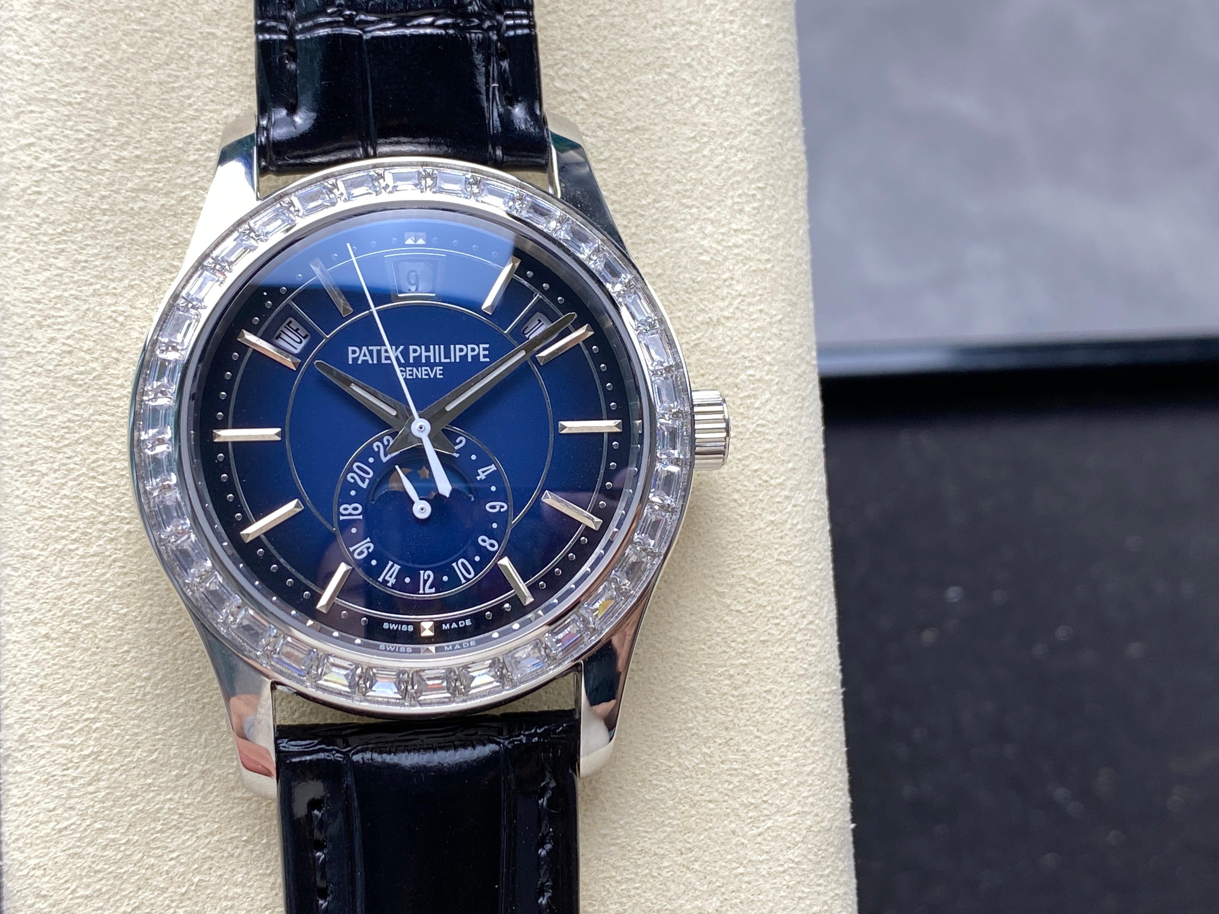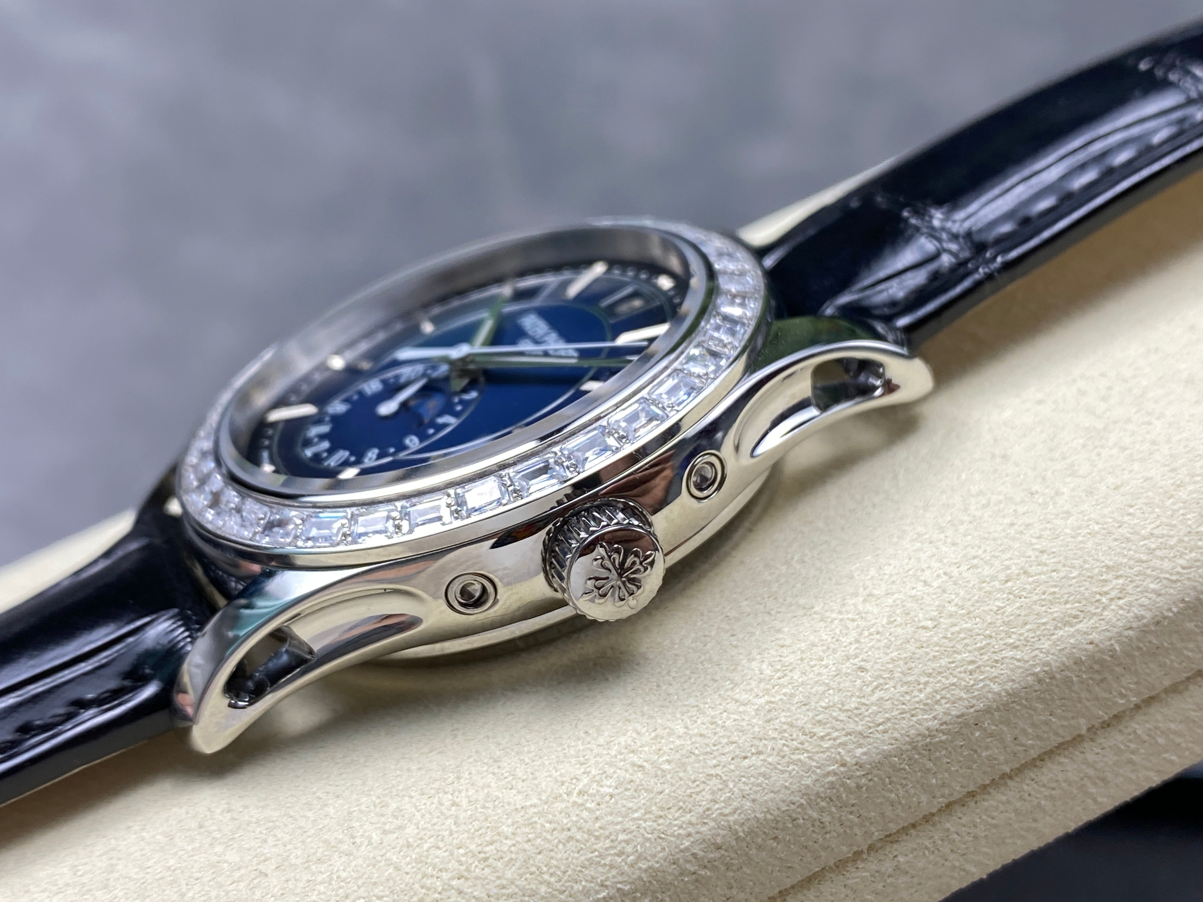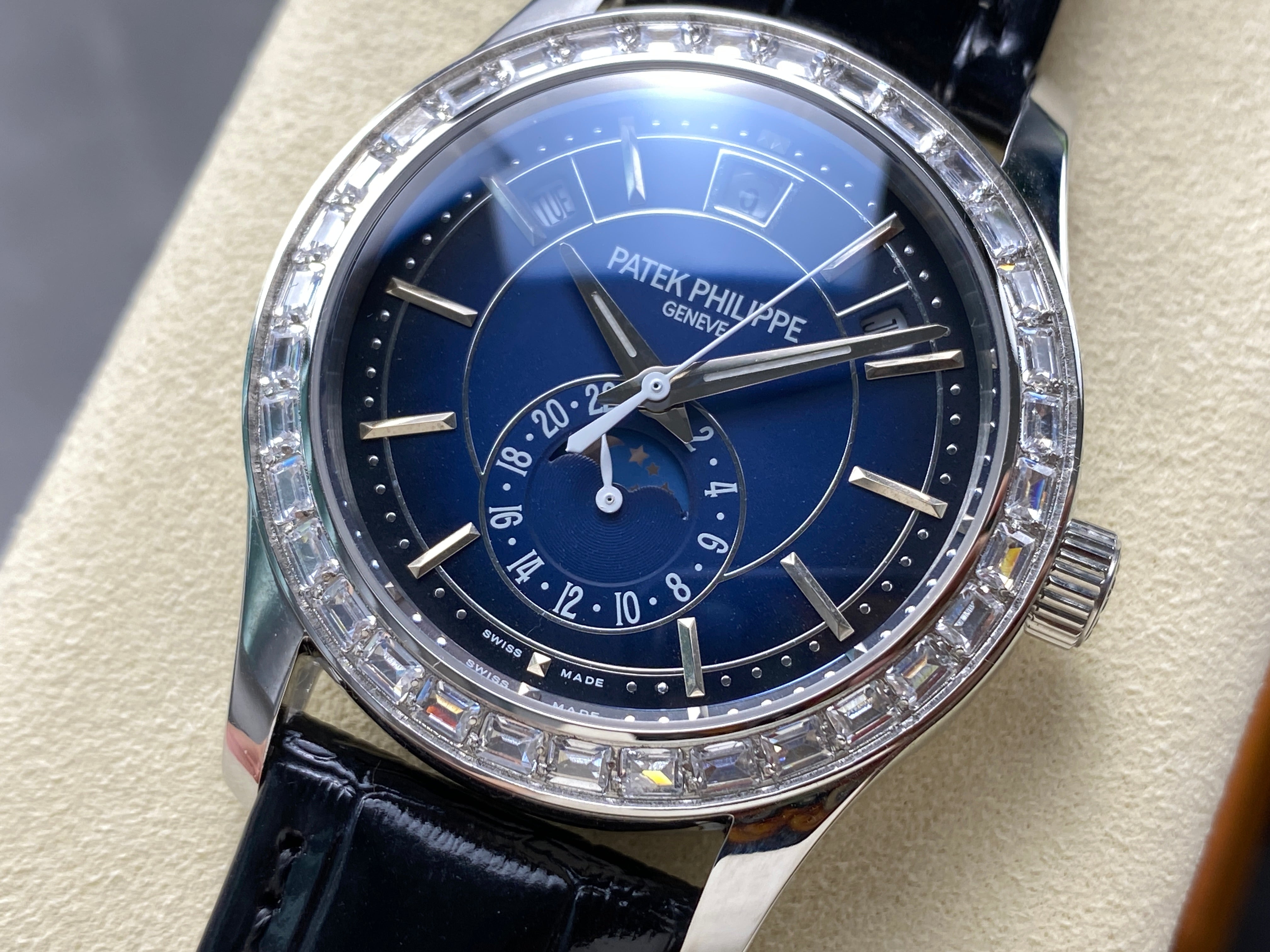 ANNUAL CALENDAR STEEL ATTACHED DIAMOND BEZEL NAVY BLUE DIAL