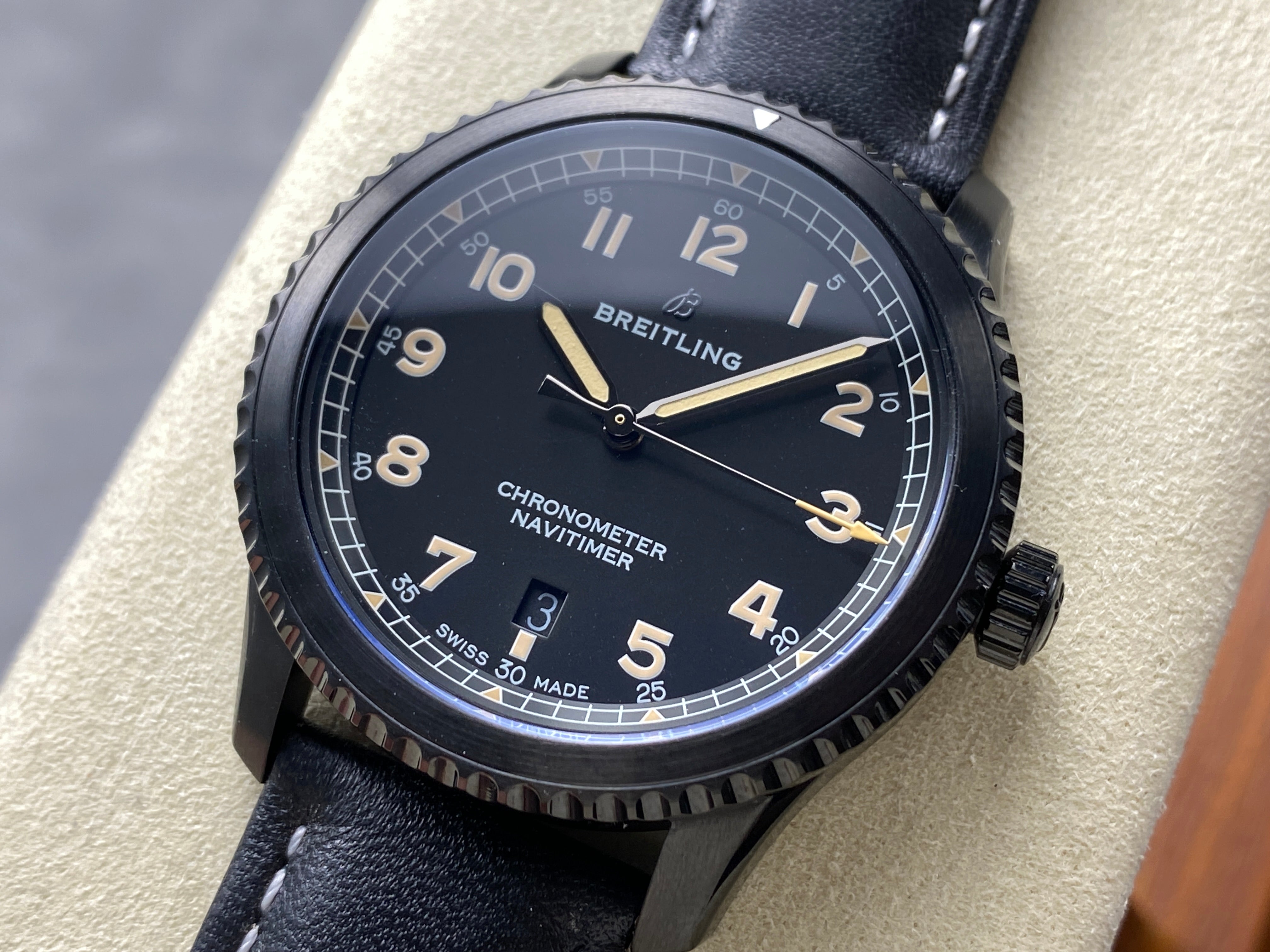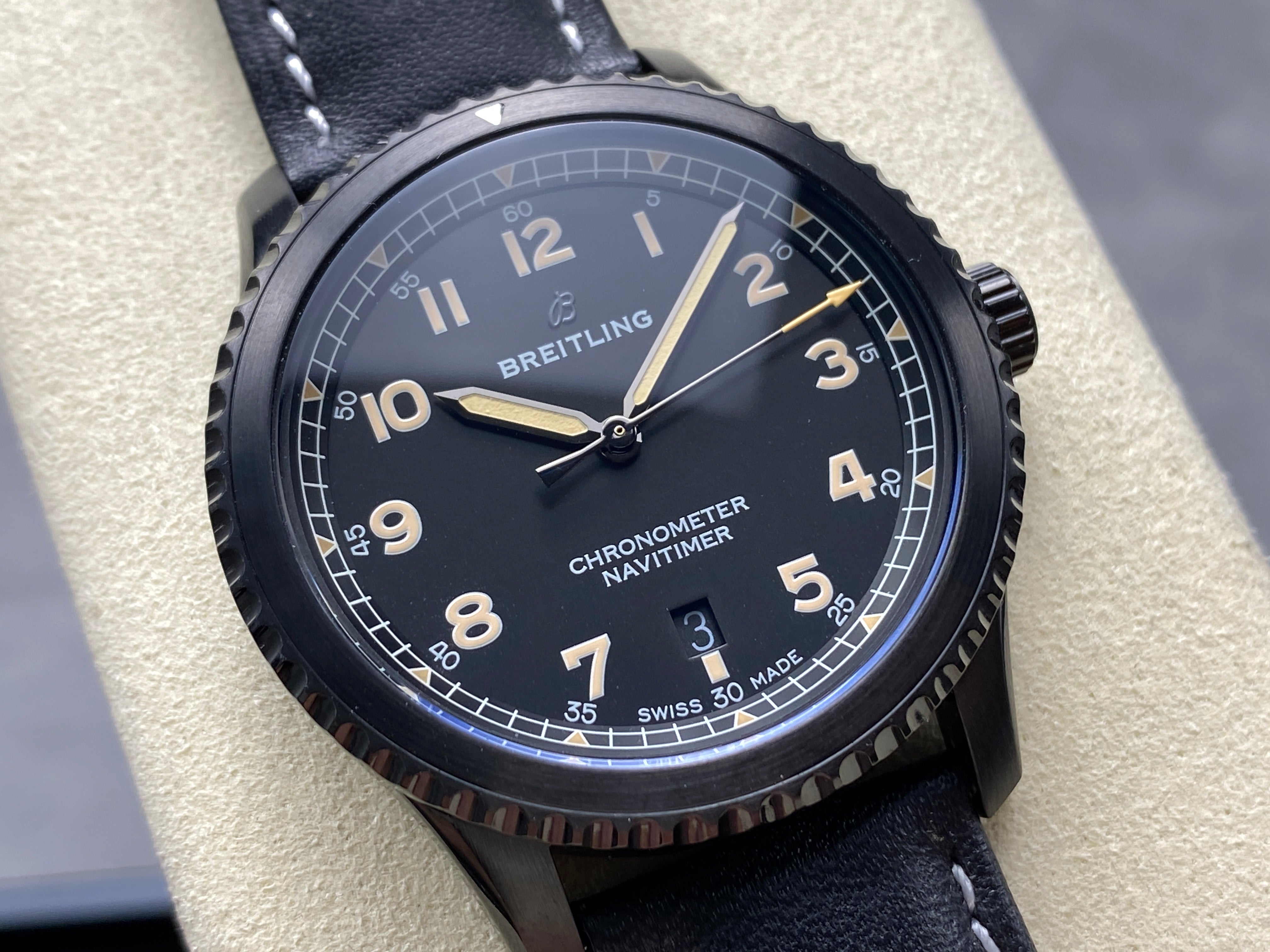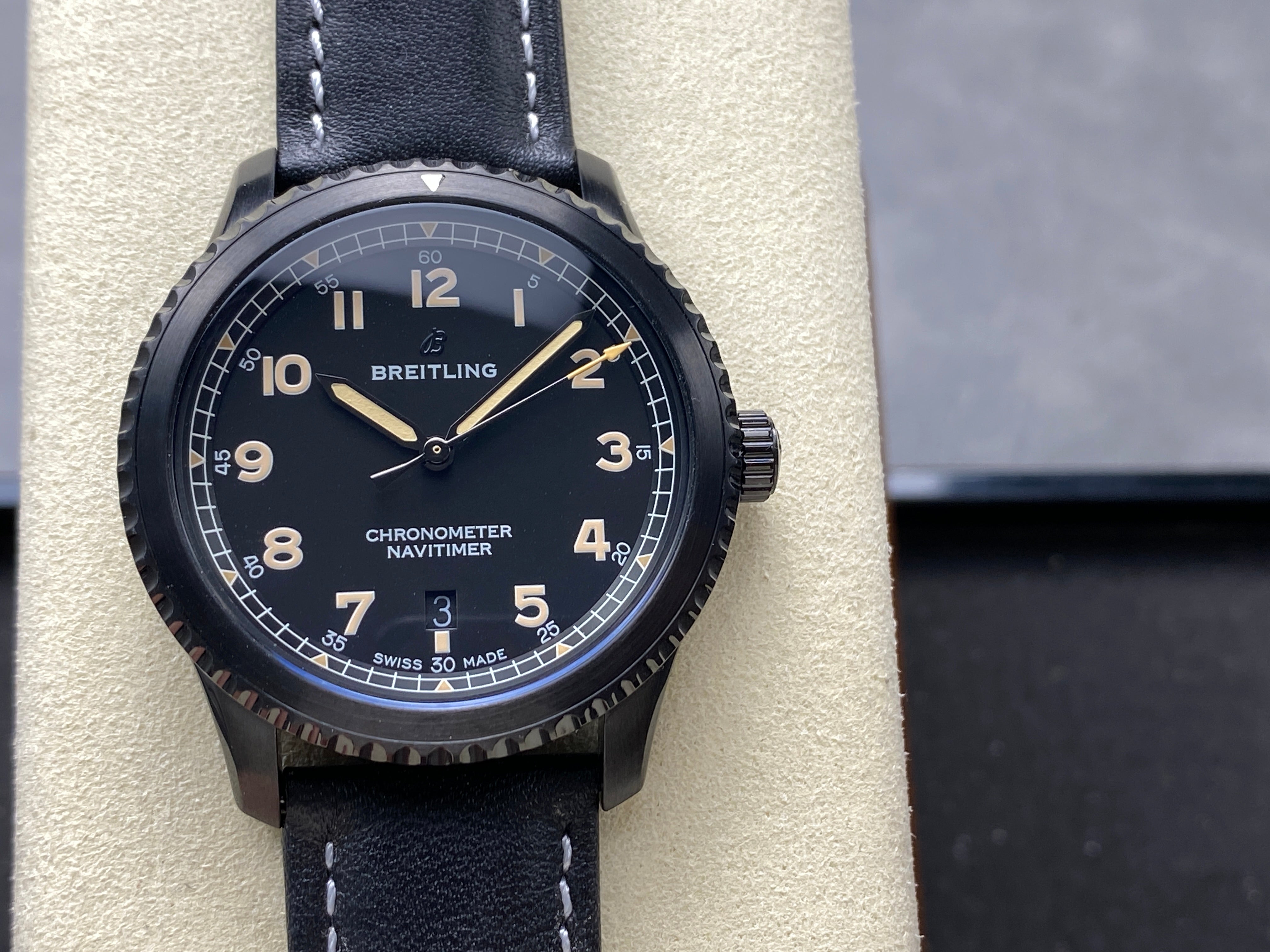 AVIATOR 8 AUTOMATIC STEEL CASE BLACK CALFSKIN STRAP