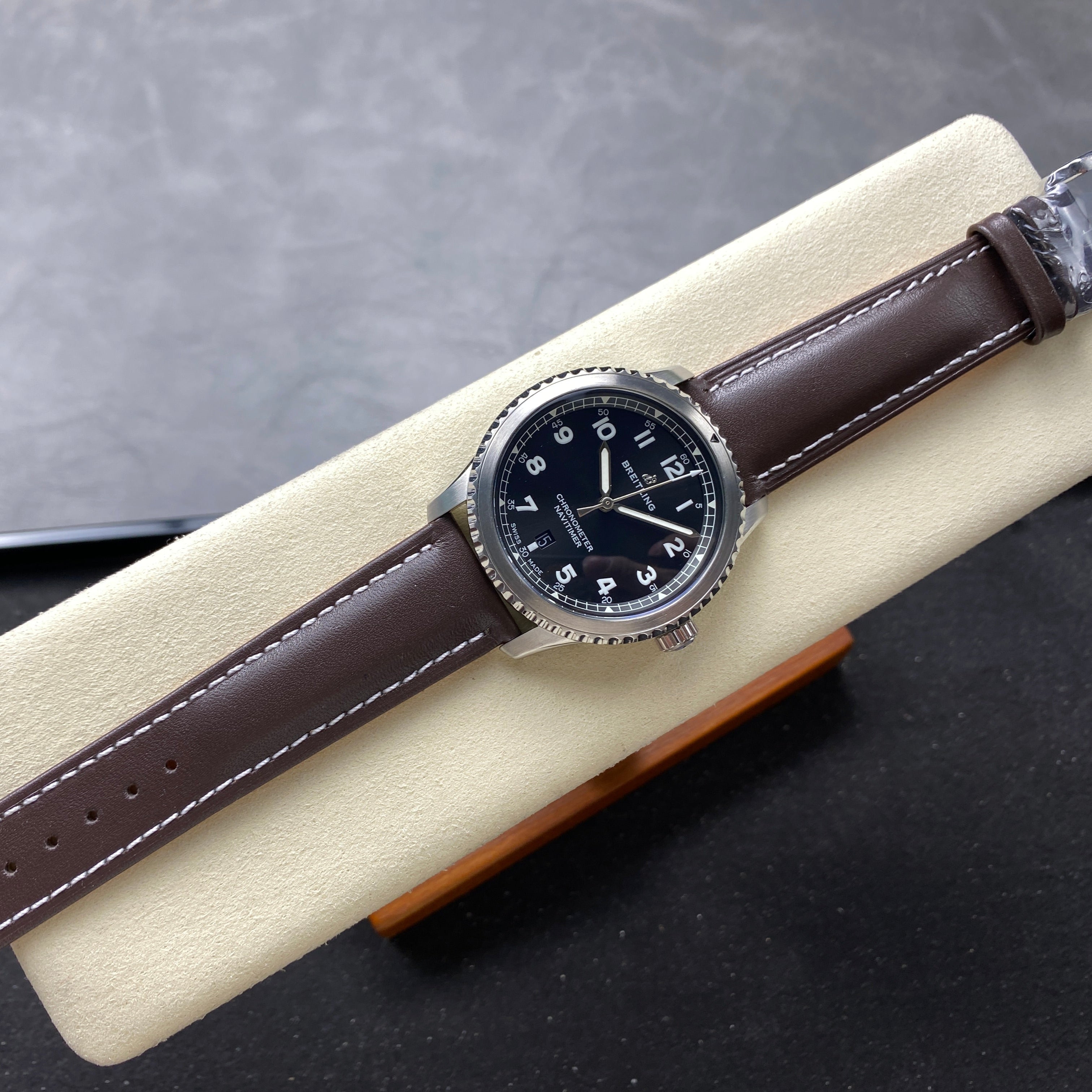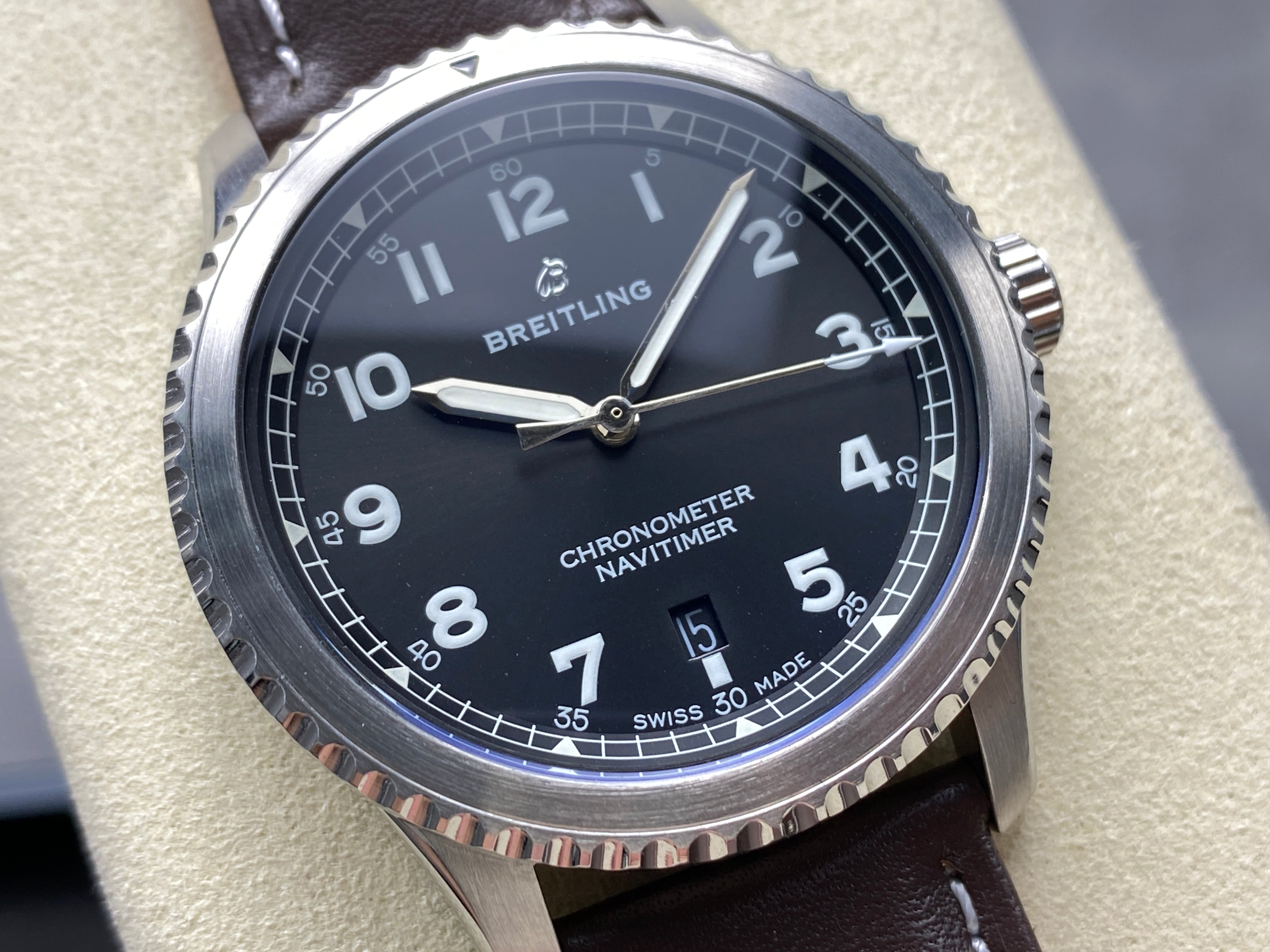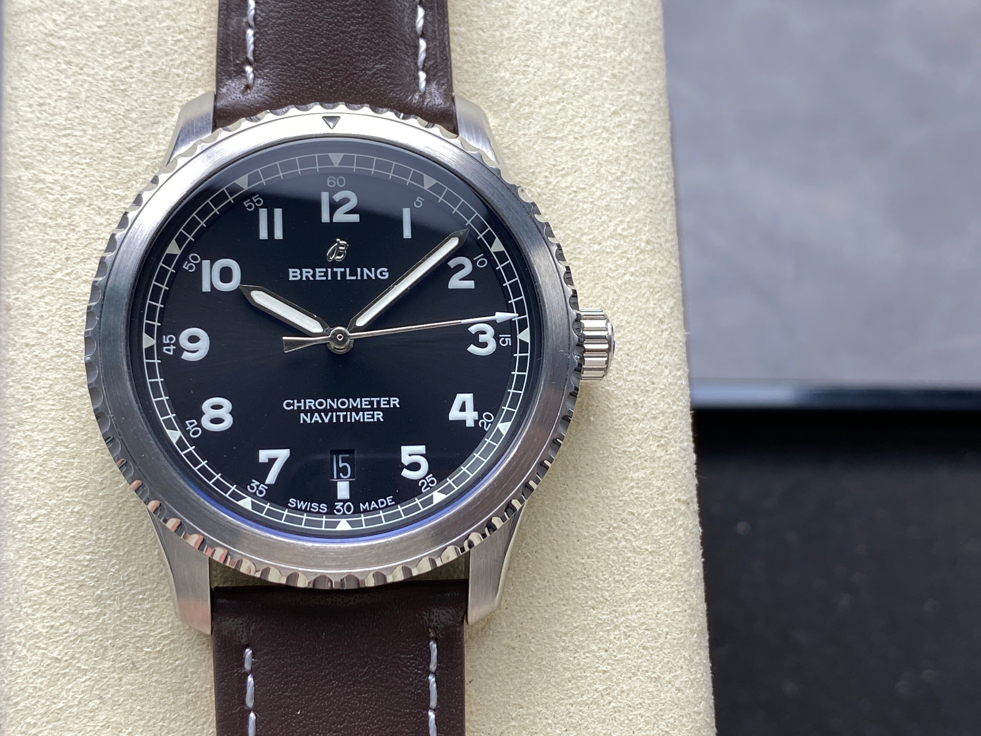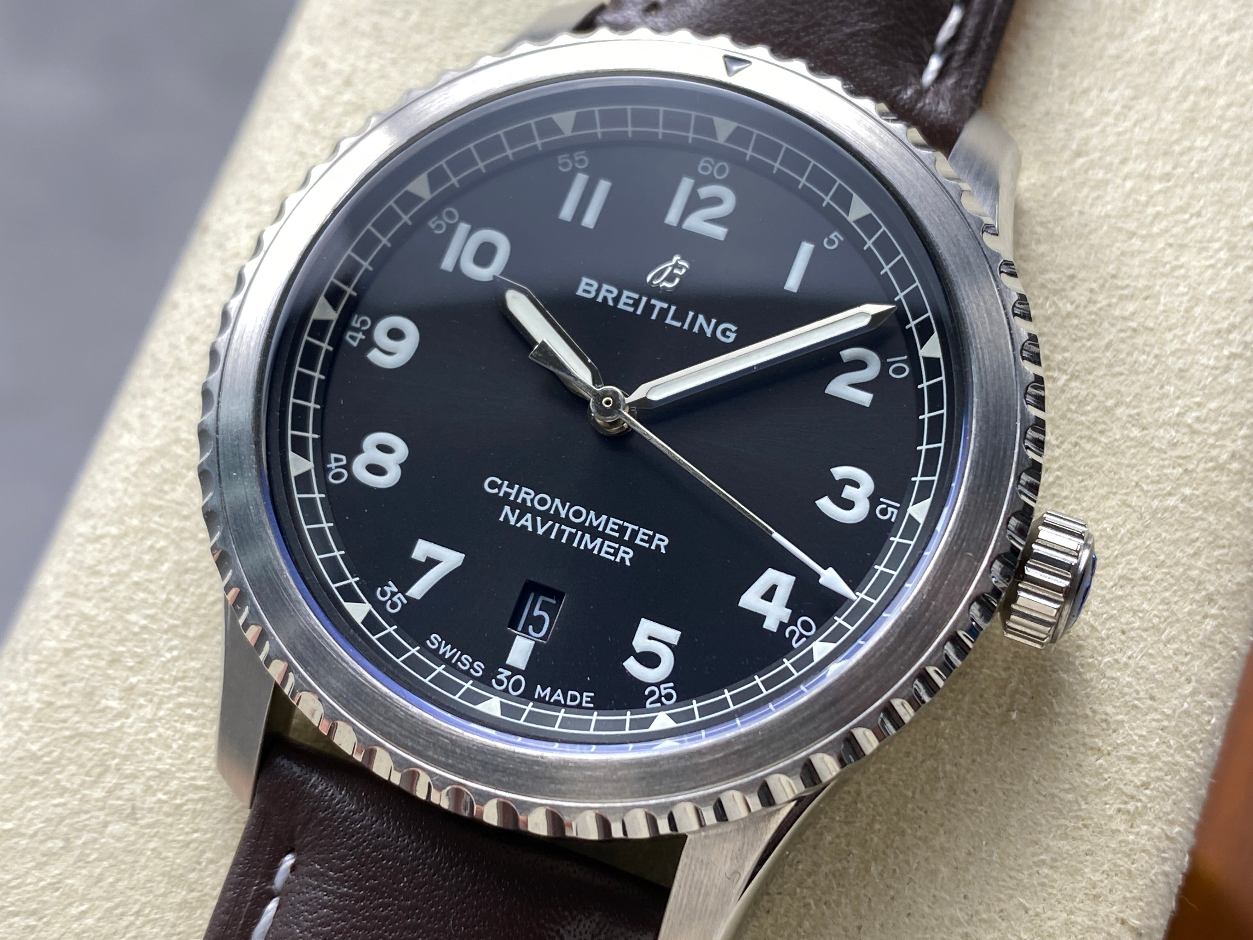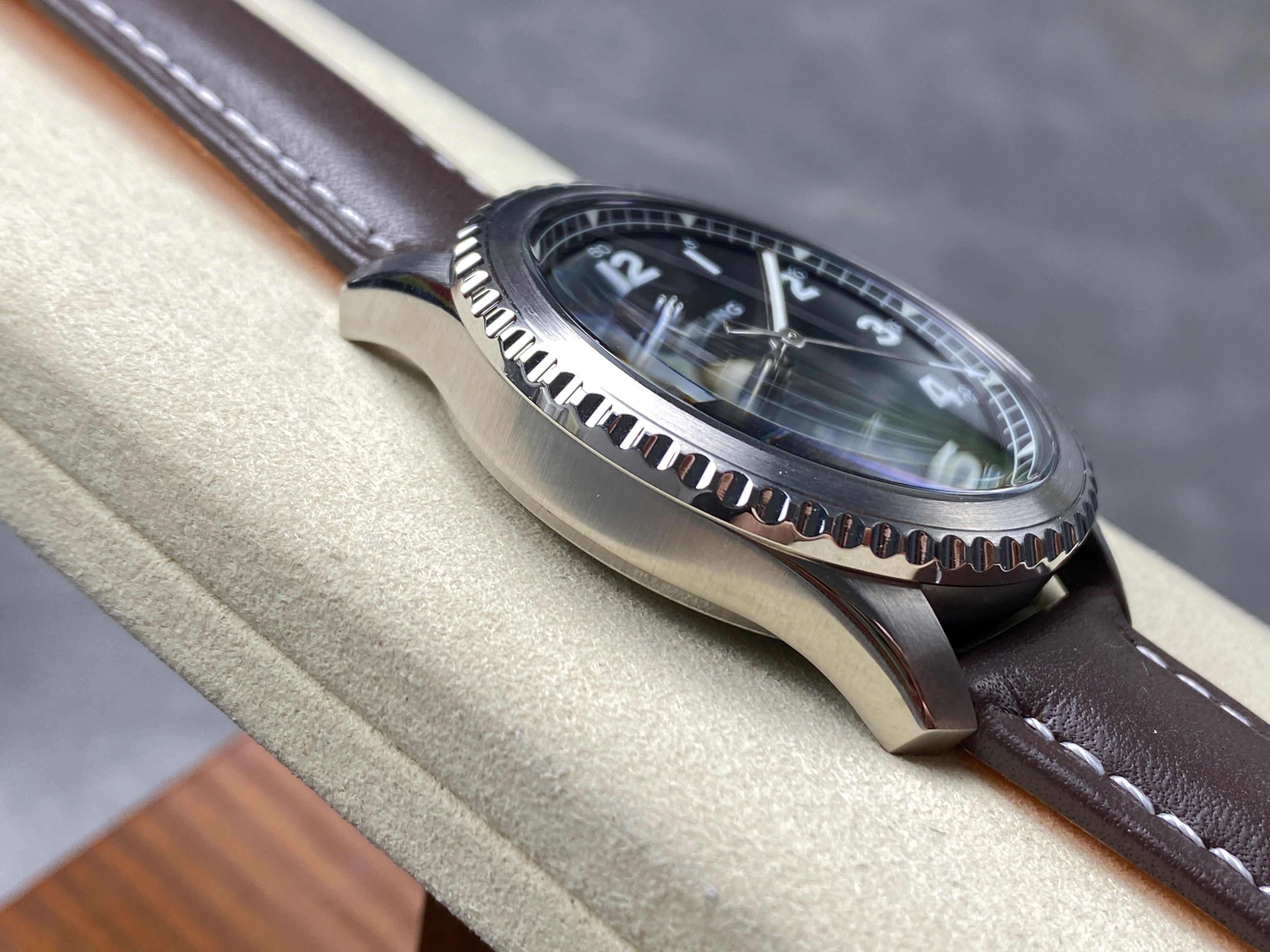 AVIATOR 8 AUTOMATIC STEEL CASE BLACK DIAL BROWN CALFSKIN STRAP