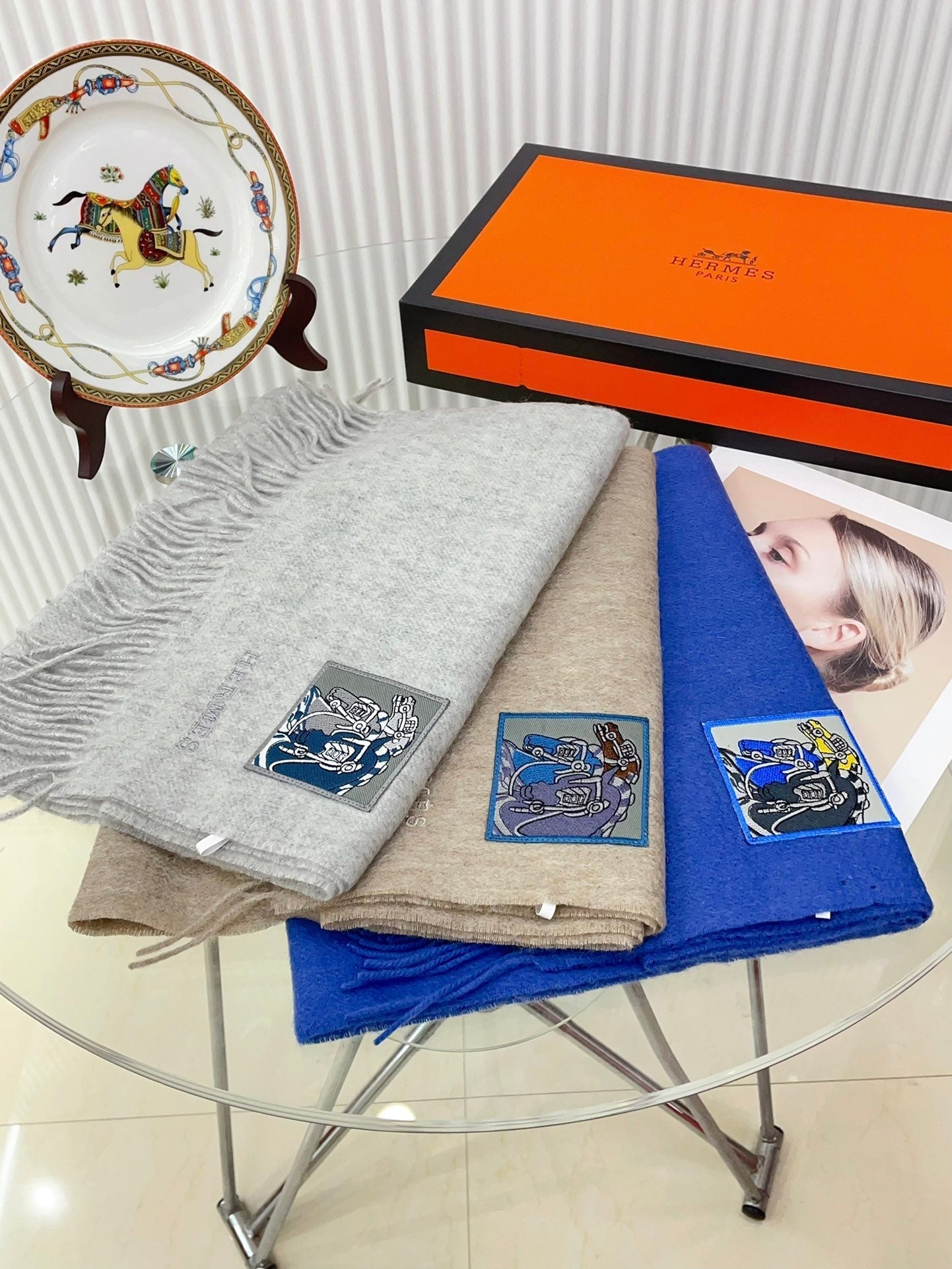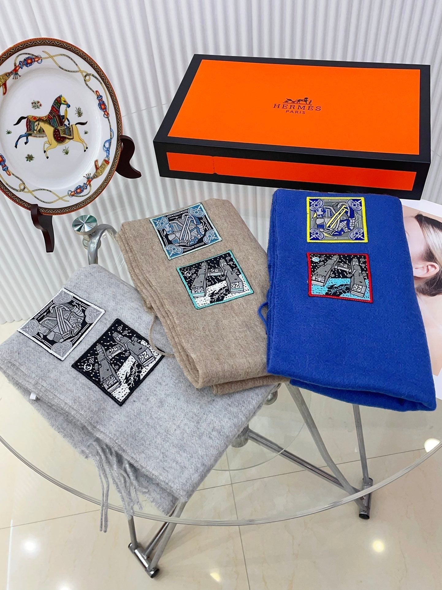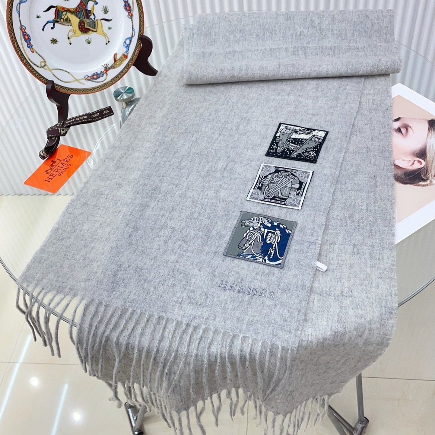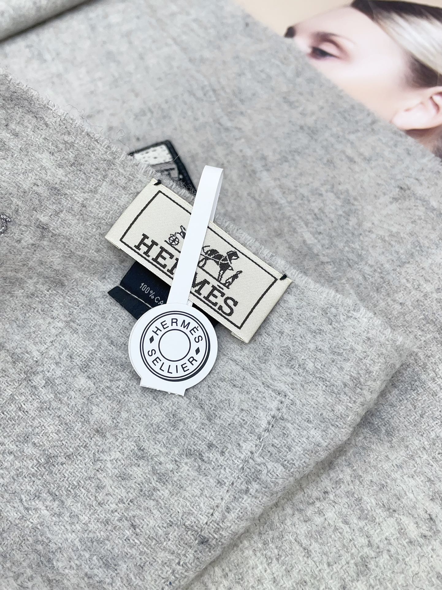BADGES SOIE MUFFLER 180 CM SCRAF IN CLOUD GREY CASHMERE