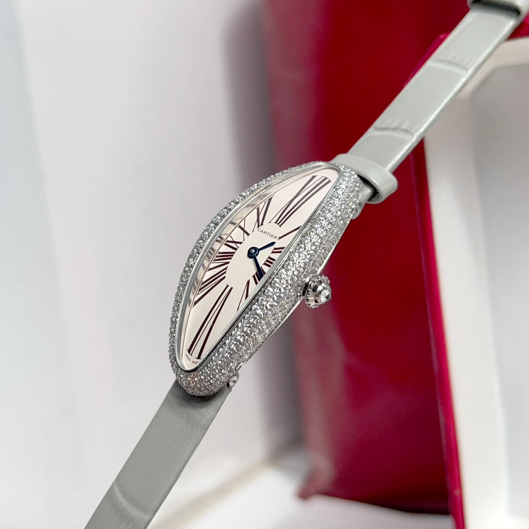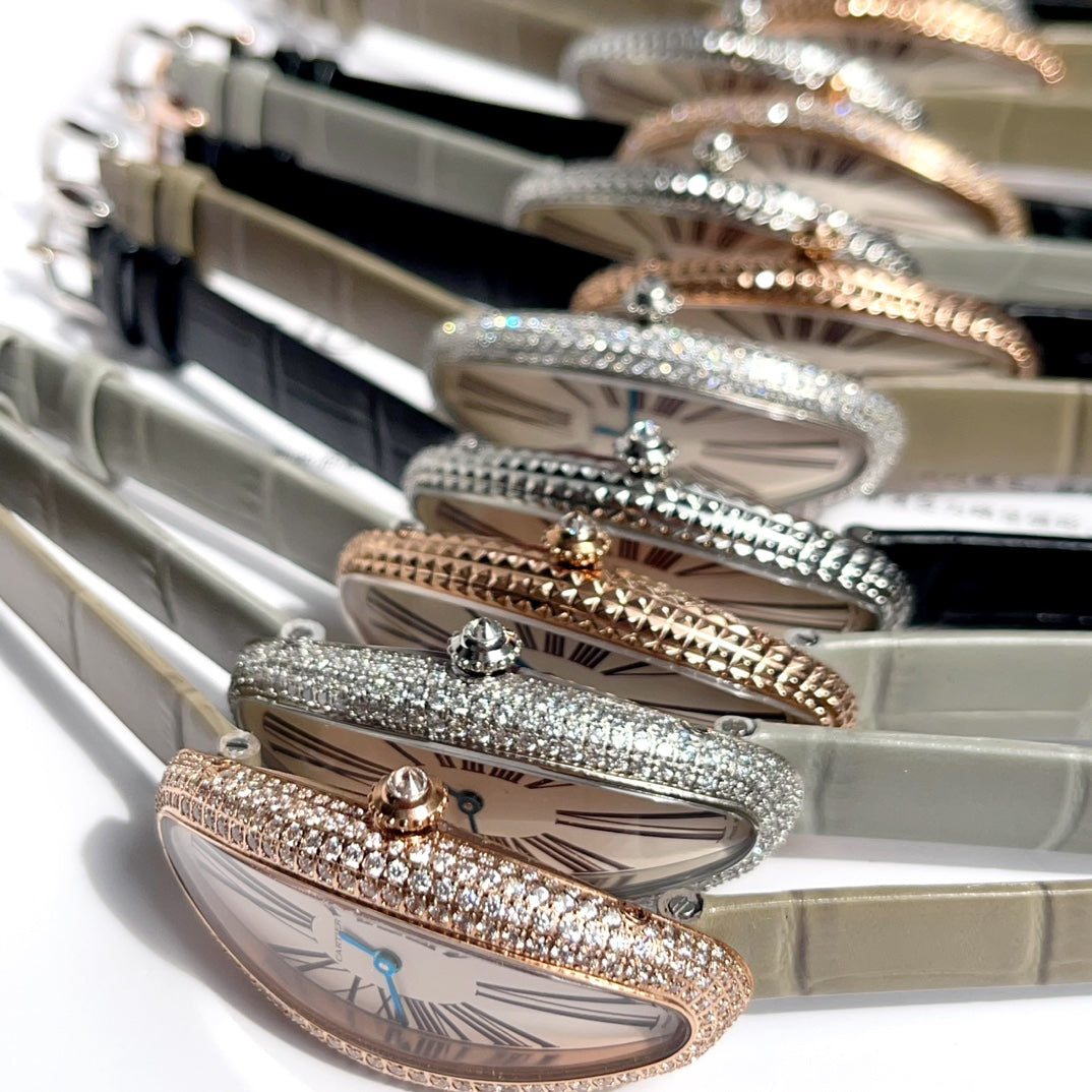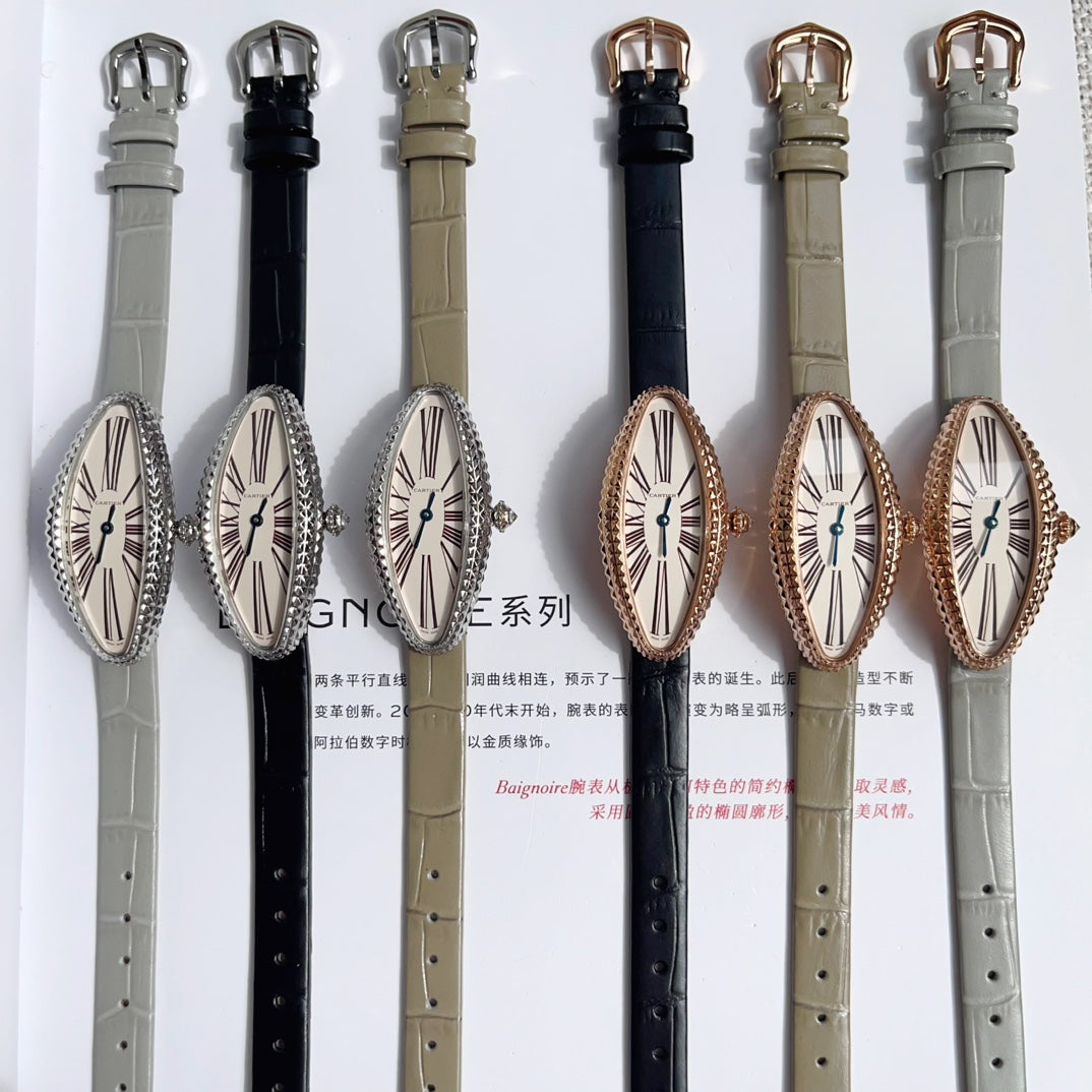 BAIGNOIRE ALLONGÉE WATCH ROSE GOLD CASE WITH PASTEL GRAY LEATHER STRAP