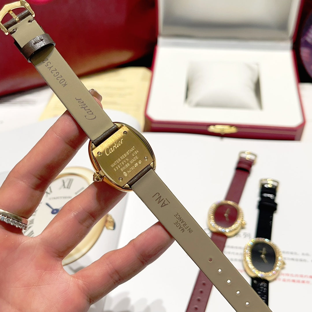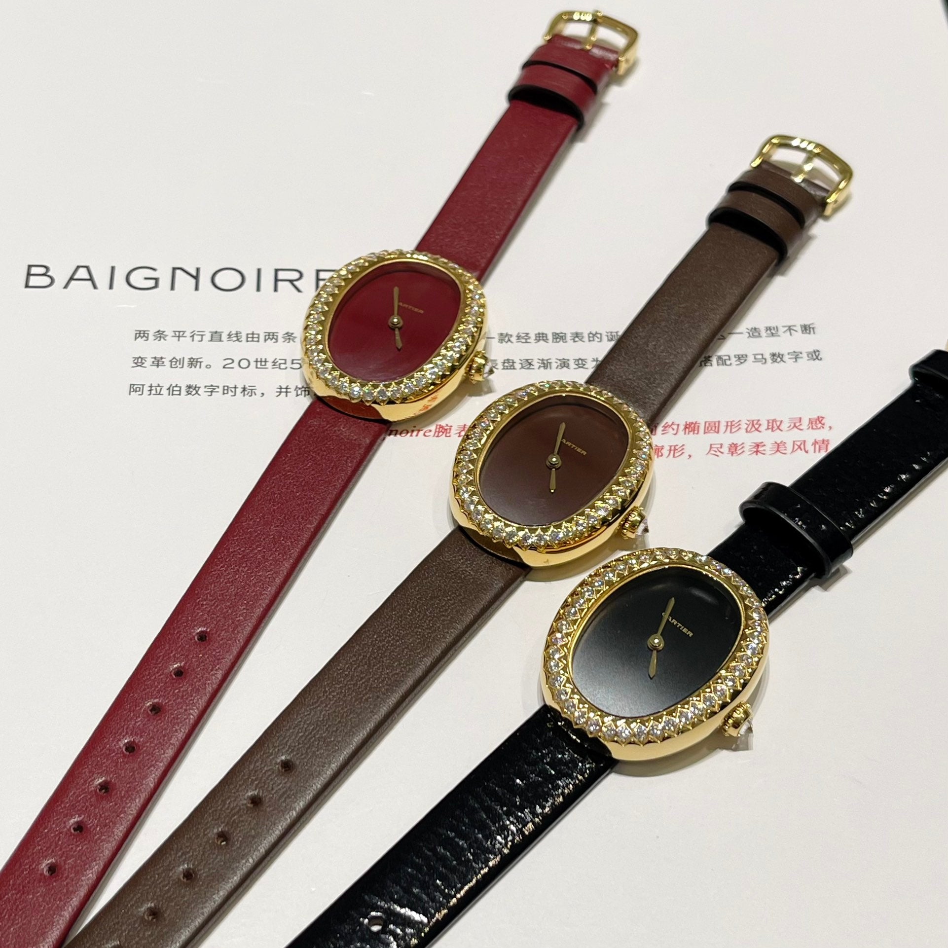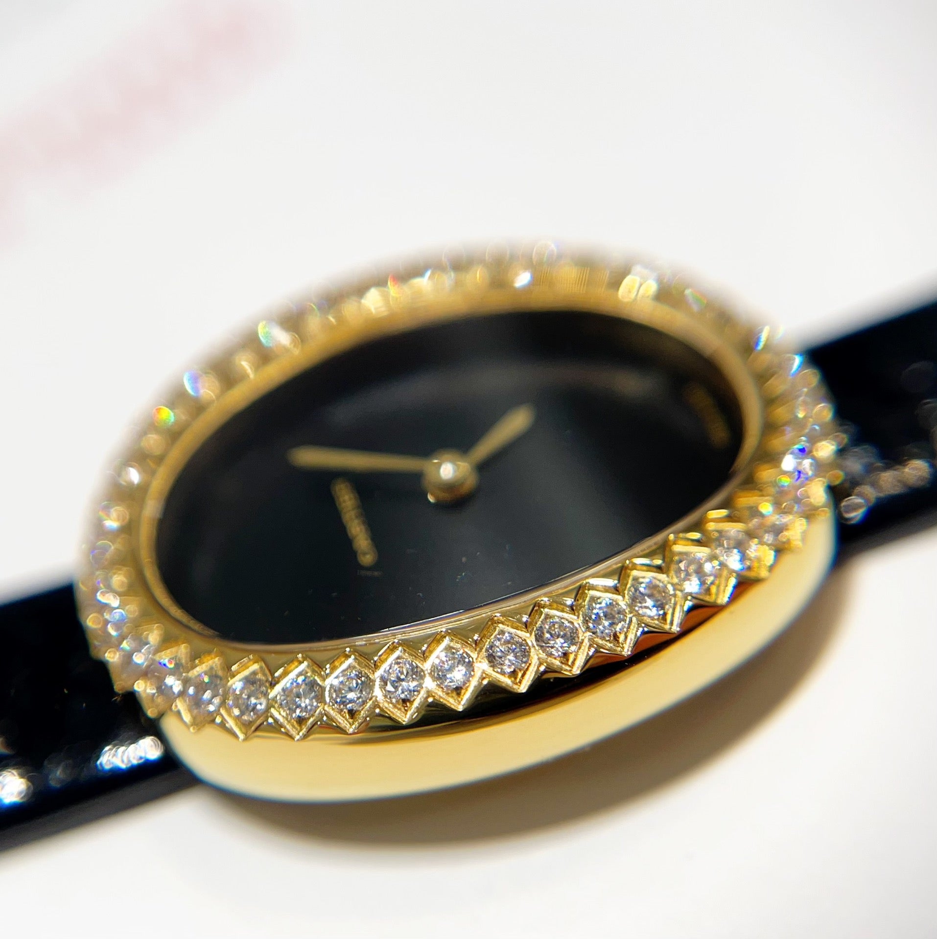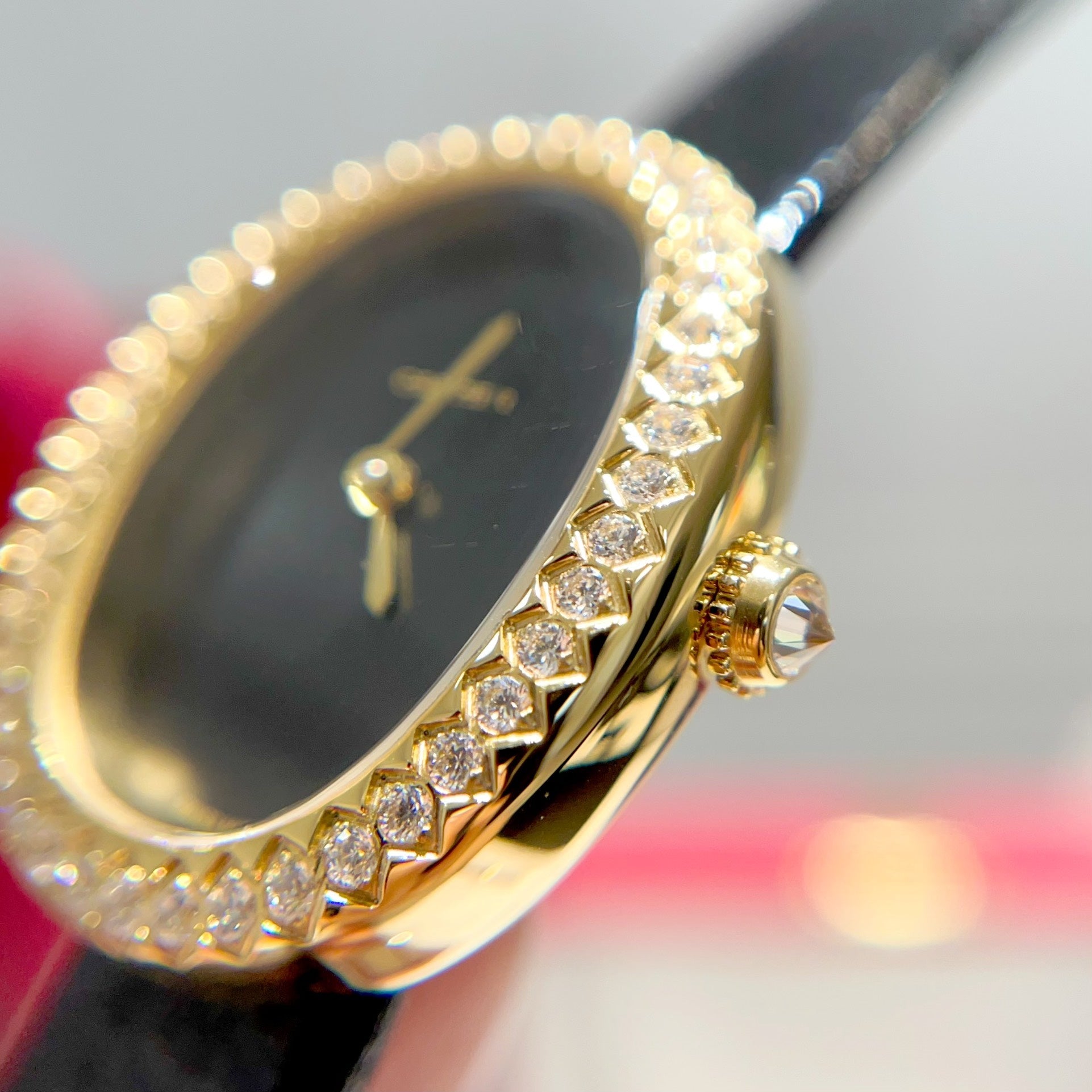 BAIGNOIRE WATCH GOLD CASE AND LEATHER STRAP WITH CRYSTALS