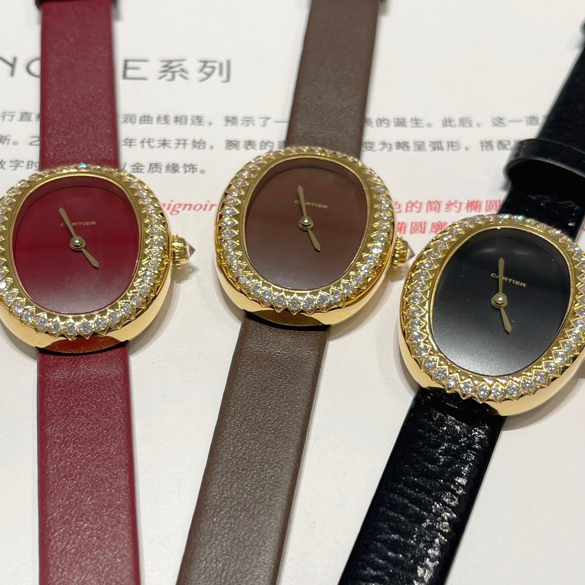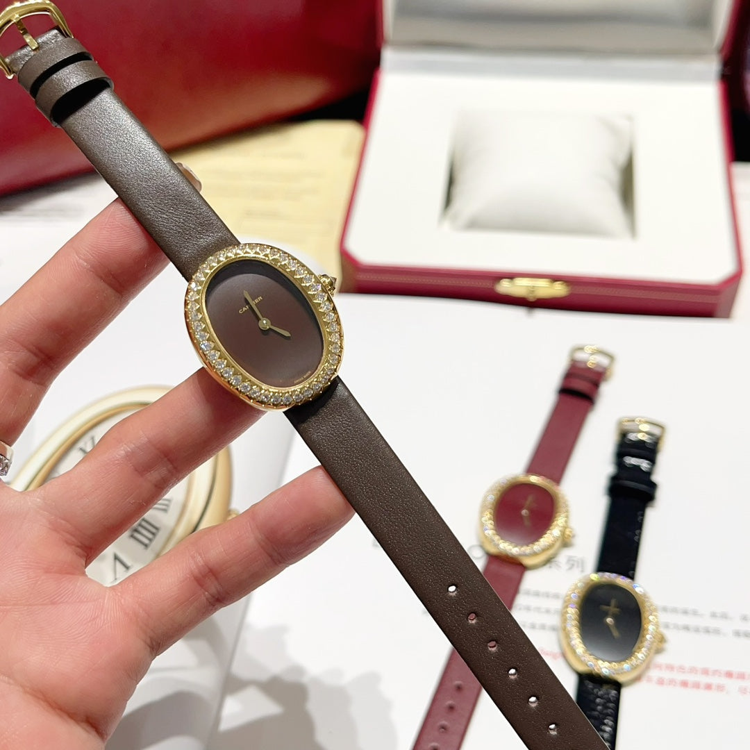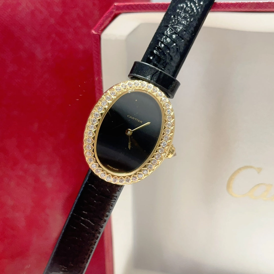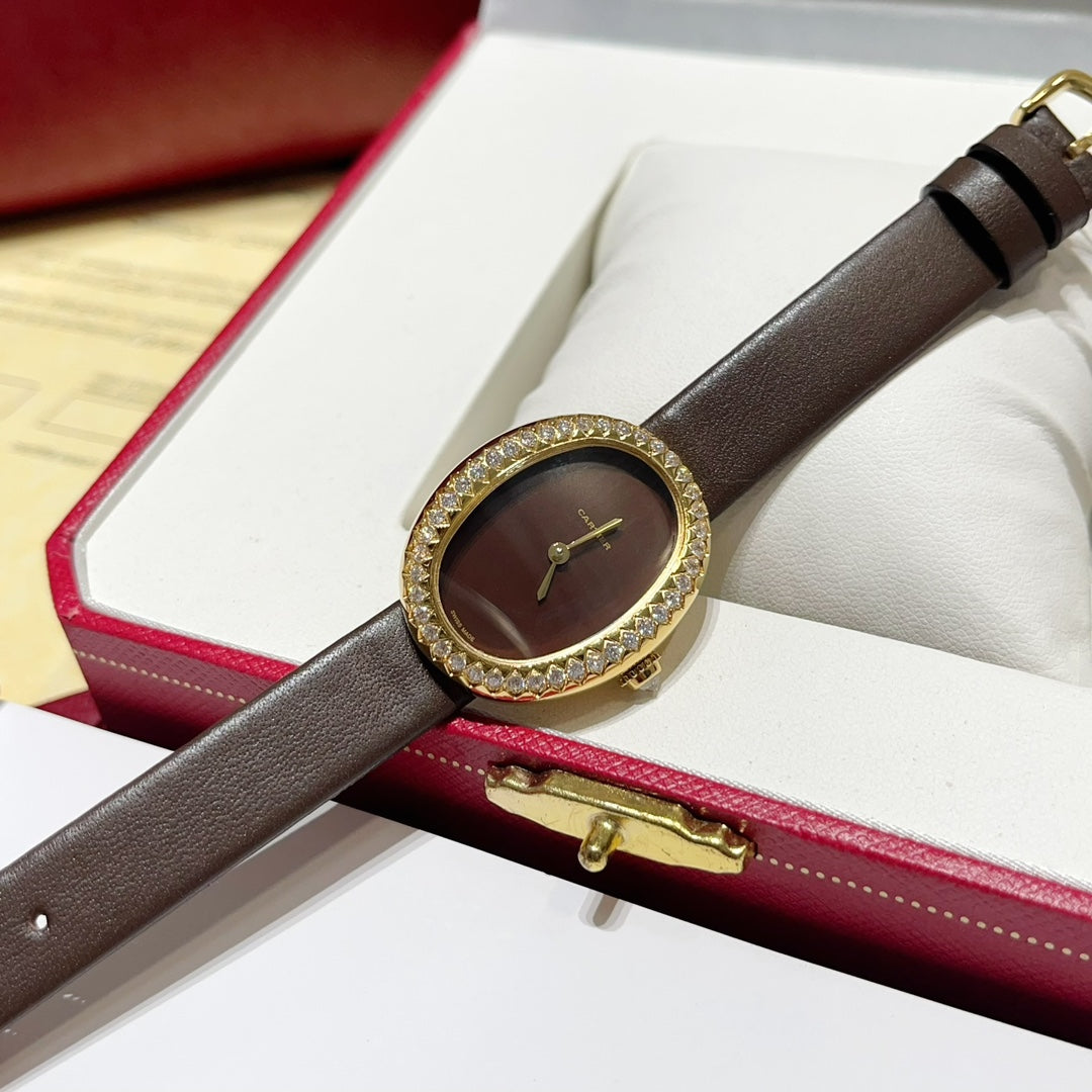 BAIGNOIRE WATCH GOLD CASE AND LEATHER STRAP WITH CRYSTALS