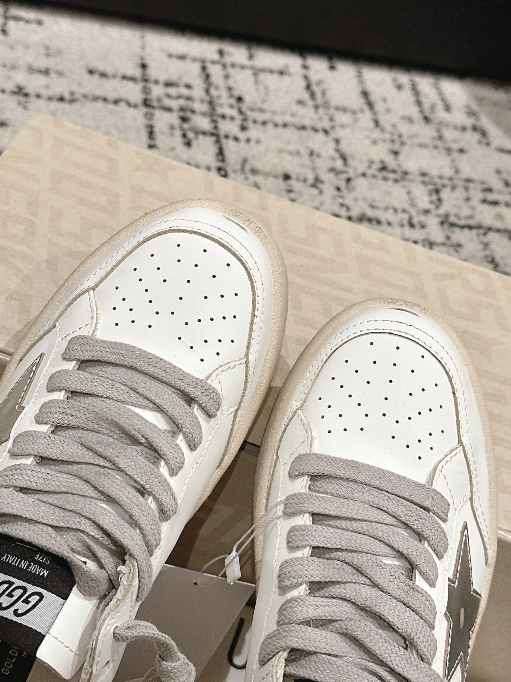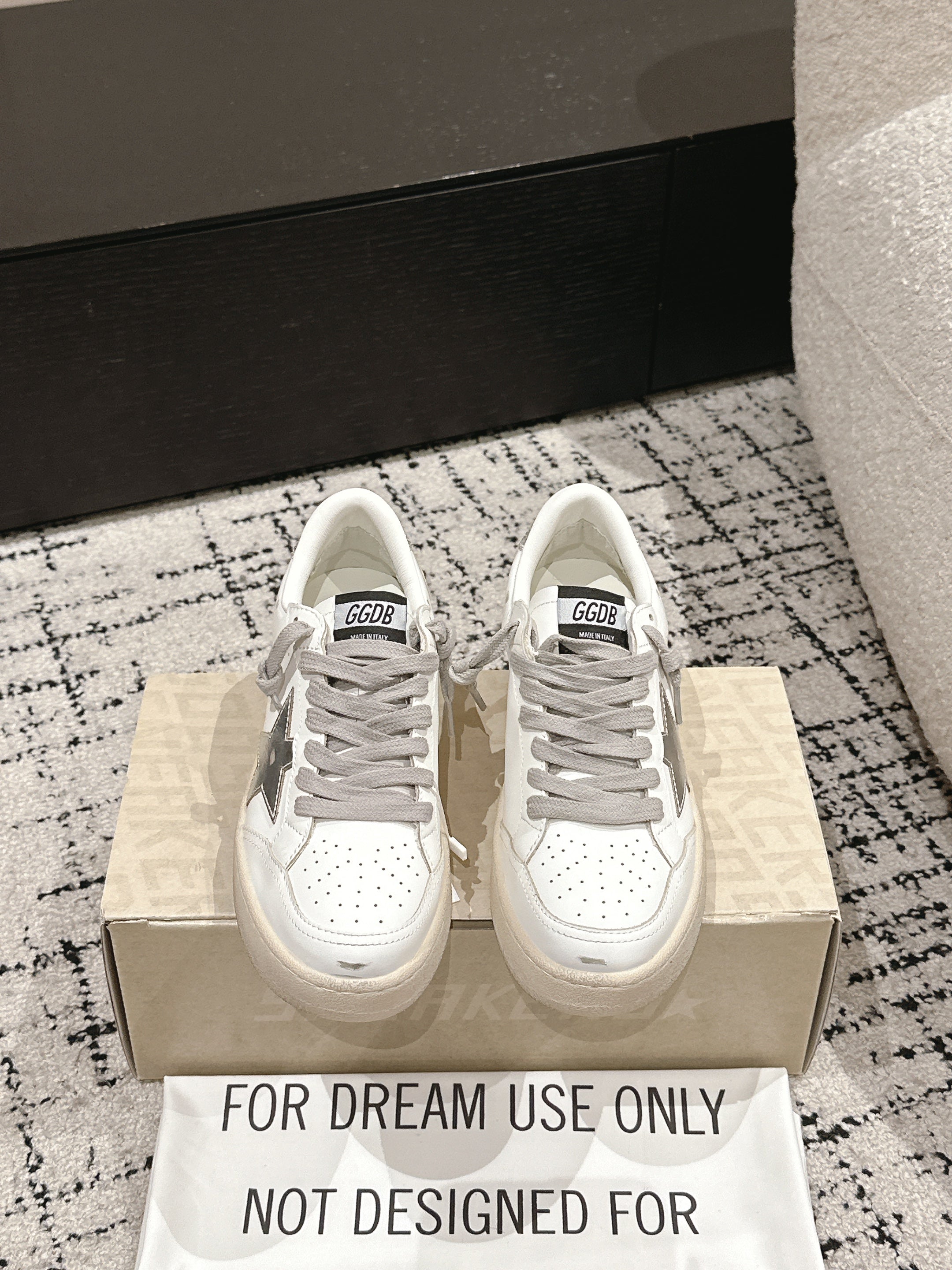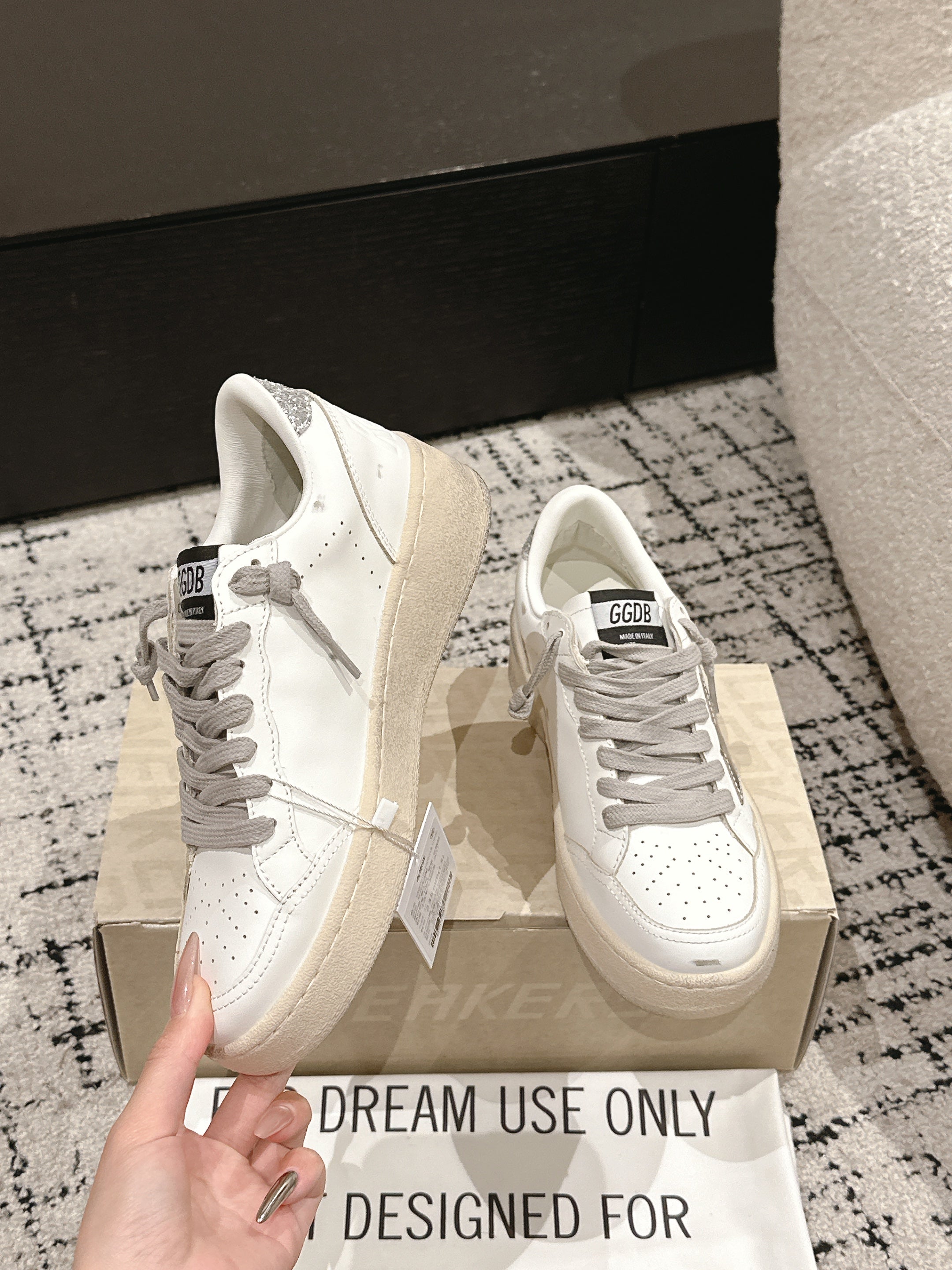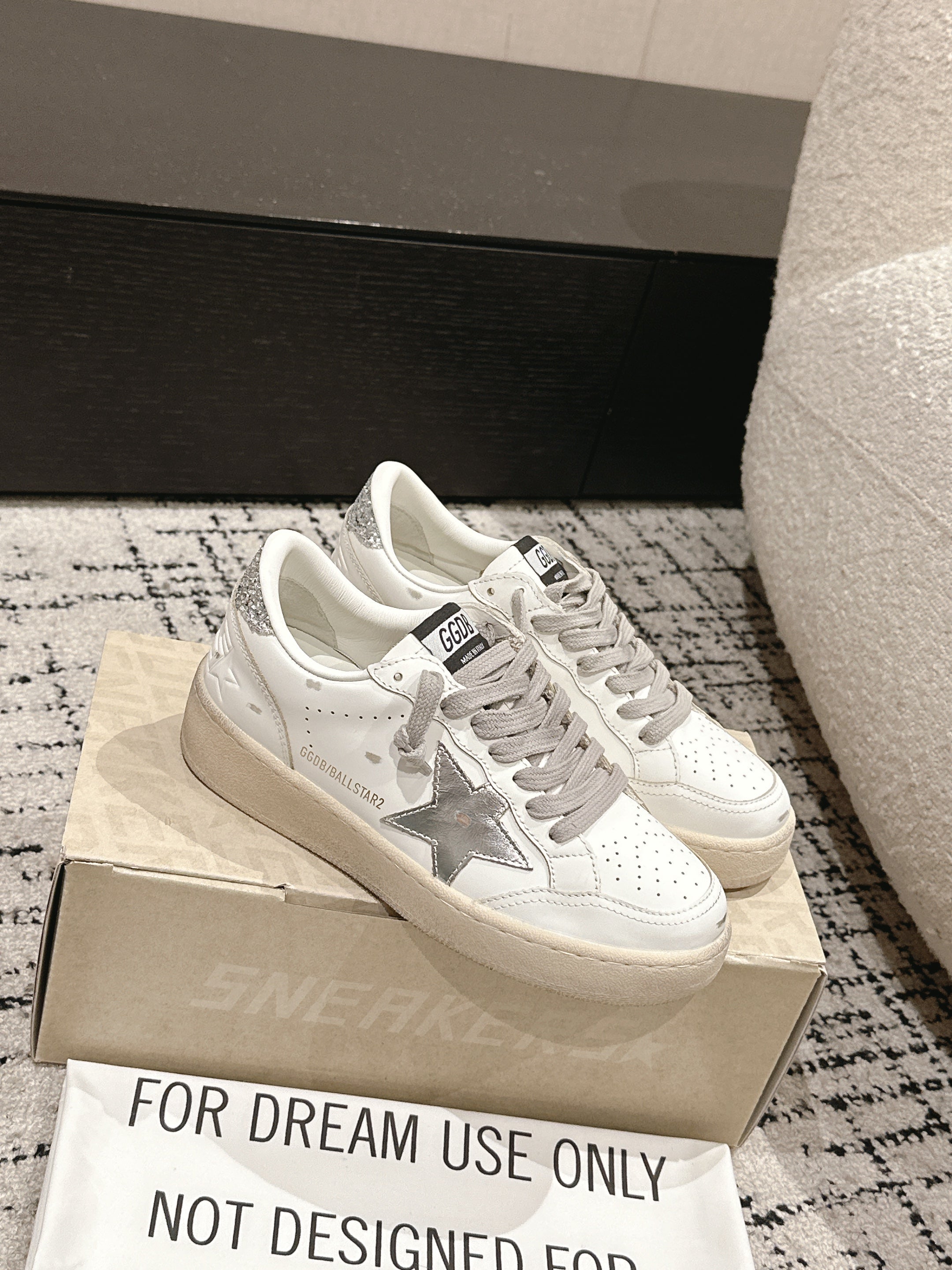 BALL STAR 2 SNEAKERS IN WHITE CALFSKIN SILVER STAR AND GLITTER HEEL TAB