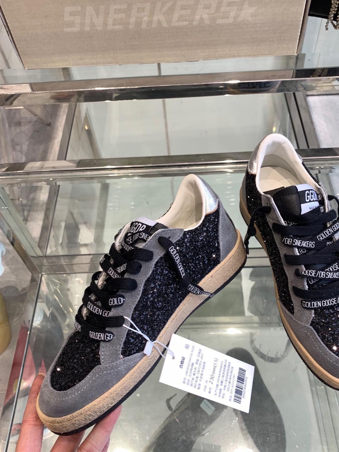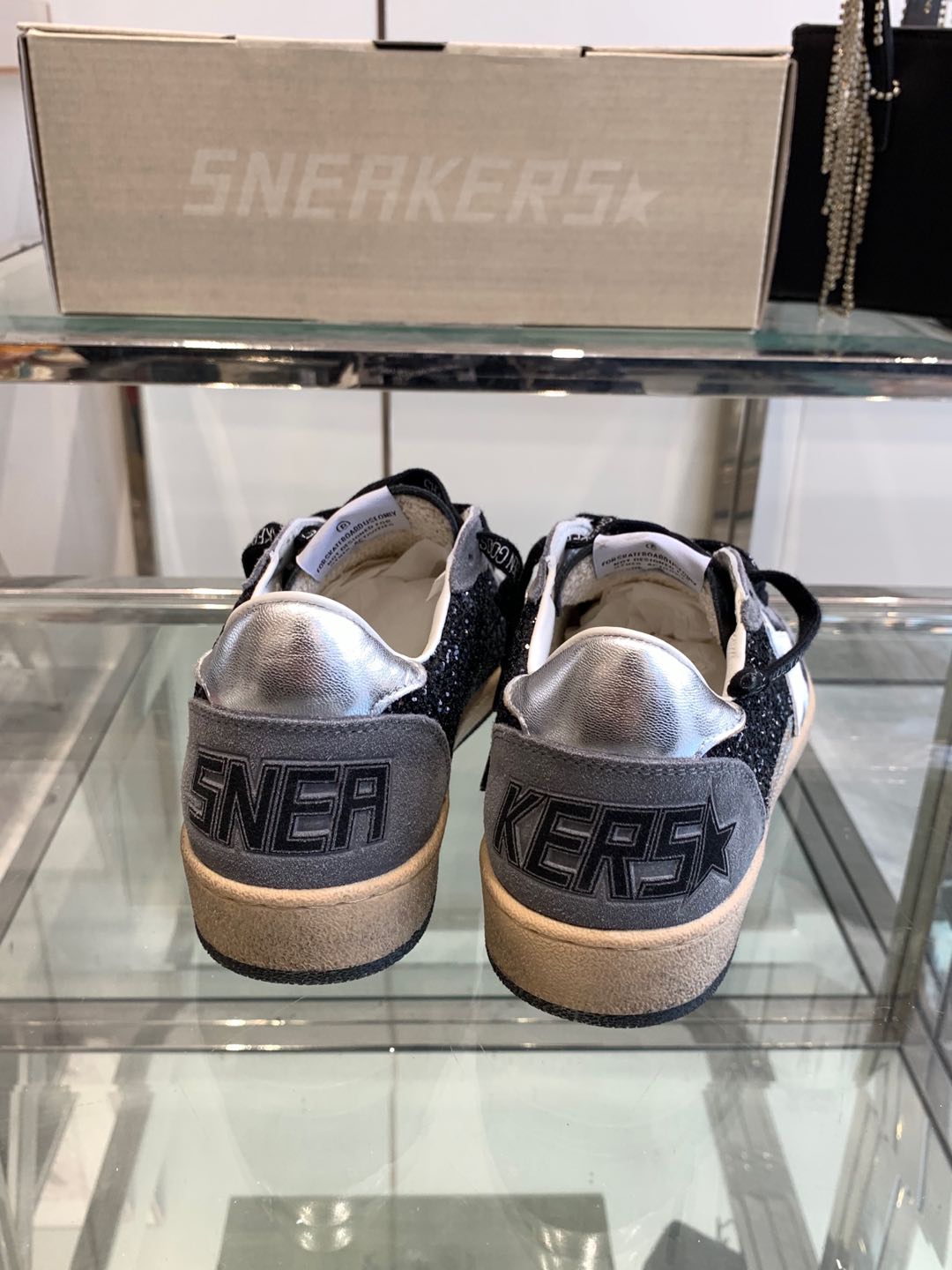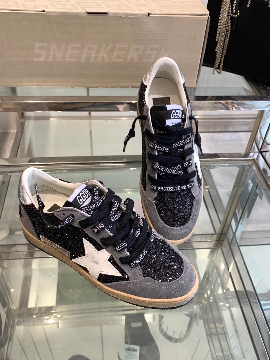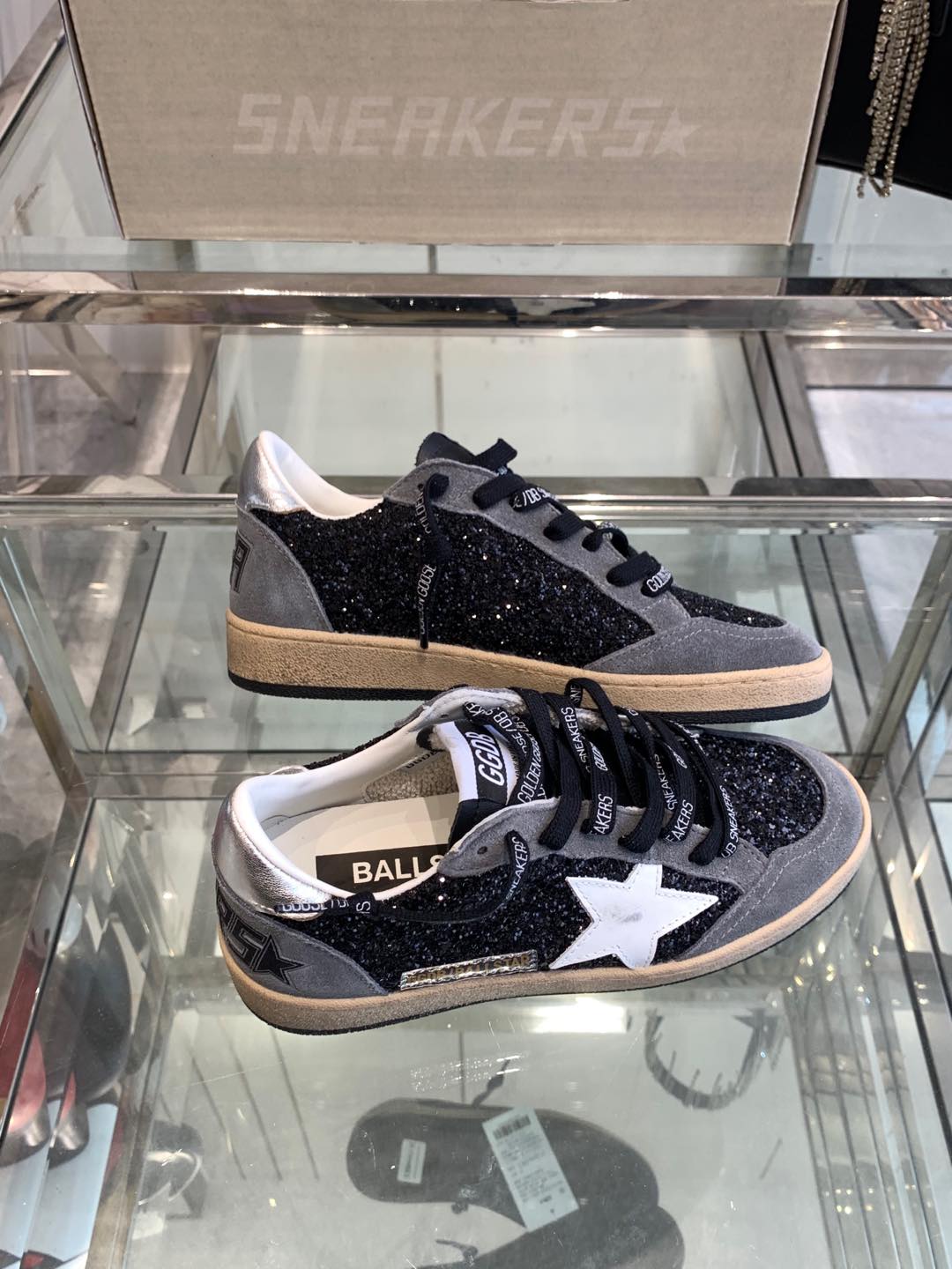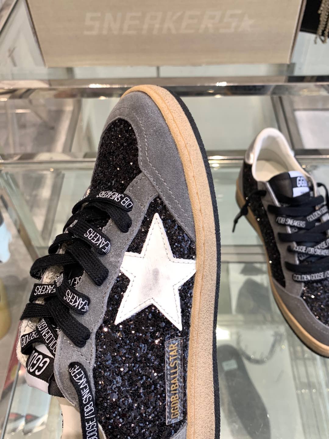 BALL STAR SNEAKERS WITH WHITE STAR IN BLACK GLITTER AND GRAY SUEDE